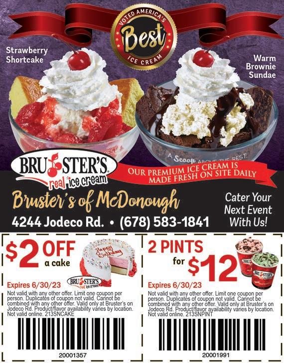 To view previous magazines, go to www.TheShopper.net Food & Dining 9 Dining Room OPEN Everyday 12 Noon-8:00pm Drive Thru OPEN Everyday 10:30am-9:00pm With this coupon. Cannot be combined with other offers or discounts. One coupon per customer per visit. Offer only good at 520 Hwy 81 E in McDonough, GA. Expires 6/30/23 $1 OFF ANY SIZE BLIZZARD With this coupon. Cannot be combined with other offers or discounts. One coupon per customer per visit. Offer only good at 520 Hwy 81 E in McDonough, GA. Expires 6/30/23 $2 OFF ANY COMBO #1-#10 With this coupon. Cannot be combined with other offers or discounts. One coupon per customer per visit. Offer only good at 520 Hwy 81 E in McDonough, GA. Expires 6/30/23 $2 OFF 6 PC CHICKEN STRIP BASKET WITH DRINK PURCHASE With this coupon. Cannot be combined with other offers or discounts. One coupon per customer per visit. Offer only good at 520 Hwy 81 E in McDonough, GA. Expires 6/30/23 $1 OFF ANY TREAT PURCHASE With this coupon. Cannot be combined with other offers or discounts. One coupon per customer per visit. Offer only good at 520 Hwy 81 E in McDonough, GA. Expires 6/30/23 $1 OFF ANY SIZE SHAKE With this coupon. Cannot be combined with other offers or discounts. One coupon per customer per visit. Offer only good at 520 Hwy 81 E in McDonough, GA. Expires 6/30/23 $2 OFF FISH SANDWHICH COMBO 520 HIGHWAY 81 E MCDONOUGH, GA Must be used on your birthday. Cannot be combined with any other offer. One coupon per table. No separate checks. No sharing. $15 OFF BIRTHDAY DINNER ENTREE WITH THE PURCHASE OF BEVERAGES. Up To $15.00 Value. Must have valid ID. 15% Gratuity will be added to check prior to discounts. Our Birthday Gift to You!