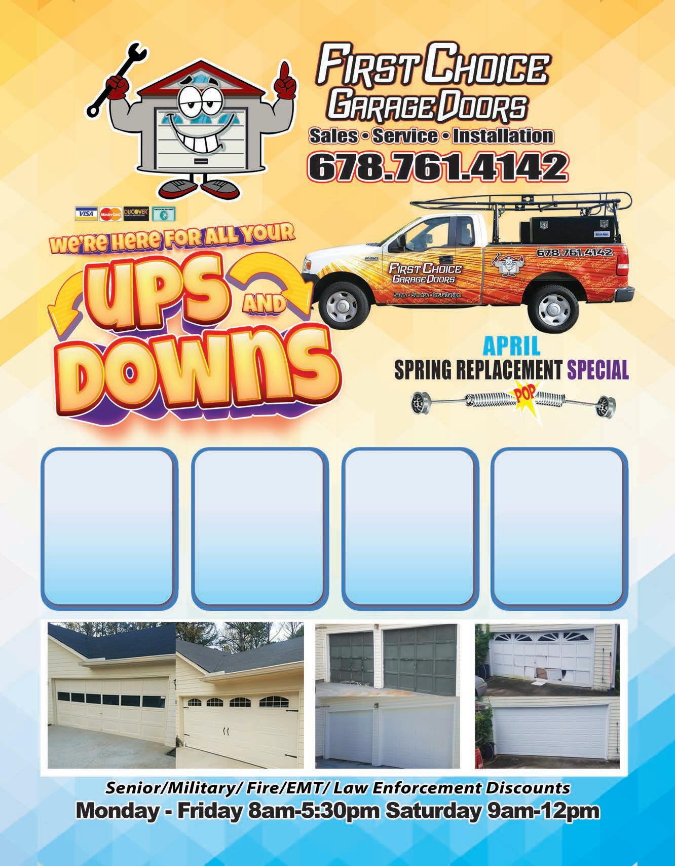 Before After Before After Before After Cannot be combined with any other offers. Expires 5/31/24. $50.00 With Any Repair NYLON ROLLER UPGRADE Cannot be combined with any other offers. Expires 5/31/24. $50.00 OFF ANY LIFTMASTER MOTOR Cannot be combined with any other offers. Expires 5/31/24. $200.00 OFF Any Double Wide Door Replacement Cannot be combined with any other offers. Expires 5/31/24. $50 OFF SPRING REPLACEMENT Cannot be combined with any other offers. Expires 5/31/24.