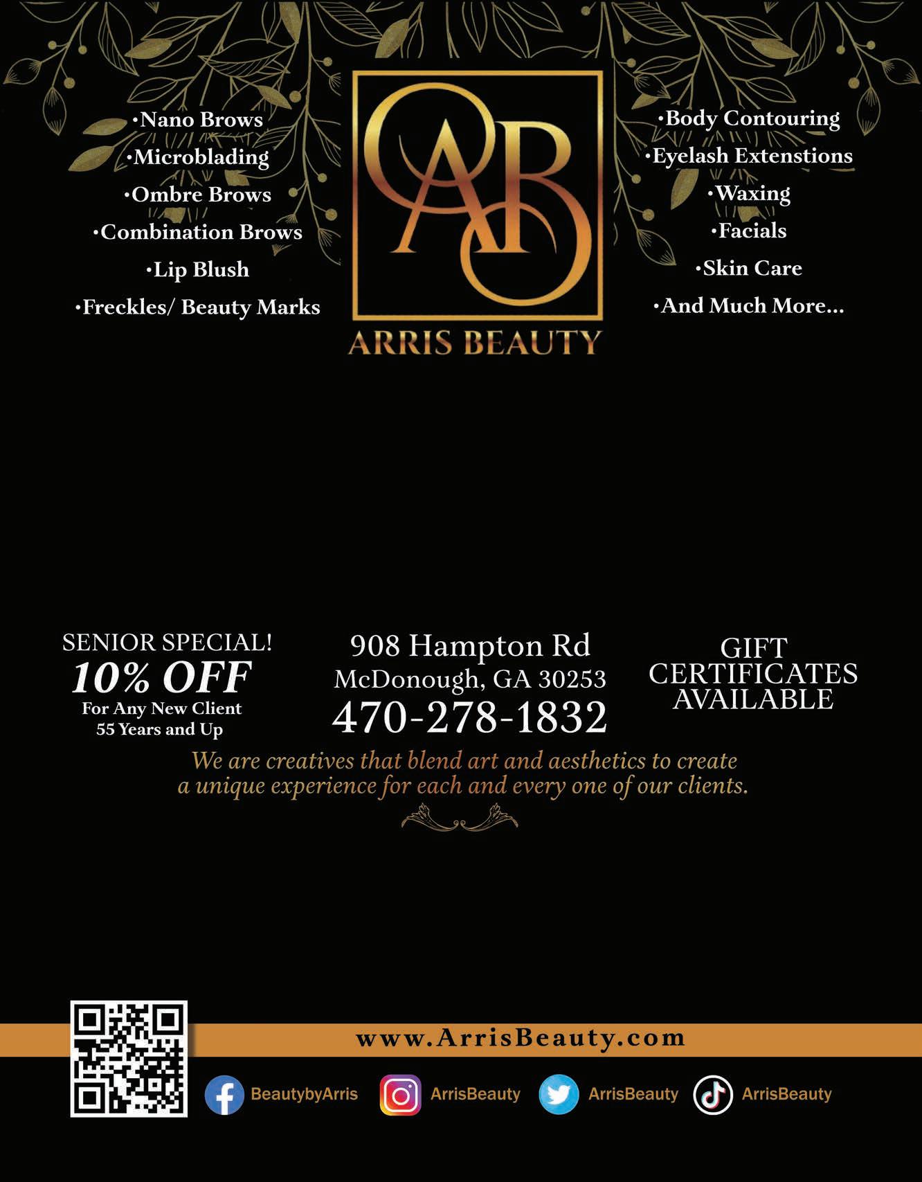 Extra Magazines can be picked up at the McDonough Welcome Center Beauty & Health 21 Office Hours: Monday - Thursday: 8:30 AM - 5:00 PM Friday: 8:30 AM - 1:00 PM Saturday & Sunday: Closed Come Join Our DENTAL FAMILY Services Provided: New Patients will receive a Philips One Sonicare Power Brush FREE with each purchase of exam,xrays,and cleaning. Limit is 2 per household. (No Cash Value) Please bring coupon. Appointment must be made by November 30, 2023 to receive gift. • Cosmetic Bonding and other Restoration Procedures • Dental Implants • Root Canals • Extractions • Sealants • Gum Disease Therapy • Teeth Whitening • Removable Dentures • Crowns and Bridges • Teeth Cleanings 70 Westridge Parkway, Suite 200 McDonough, GA 30253 www.premiercosmetic-dental.com 81 Locust Grove 75 75 155 42 81 Sunnyside 20 20 Hampton 70 Westridge Pkwy. Suite 200 McDonough