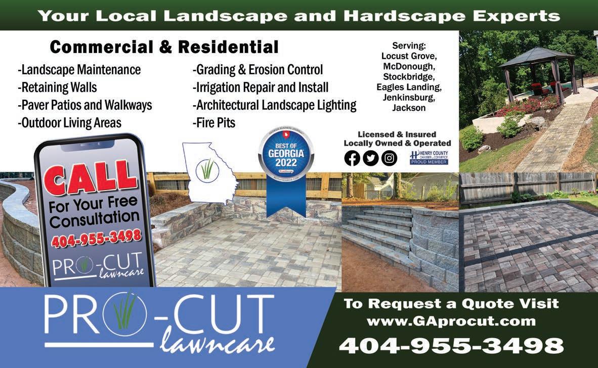 Extra Magazines can be picked up at the McDonough Welcome Center Lawn & Yard 69 Cannot be combined. Expires 10/31/23 @georgiasuperiorlawns www.georgiasuperiorlawns.com MILITARY AND PUBLIC SAFETY DISCOUNTS AVAILABLE 678.779.8153 Free Estimates Includes: - Custom design and installation of holiday displays for your home or business - Premium, commercial grade lights, wreaths, garland and more - Maintenance of your display all season long - Take down and storage until the following year Save money when you book by October 1st! Save money you book by October 1st! Hart Land Management Tree, brush and undergrowth clearing and mulching. Skid-steer services. Rob Hart 404-809-7450 HartLandMgmt@gmail.com facebook.com/hartlandmgmt BEFORE AFTER WE OFFER STORM DEBRIS CLEANUP! Hartlandmgmt.com