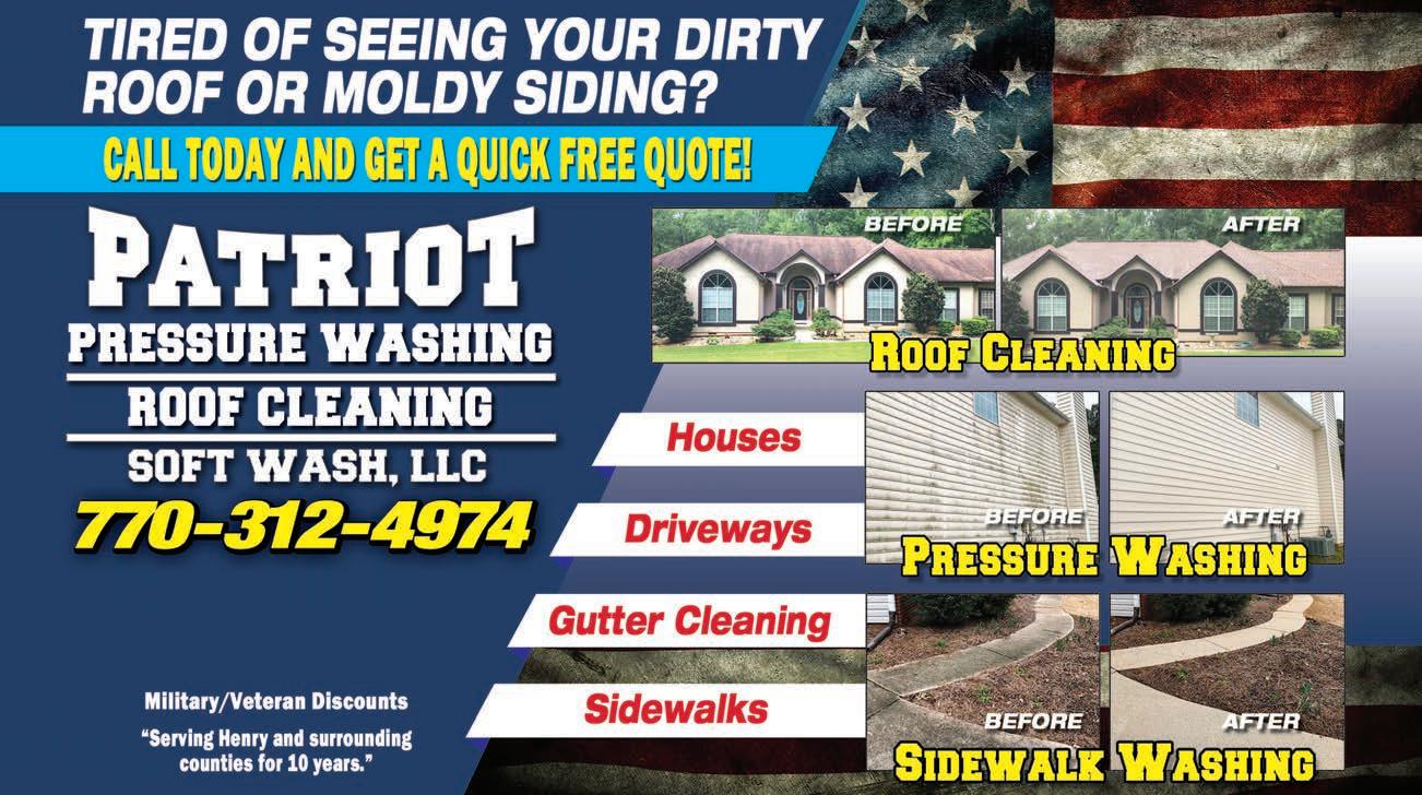 Extra Magazines can be picked up at the McDonough Welcome Center Home Ser vices 37 SUPERIOR EQUIPMENT 10 Gal. PM Soft Wash + 4500PSI Hard = ZERO Competition SOFTWASH & EXTERIOR CLEANING SPECIALISTS BEFORE • HOUSE WASH • ROOF WASH • POWER WASHED DRIVEWAYS • DECKS / FENCES • FENCE STAINING/ PAINTING A DIVISION OF BUILD GROUP 10% OFF ANY SERVICE OVER $300 Must present Coupon at the time of purchase. Some restrictions apply. Cannot be combined with other discounted offers. Exp 10/31/23. AFTER RESIDENTIAL • COMMERCIAL $2M GCL INSURANCE POLICY 470-808-7919 titanbuildgroup@gmail.com 470-808-7919 titanbuildgroup@gmail.com SEPTEMBER SPECIAL Licensed • Insured • Locally Owned & Operated DEBIT jeffwhisnantplumbing@gmail.com • Water Heater Replacement • Sewer & Drain Service • Water Line Replacement • Handicap Fixtures Installed • All Types Repairs & New Installations 770.616.5523 Senior & Military Discounts Available Installations, Repairs, Routine and Preventative Maintenance of All Major Brands! 770-914-1031 Over 16 years of service to people throughout the Southern Metro Area Call Today For A Free Estimate! Locally Owned and Operated TUNE-UP SPECIAL FIRST UNIT $69.00 EACH ADD’L UNIT ONLY $39.00 Cannot be combined with other offers. Coupon Expires 10/31/23. Cannot be combined with other offers. Coupon Expires 10/31/23. $150 OFF FURNACE REPLACEMENT SYSTEM REPLACEMENT Financing Available