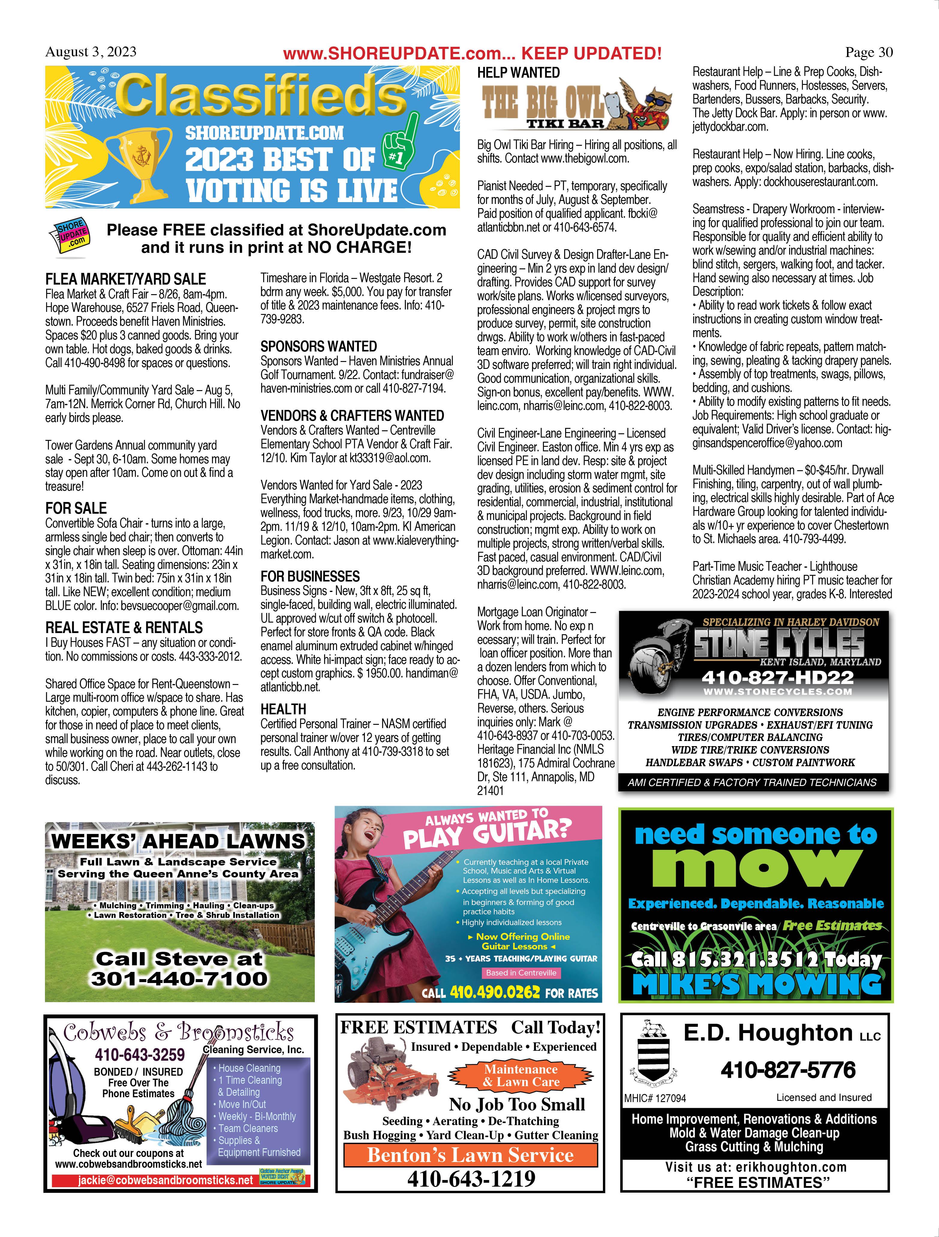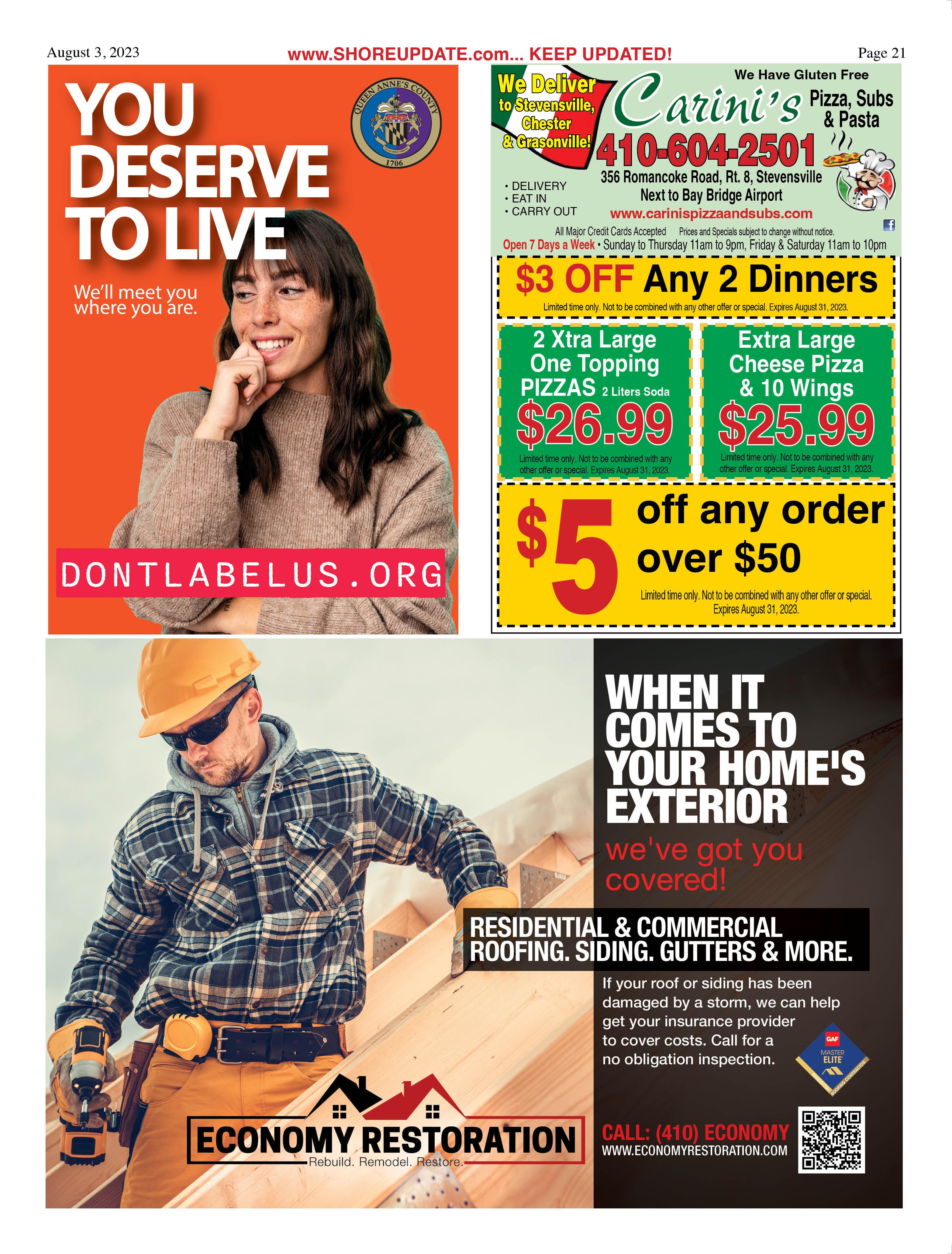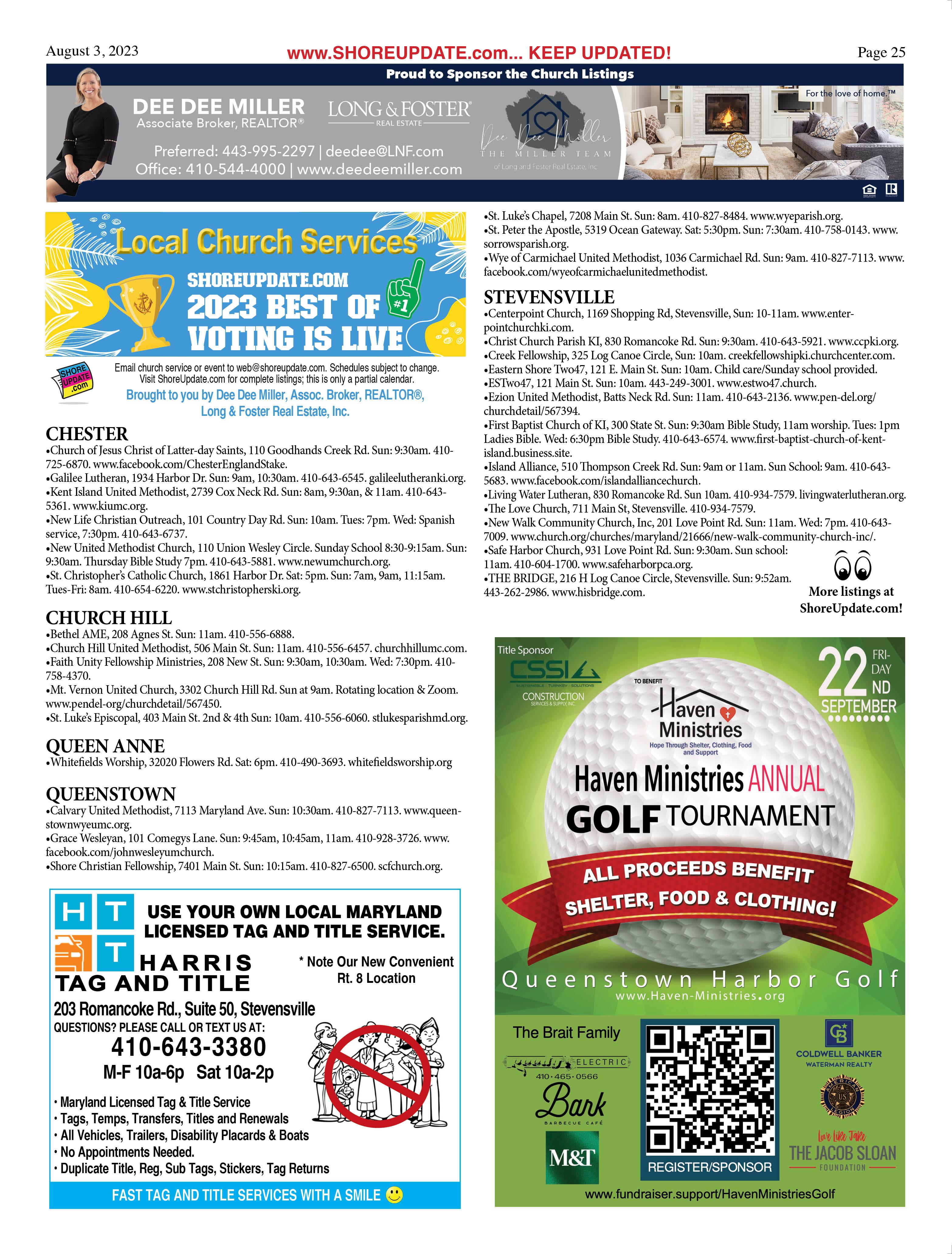 Aug 18 – FRIED CHICKEN DINNER. 5-7pm. American Legion Post 296, Queenstown. 410827-8182.