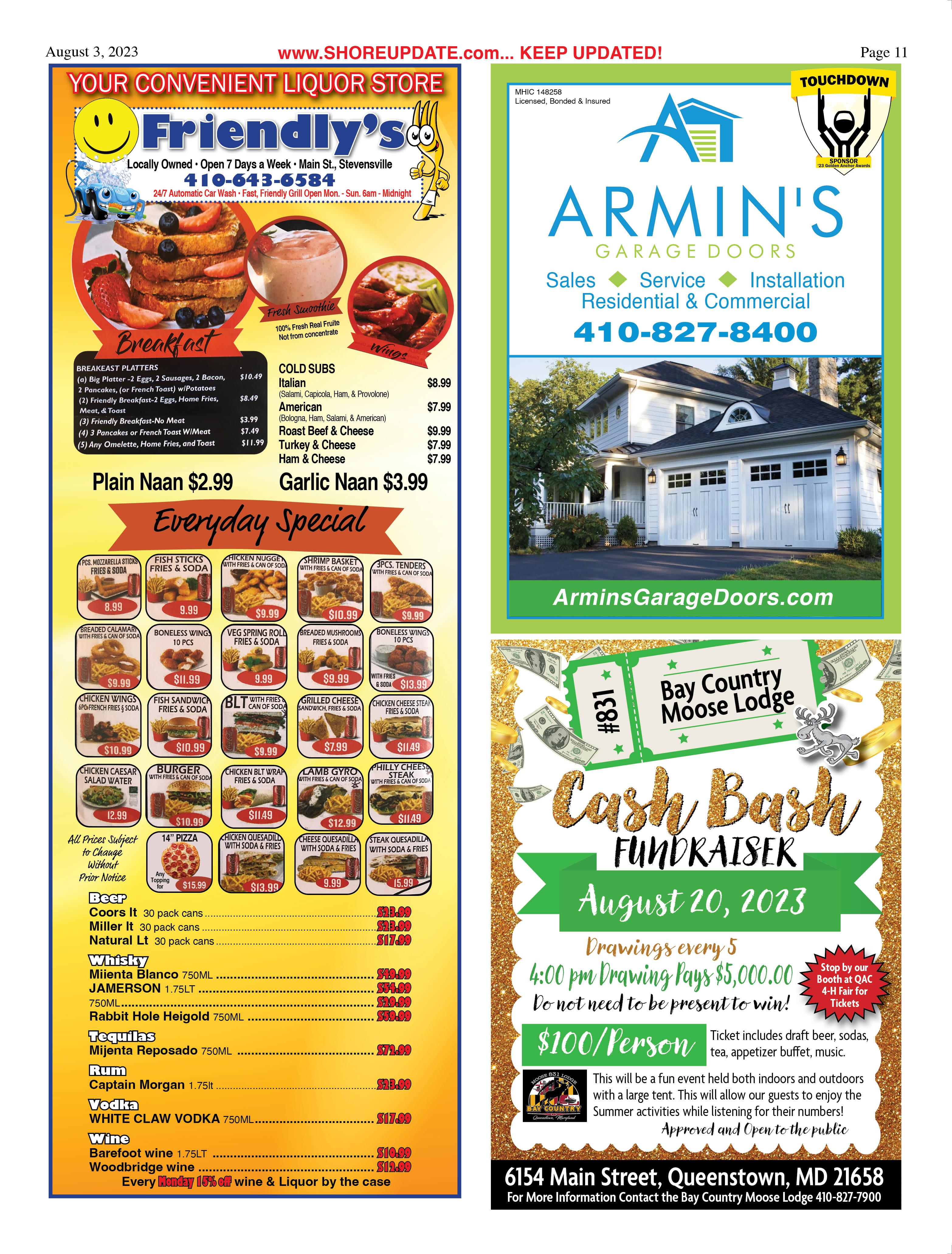 Aug 11 – 1/2 RACK RIB DINNER. 5-7pm. American Legion Post 296, Queenstown. 410827-8182.