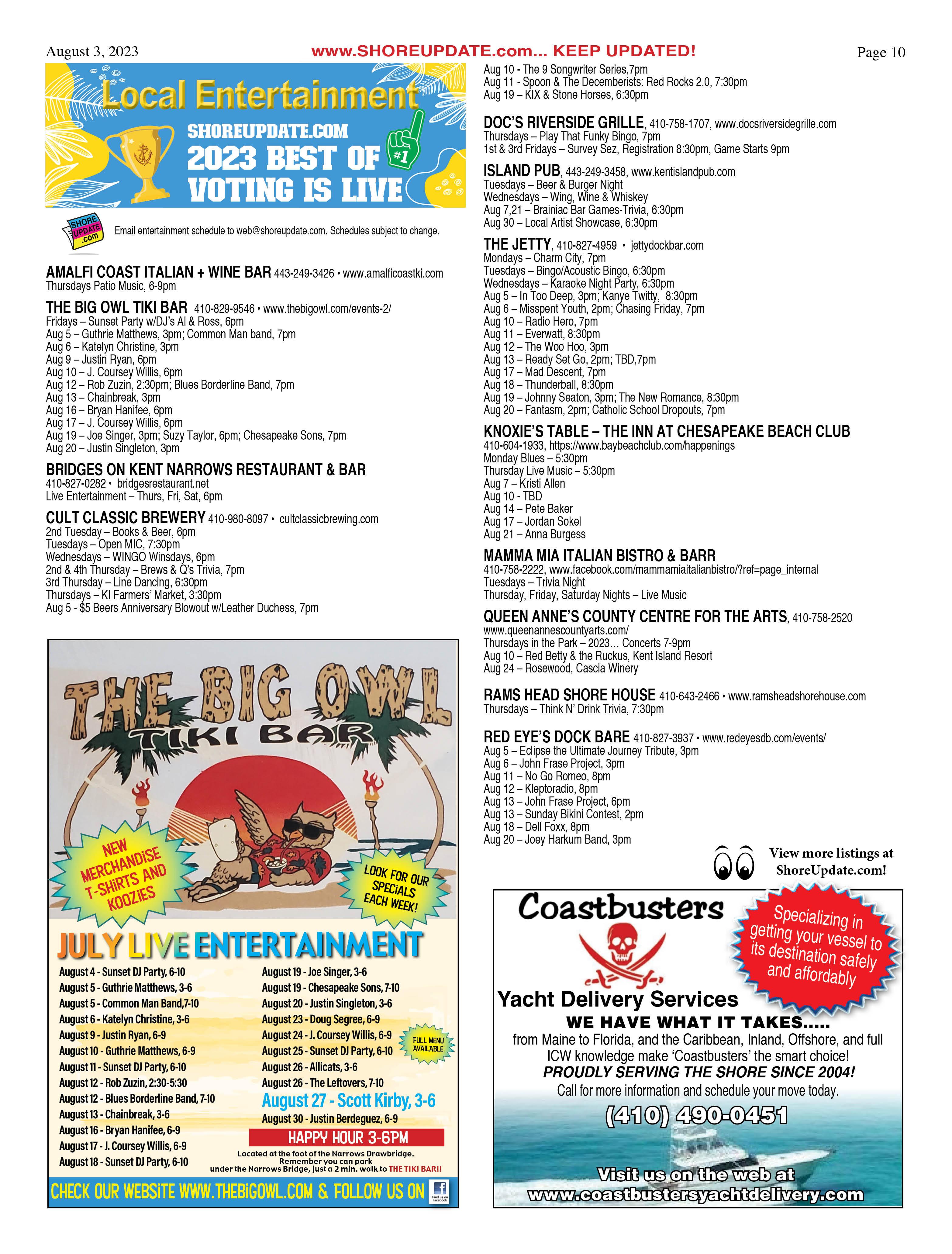 Thursdays – TACO DINNER 5-7pm. American Legion Post 296, Queenstown. 410-827-8182.