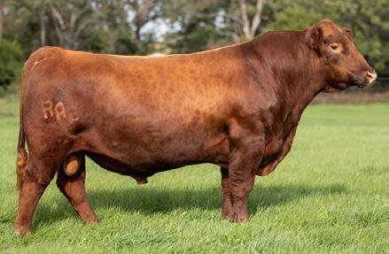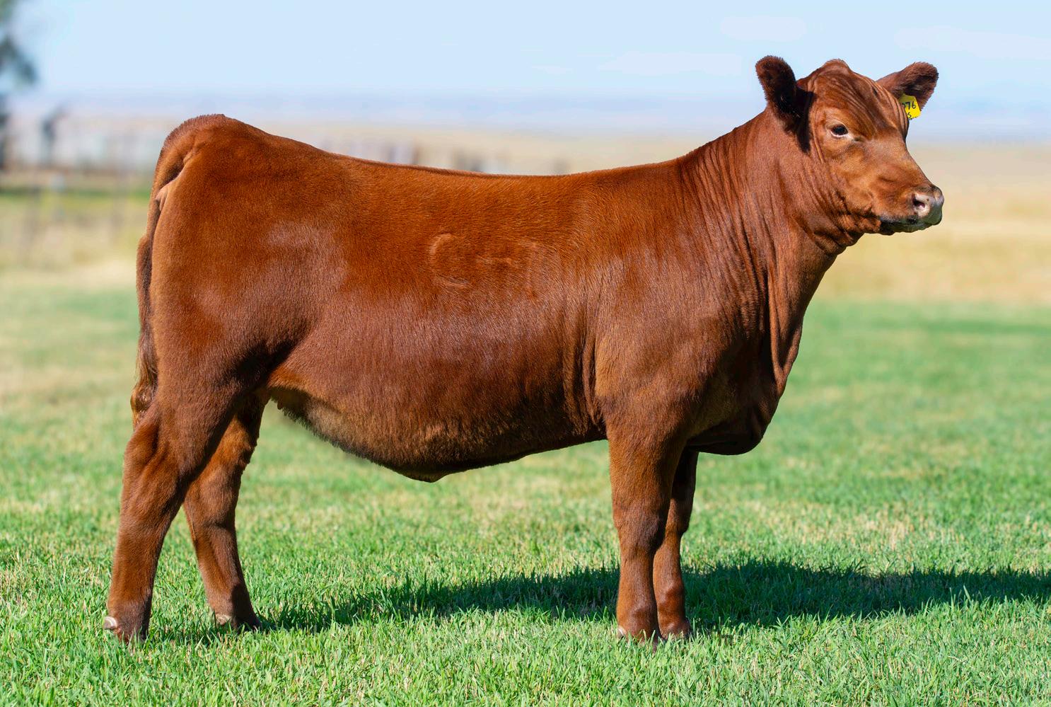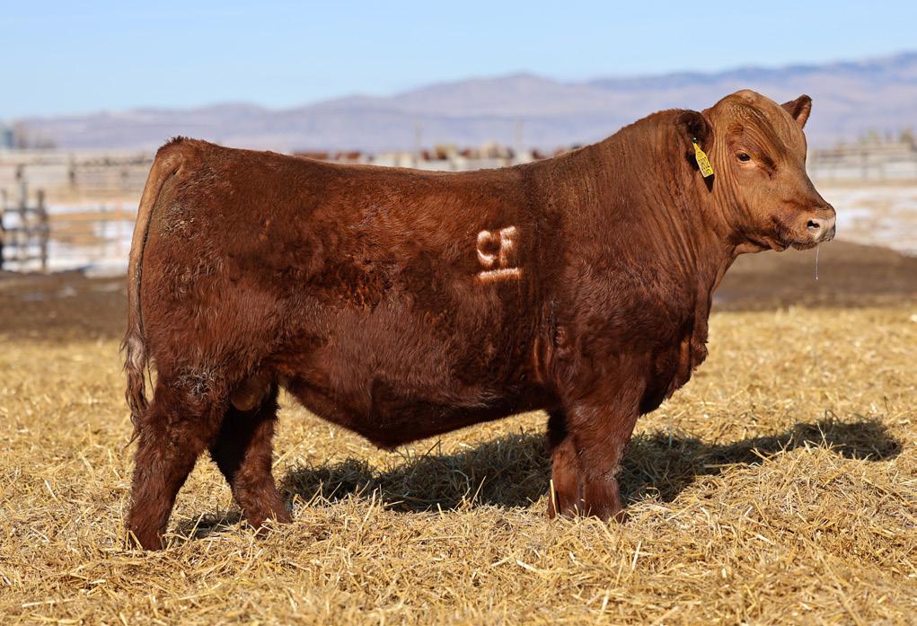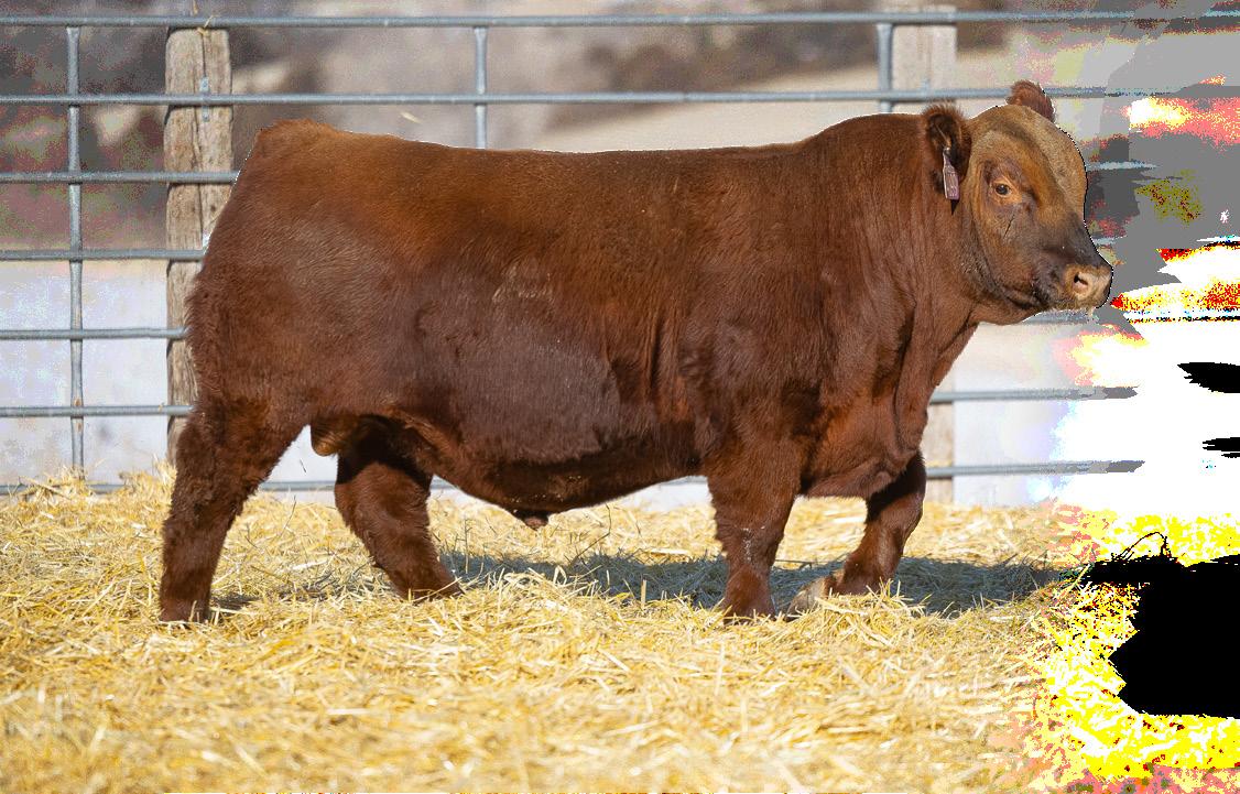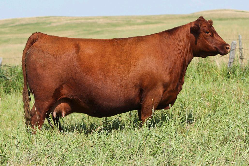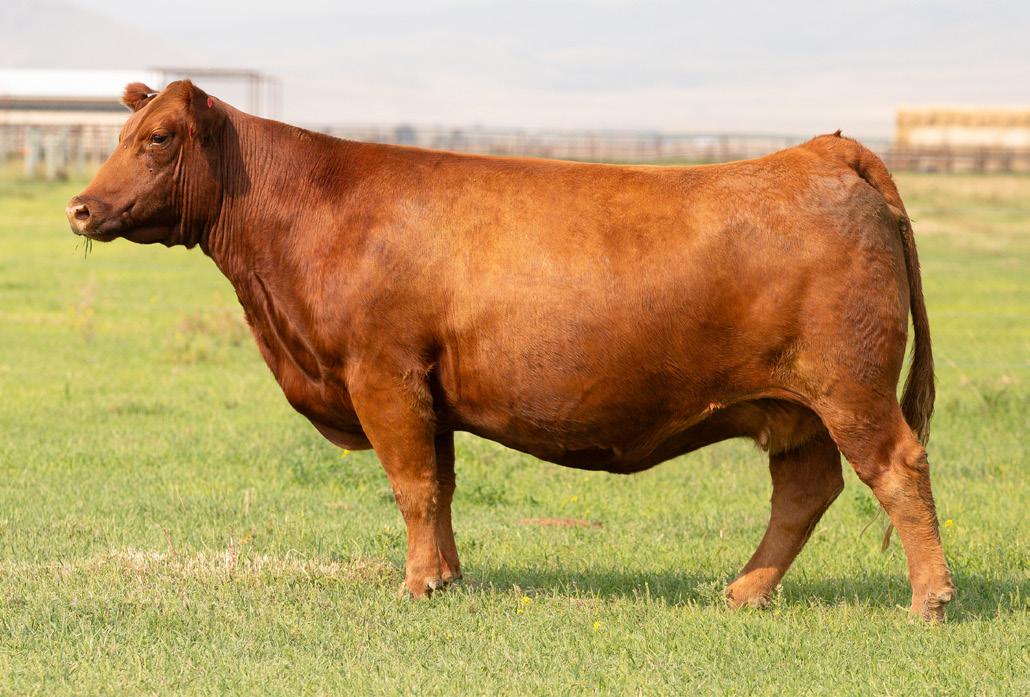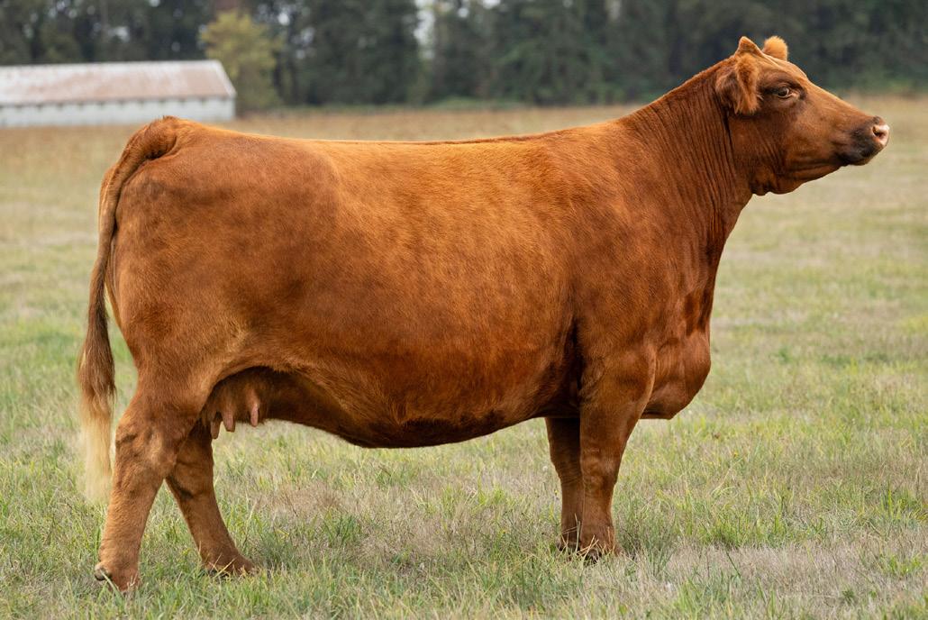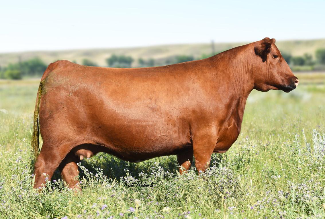 We are excited to offer the natural calf off from Damar Bonnie D249 and NIO Steel Panther - an up-andcoming sire from Niobrara Red Angus! This April heifer calf is as flashy as they come. Super muscular and powerful, we think she will be a great addition to anyone’s show string and later in the donor pen. She is still green but coming together every day with a great future ahead of her. This heifer would be a sister to many past champions across the United States.
