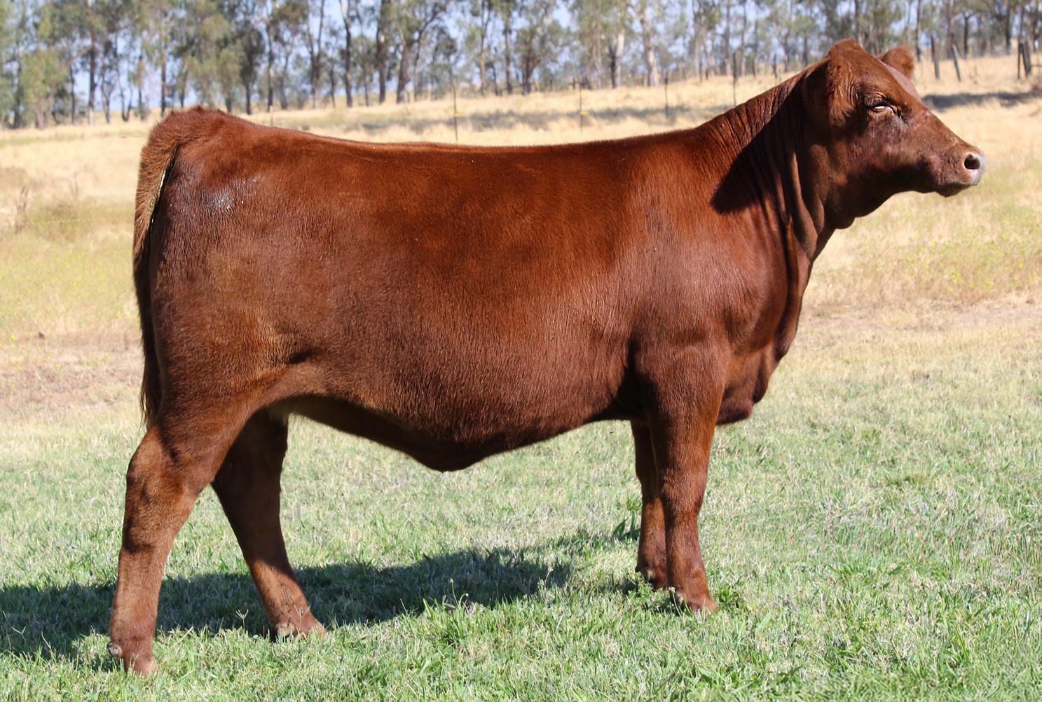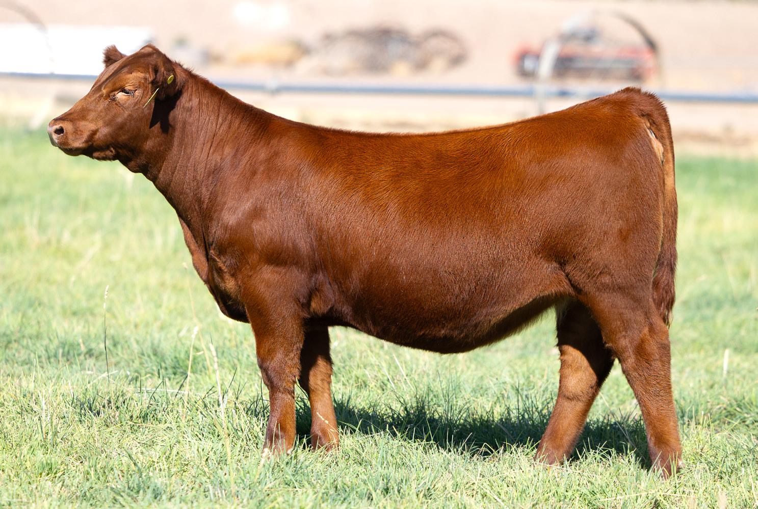 WB Lady in Red 9144 is a direct daughter of Mulberry. Mulberry semen is no longer available; he is siring outstanding progeny that are low maintenance, easy fleshing cattle. They have moderate birth weights and his daughters have perfect udders. Our Lady in Red Cow Family has been very successful for our Red Angus program. The Grand Dam, Lady in Red 114Y, claimed Reserve Champion Female of the 2013 Red Western Classic show as a first calf heifer.