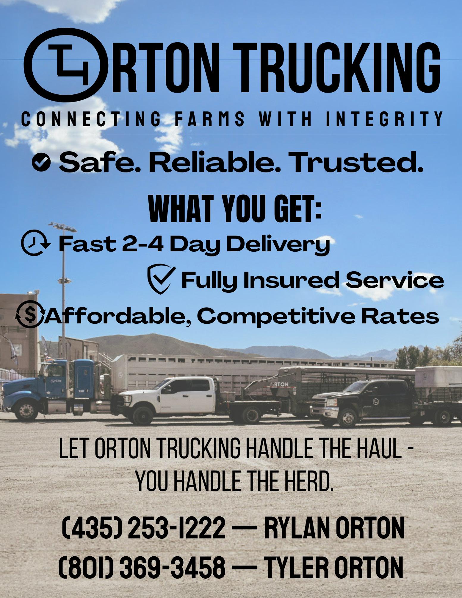 Orton Trucking has been secured to haul cattle directly from the auction in Reno, NV, back into the Midwest this year. Once the auction has concluded, those cattle purchased from our friends in the Eastern & Central United States will have immediate transportation back into their area.