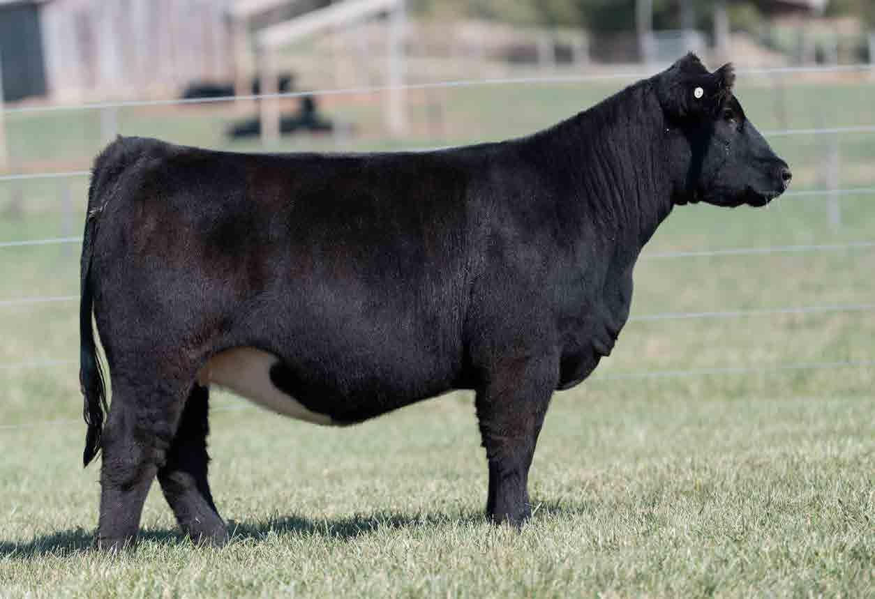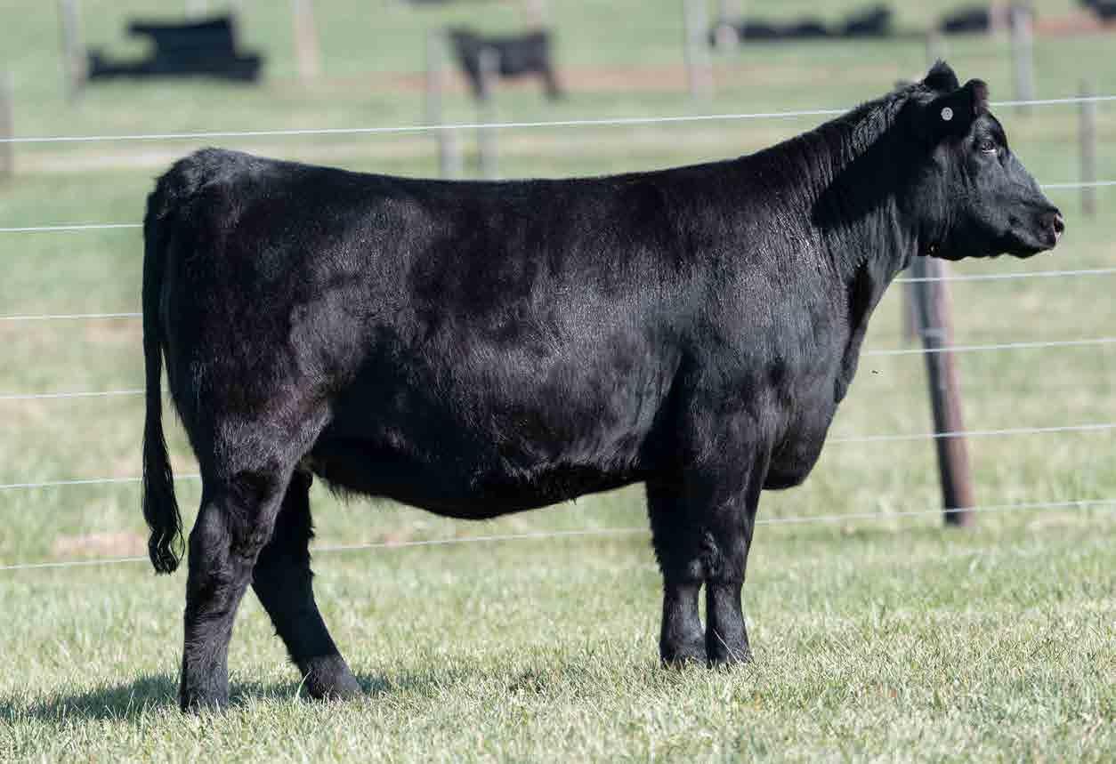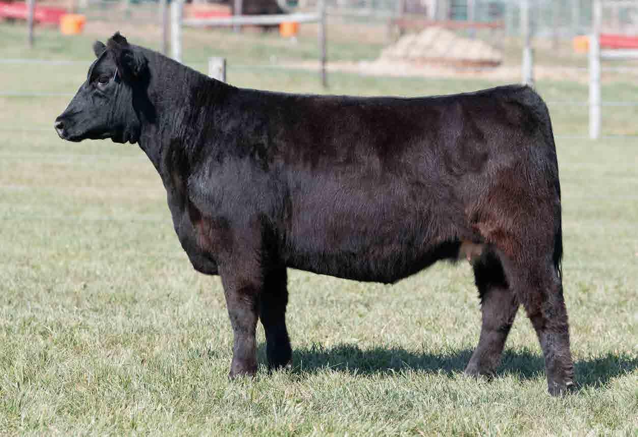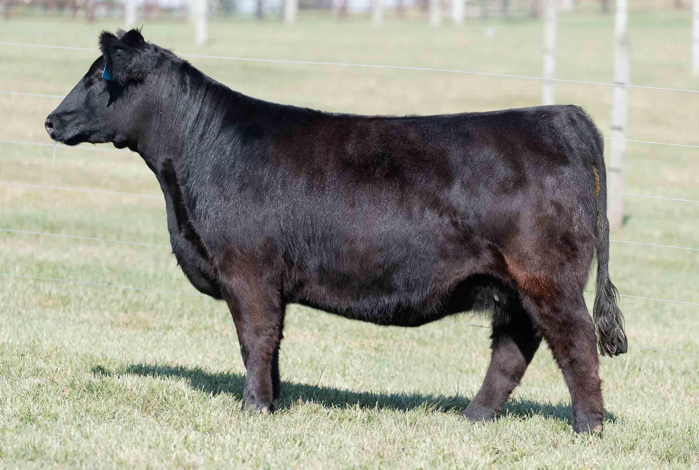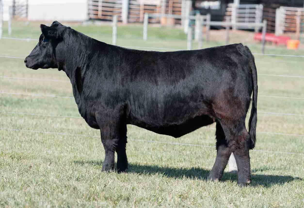 This female here is a moderate built, big middled, stout Coping with Destiny daughter out of a consistent commercial Angus female that always puts one in this sale. She is one we feel can raise the right kind no matter which breed or club calf bull you breed her to.