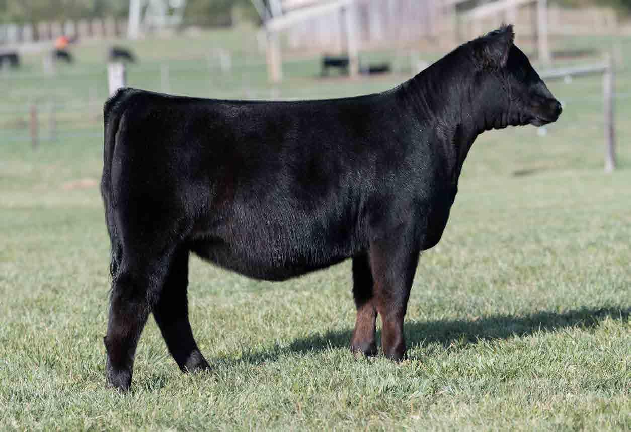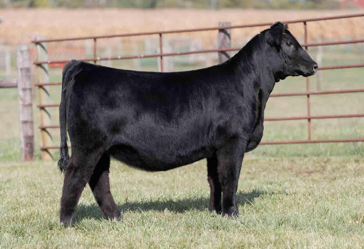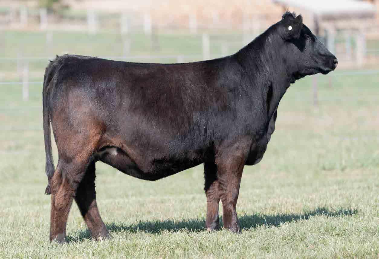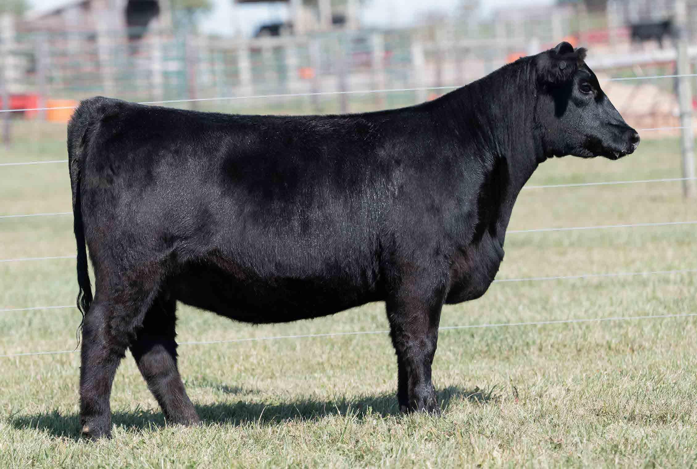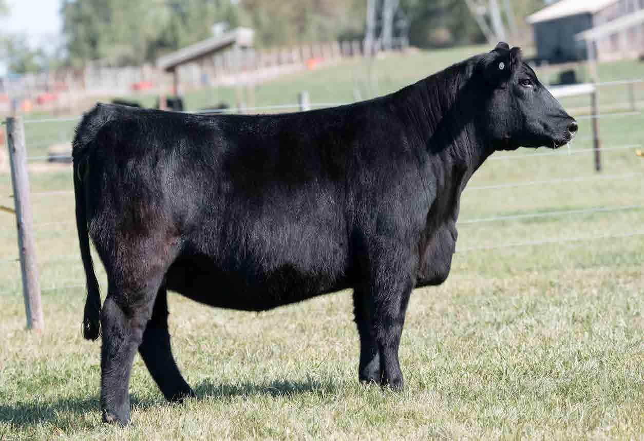 This female here is a moderate built, big middled, stout Coping with Destiny daughter out of a consistent commercial Angus female that always puts one in this sale. She is one we feel can raise the right kind no matter which breed or club calf bull you breed her to.