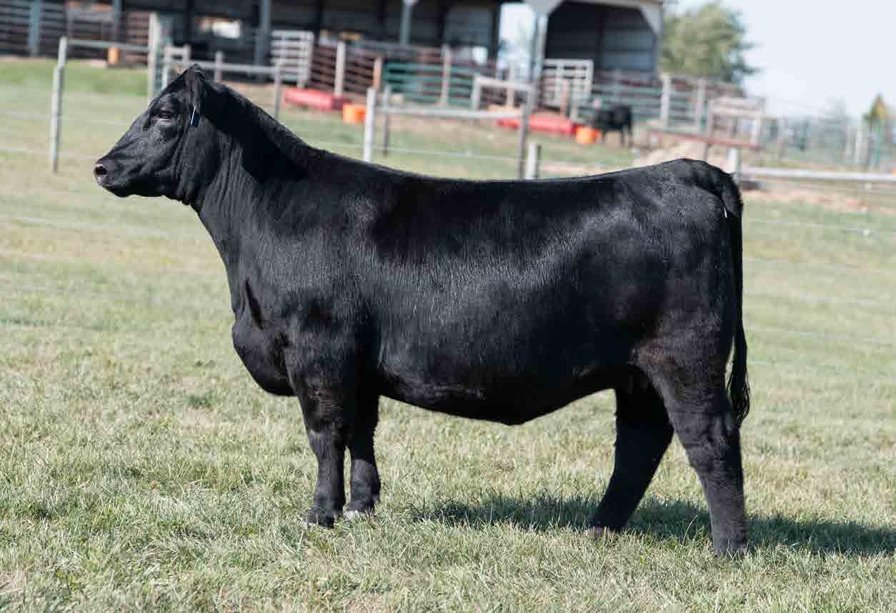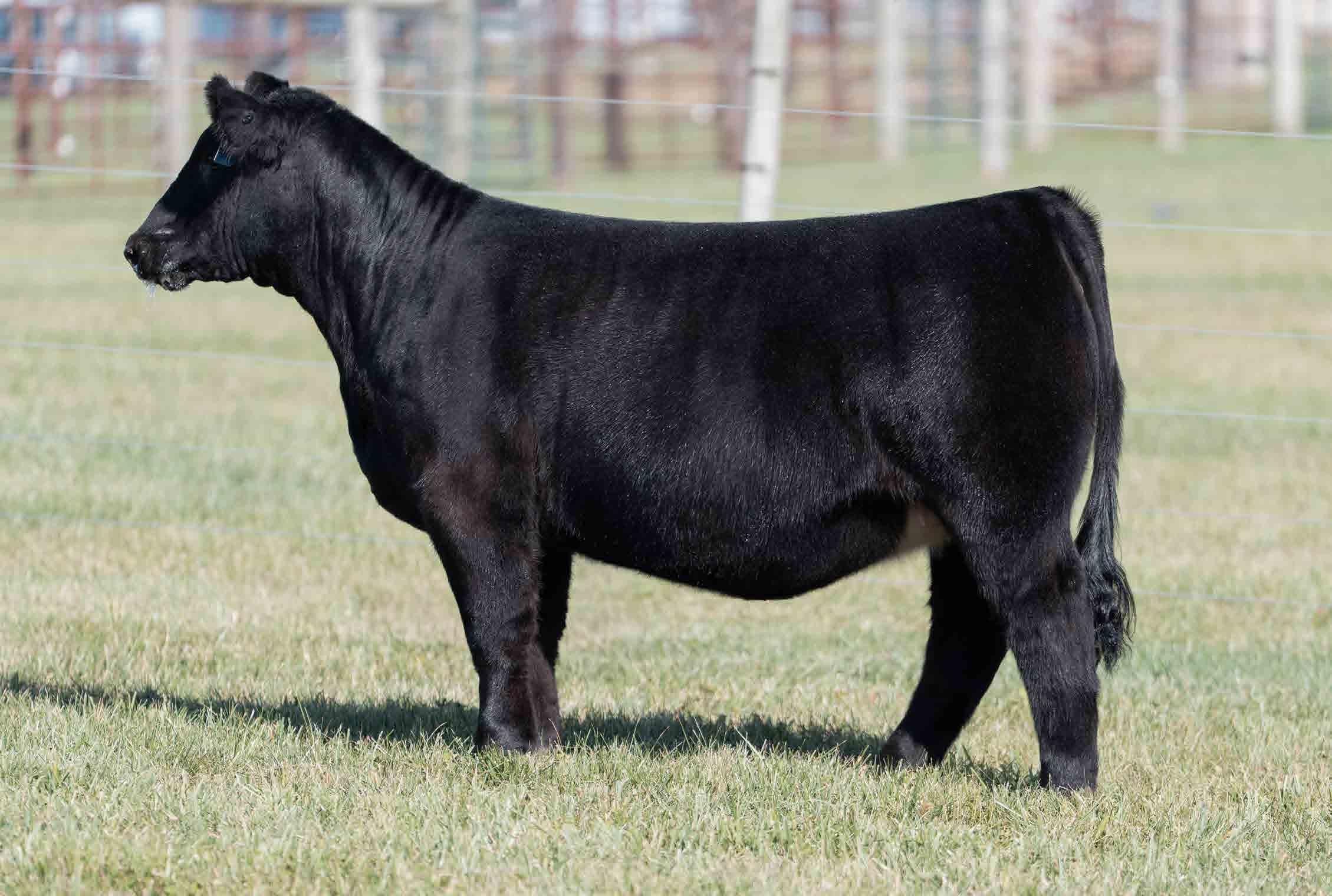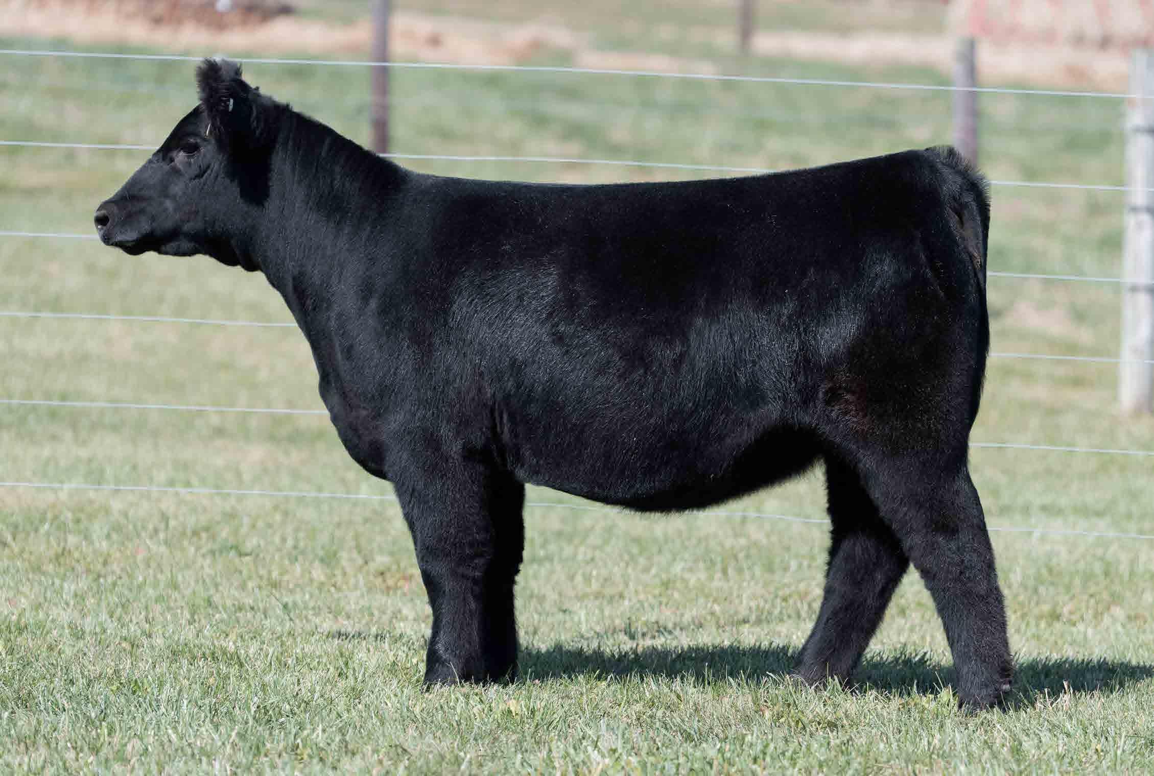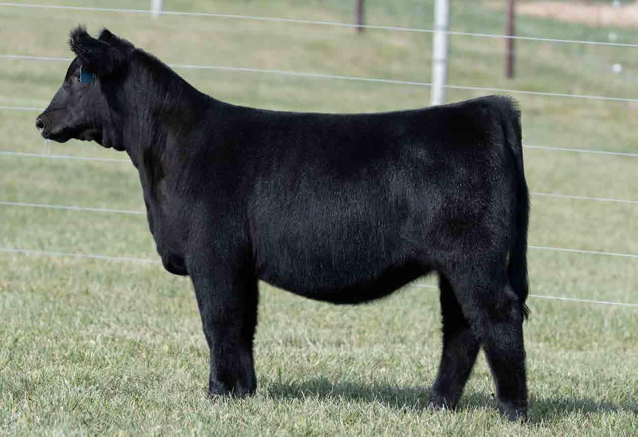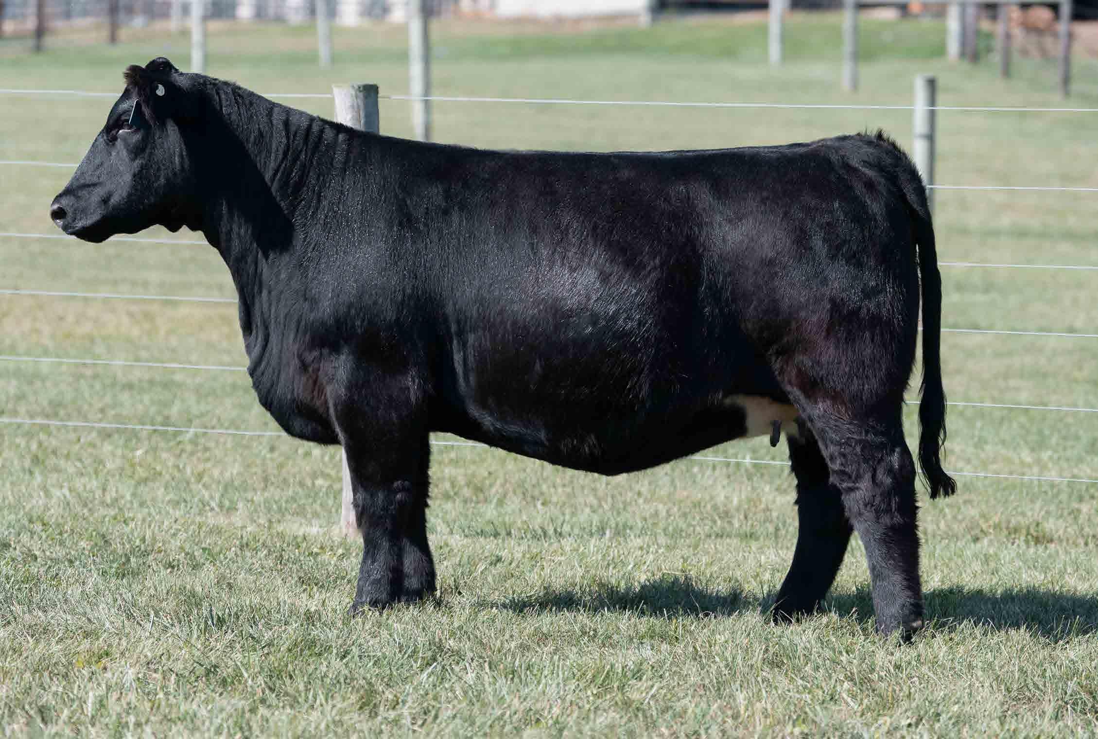 This female here is a moderate built, big middled, stout Coping with Destiny daughter out of a consistent commercial Angus female that always puts one in this sale. She is one we feel can raise the right kind no matter which breed or club calf bull you breed her to.