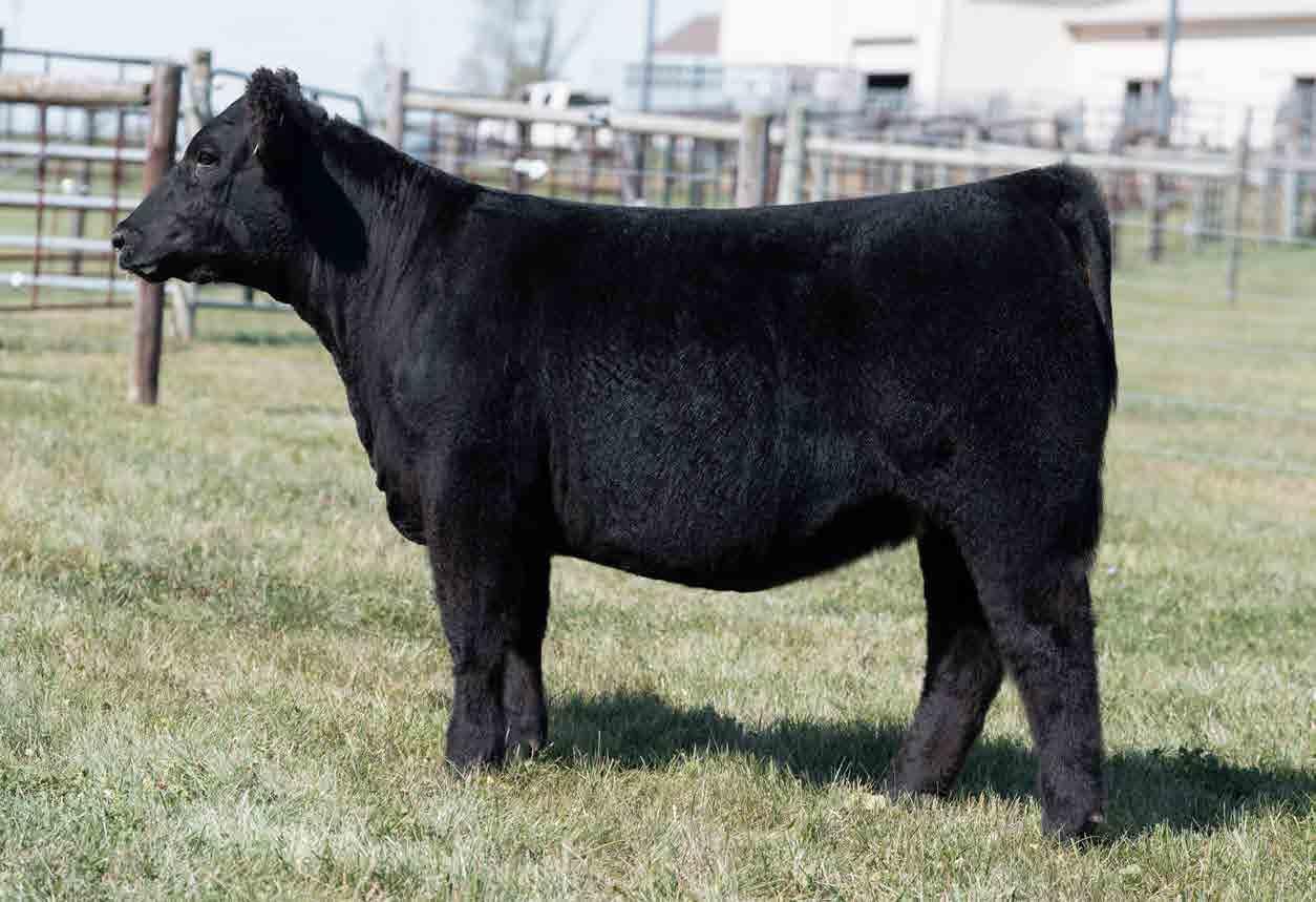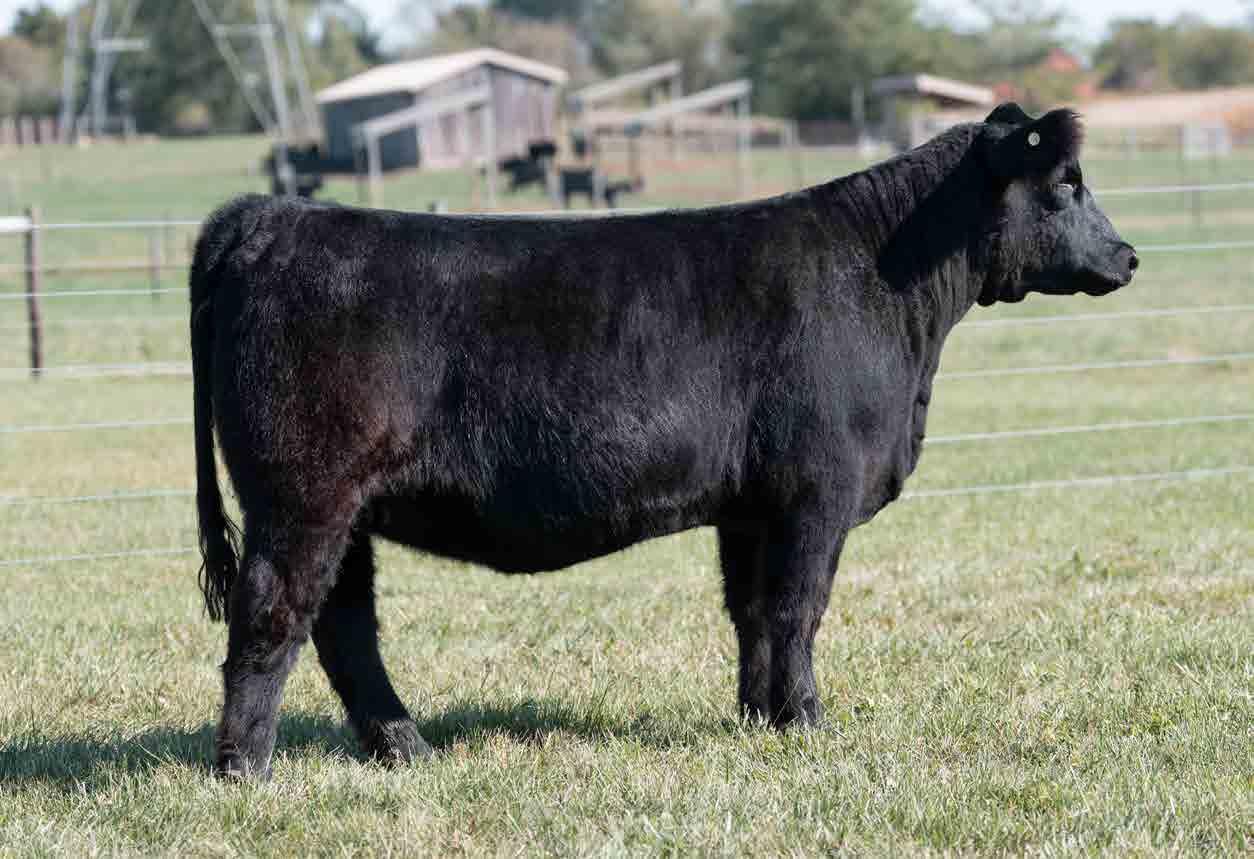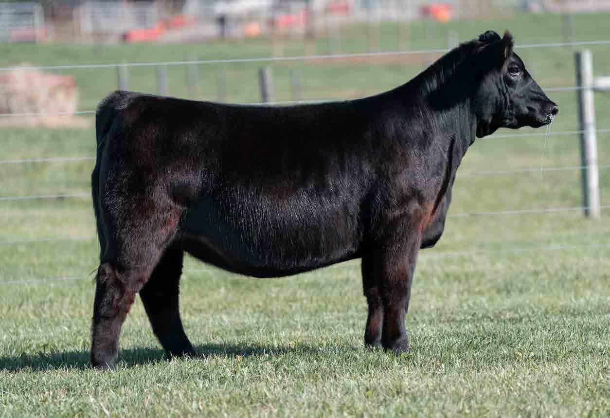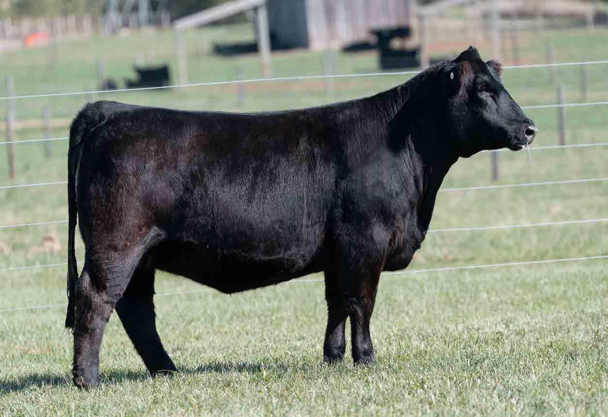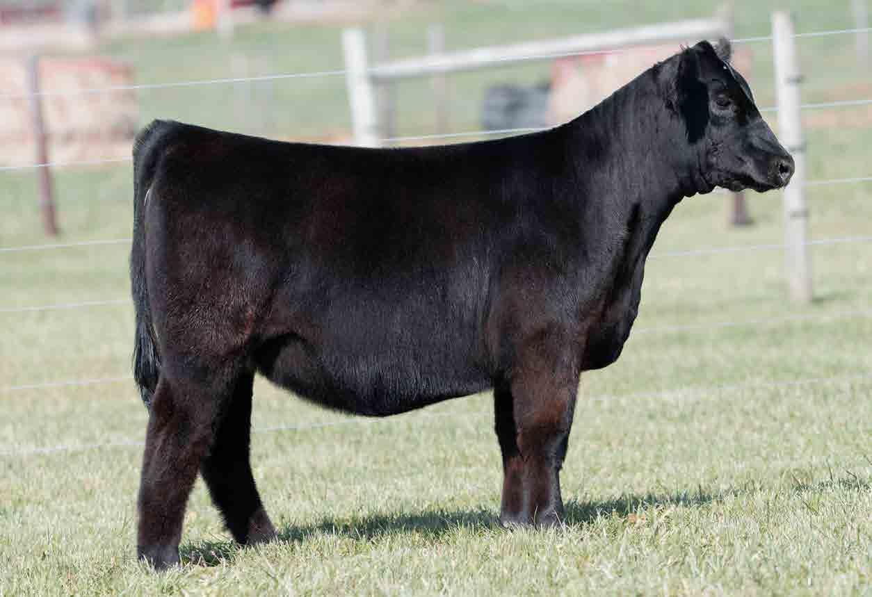 This female here is a moderate built, big middled, stout Coping with Destiny daughter out of a consistent commercial Angus female that always puts one in this sale. She is one we feel can raise the right kind no matter which breed or club calf bull you breed her to.