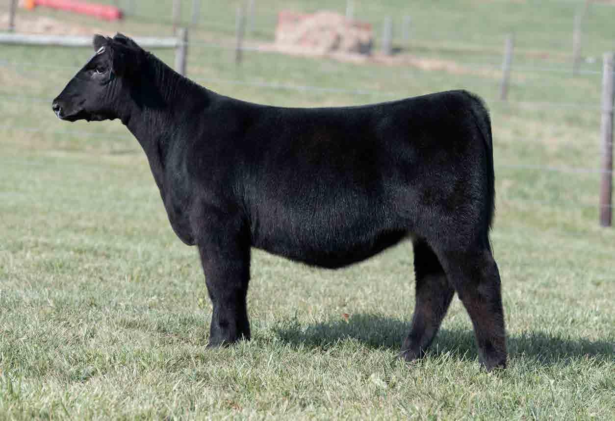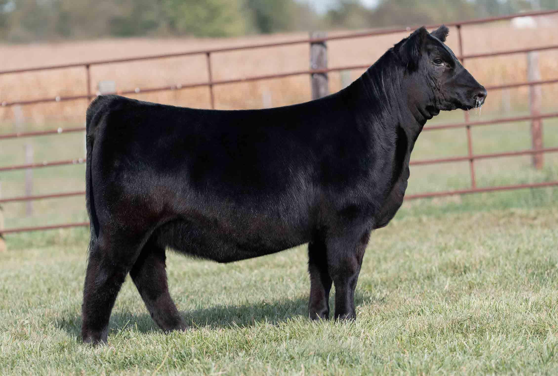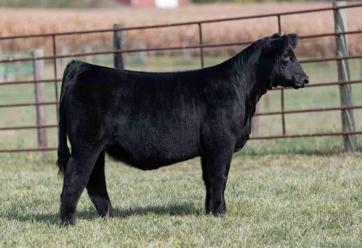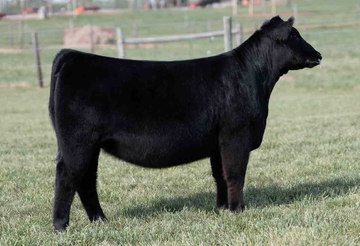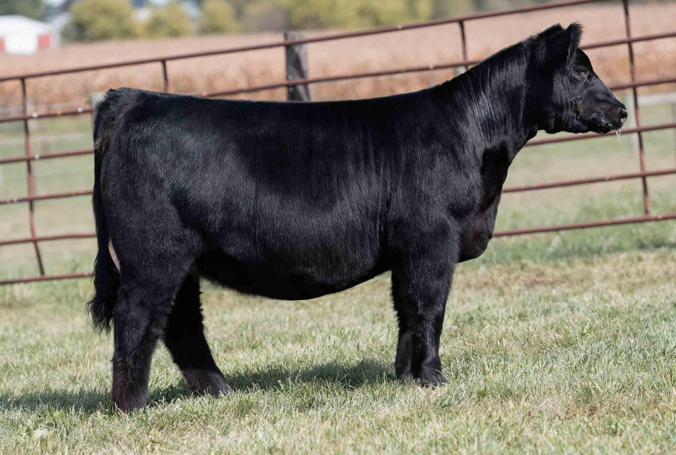 This female here is a moderate built, big middled, stout Coping with Destiny daughter out of a consistent commercial Angus female that always puts one in this sale. She is one we feel can raise the right kind no matter which breed or club calf bull you breed her to.