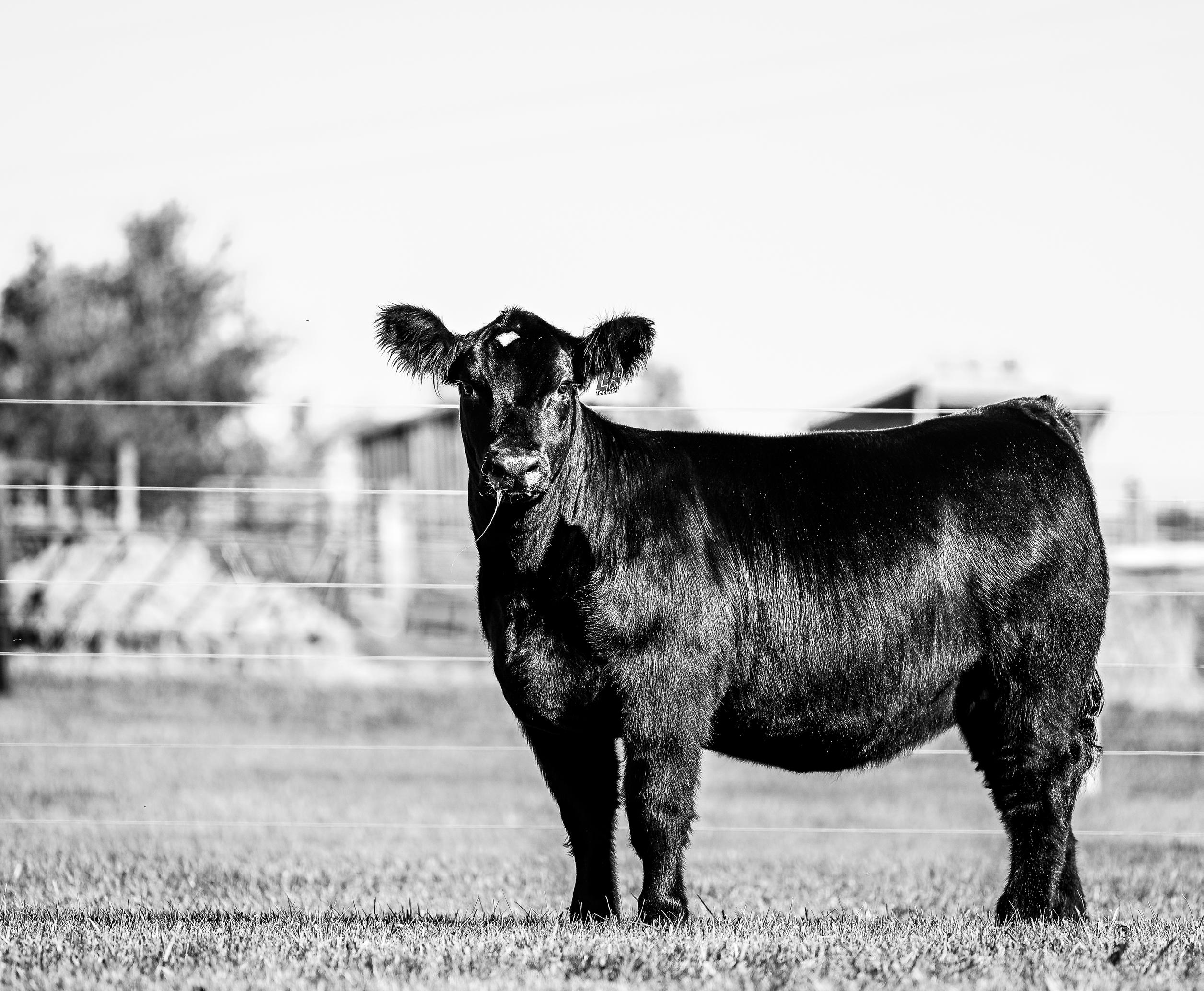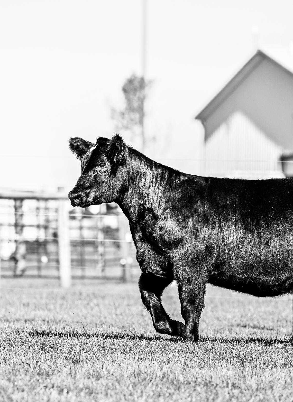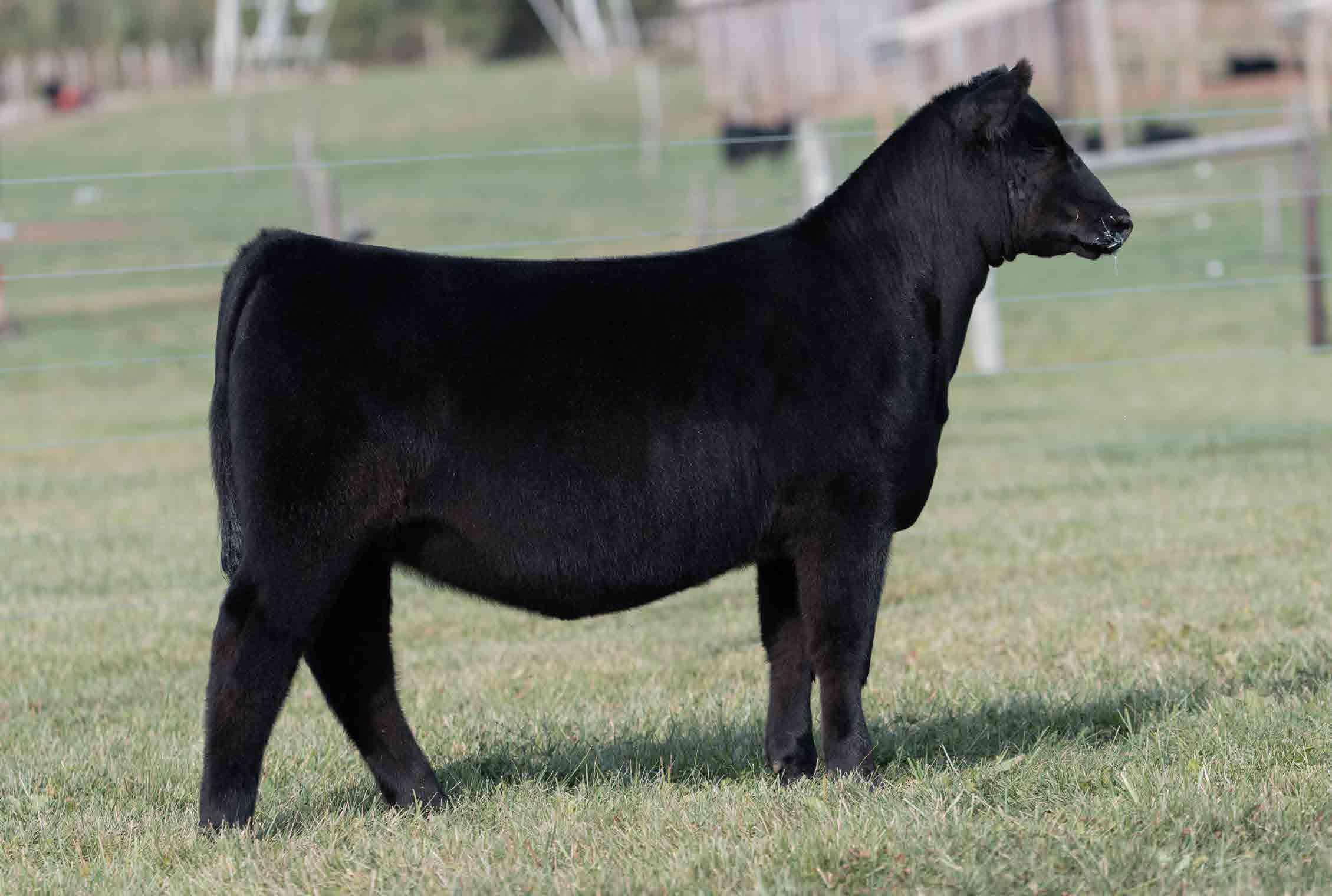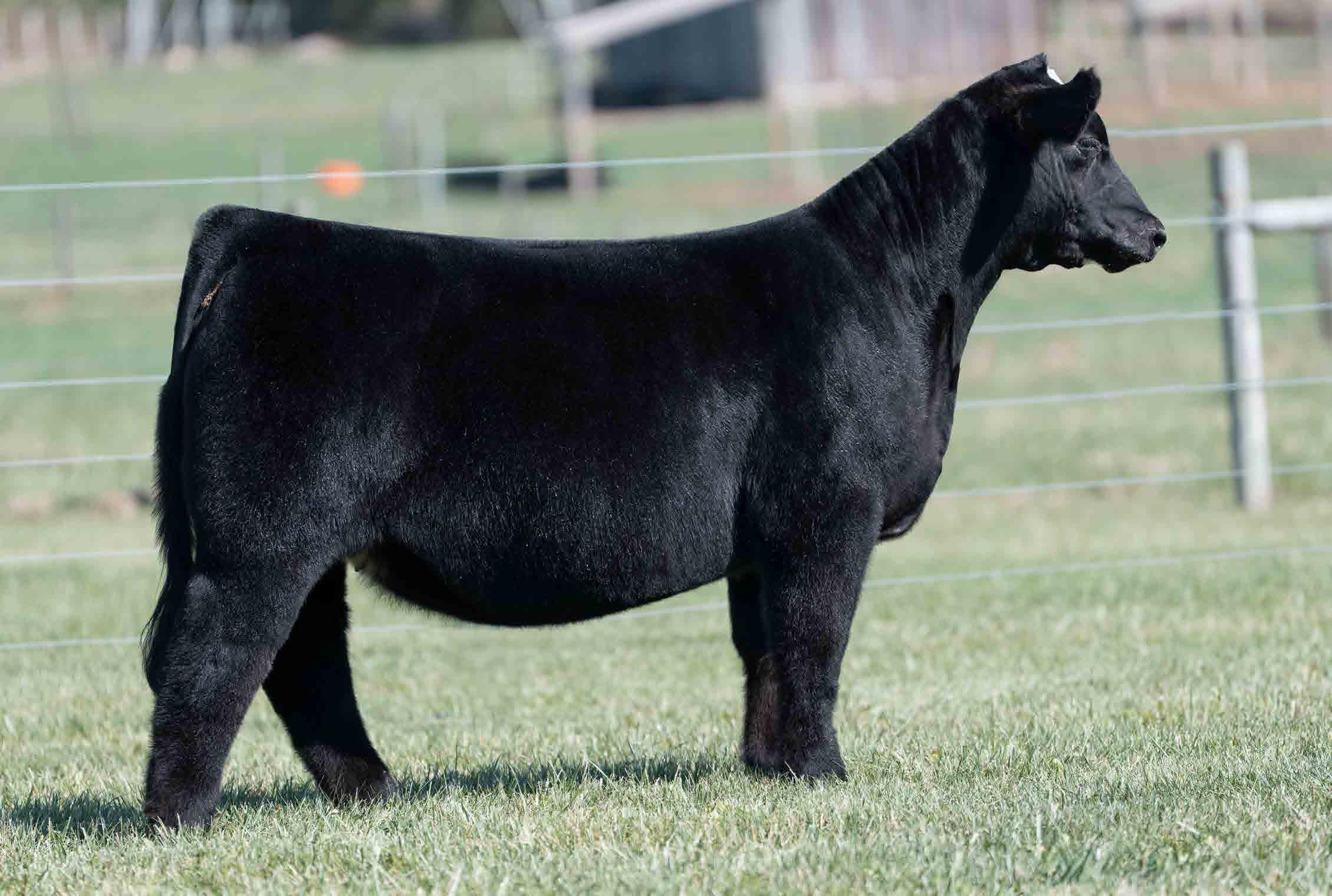 This female is the product of a first calf heifer Bryson showed that we purchased from our good friends, The Sweeny’s, SWNY Princess 2202 (AKA Bubbles). Bubbles had a very successful show career for Bryson, being named Champion Angus numerous times and Top Five a couple of times. This Prominent daughter is a long bodied, smooth made female with look and a good amount of power.
