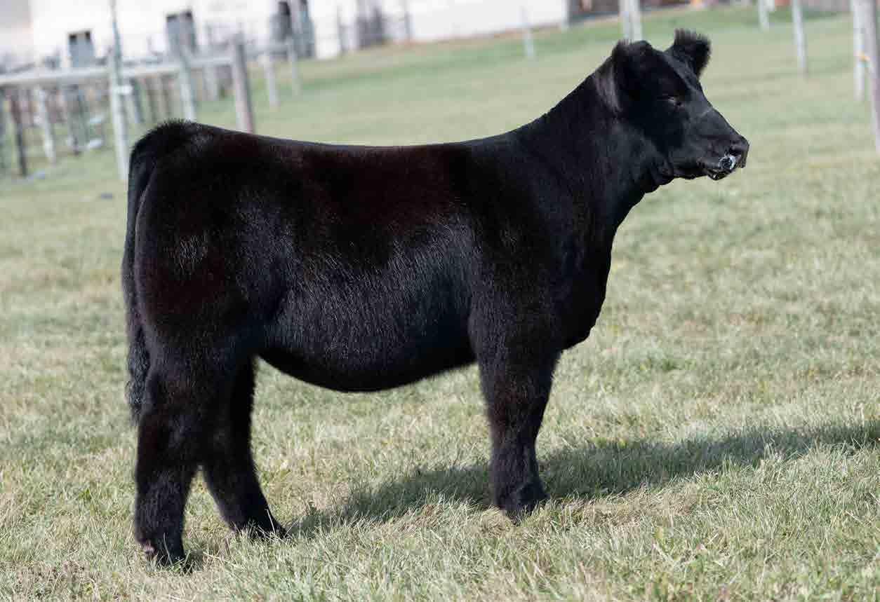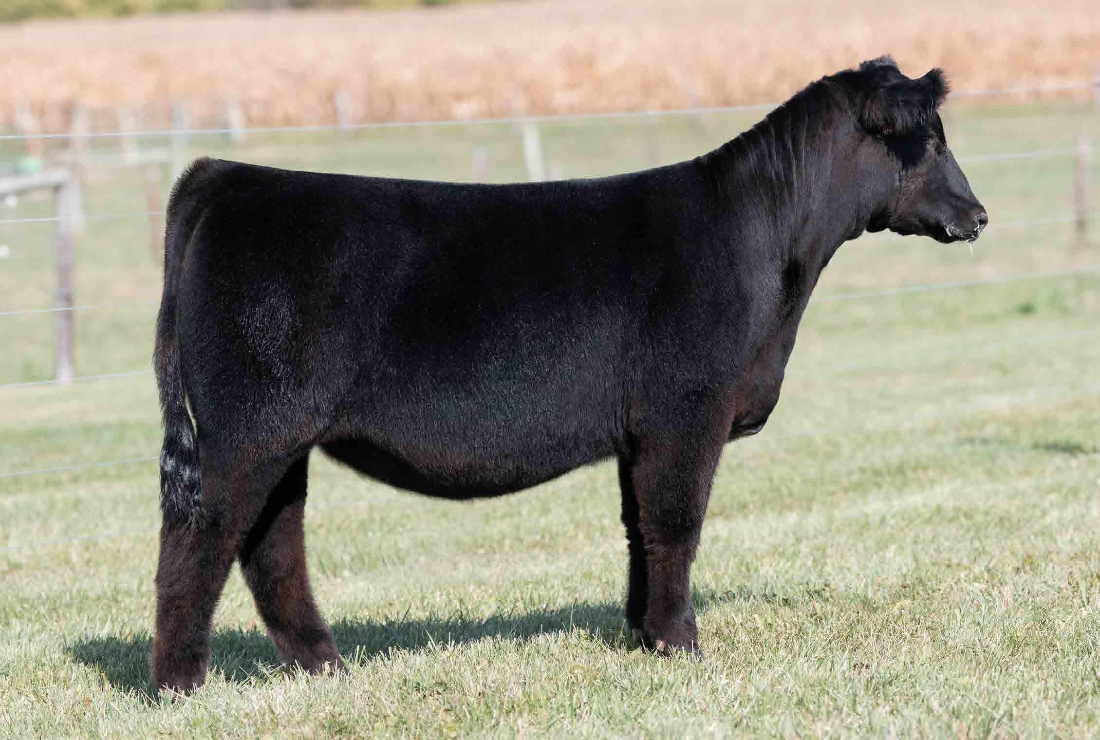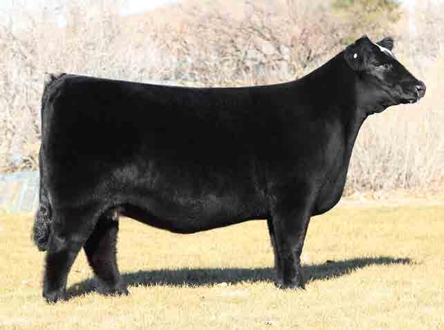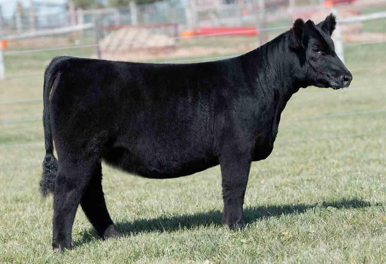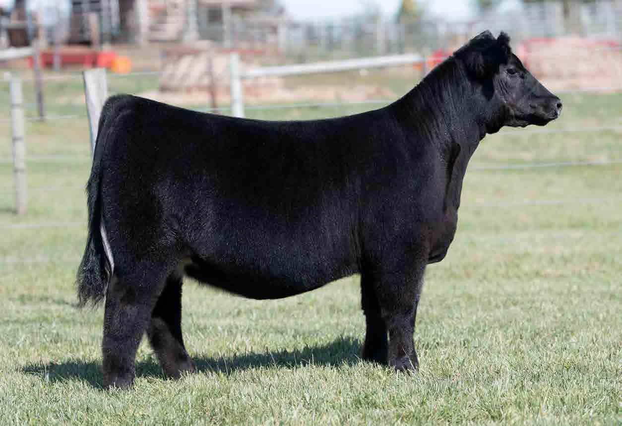 Last year, there was a heifer we sent to Lucky Strike to sell that was a full sister to this female that the Cribbs family has campaigned very successfully in South Dakota, but probably not as successful as she should have been from the pictures and videos, they have sent us. We feel this Remedy daughter is built a lot like her sister out of the great SCC SCH Phyllis cow family. Her dam, SCC SCH Phyllis 934, is one of the best looking and stoutest Angus donors on our farm and you can see that in this female. This one’s feet and legs are what we strive to raise every year, and she has all the power and look to raise the right kind. Big time donor prospect here.