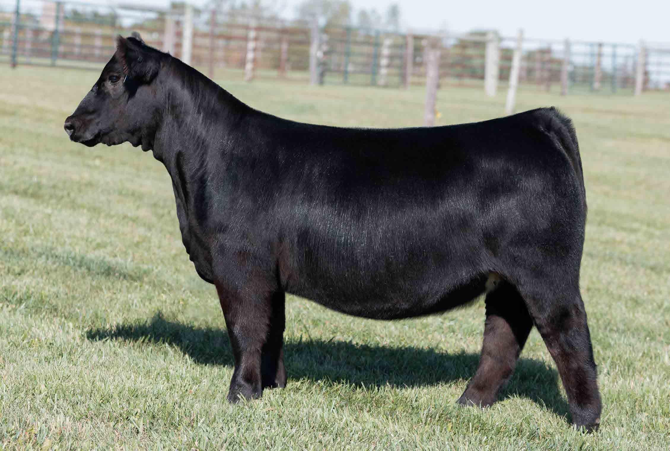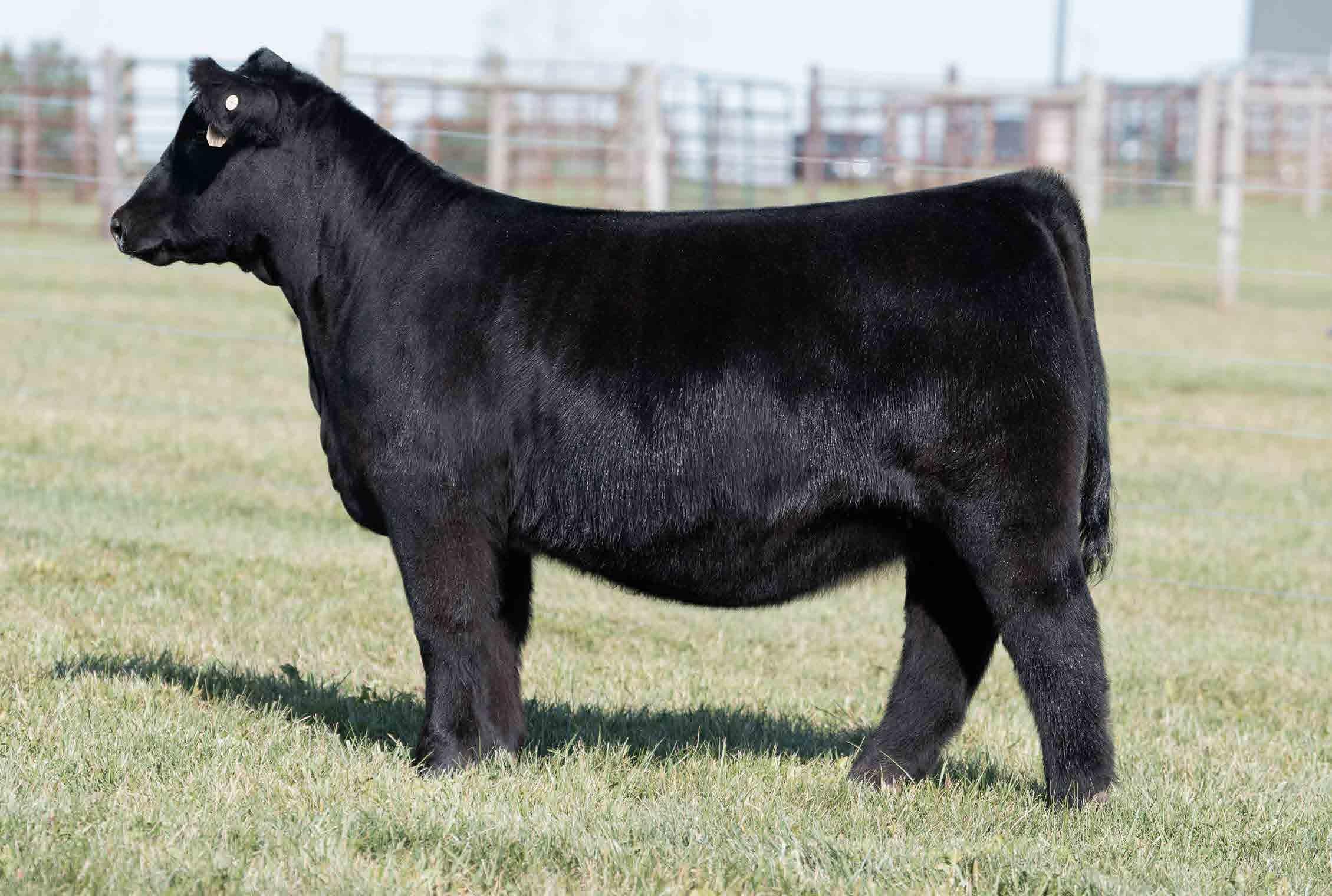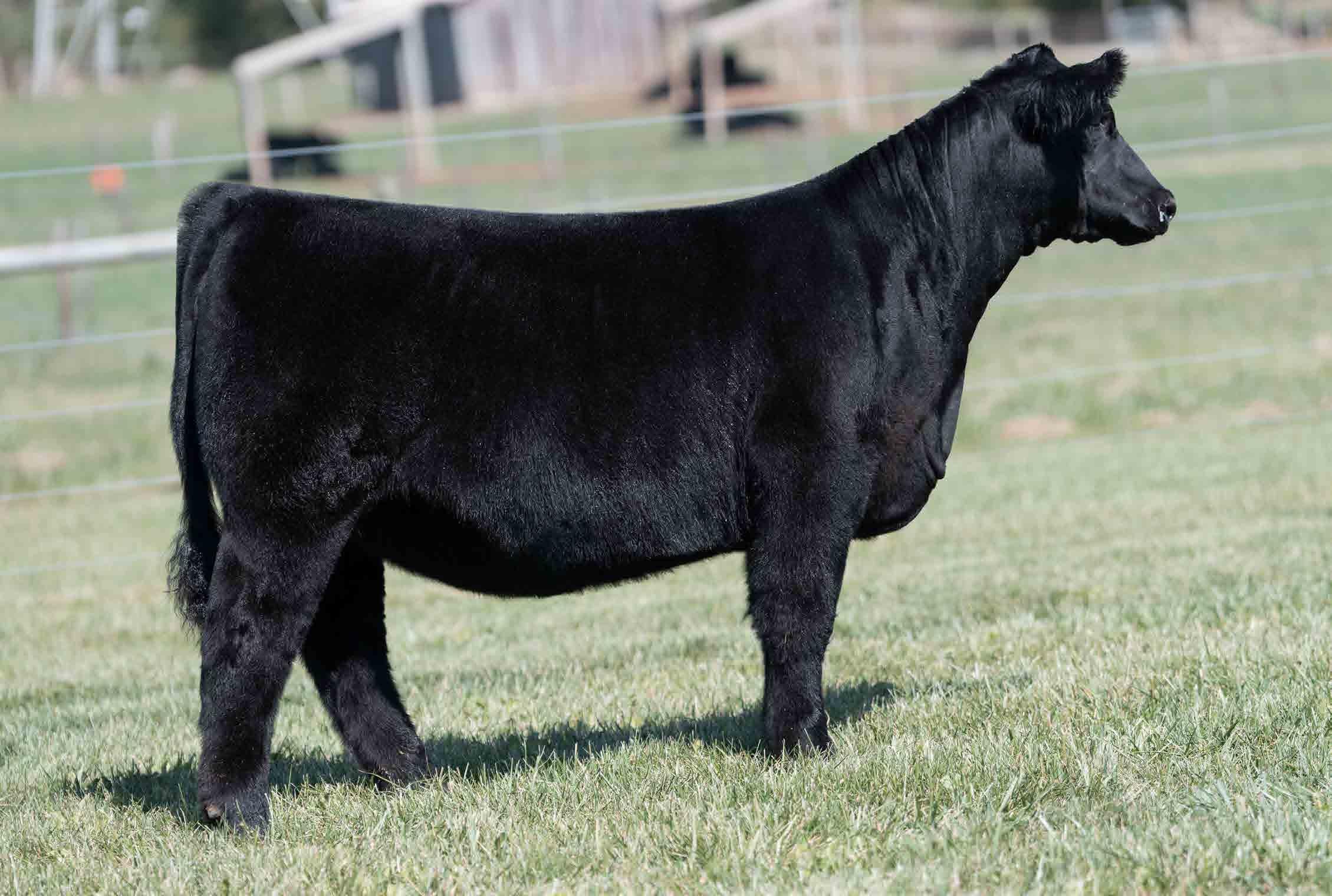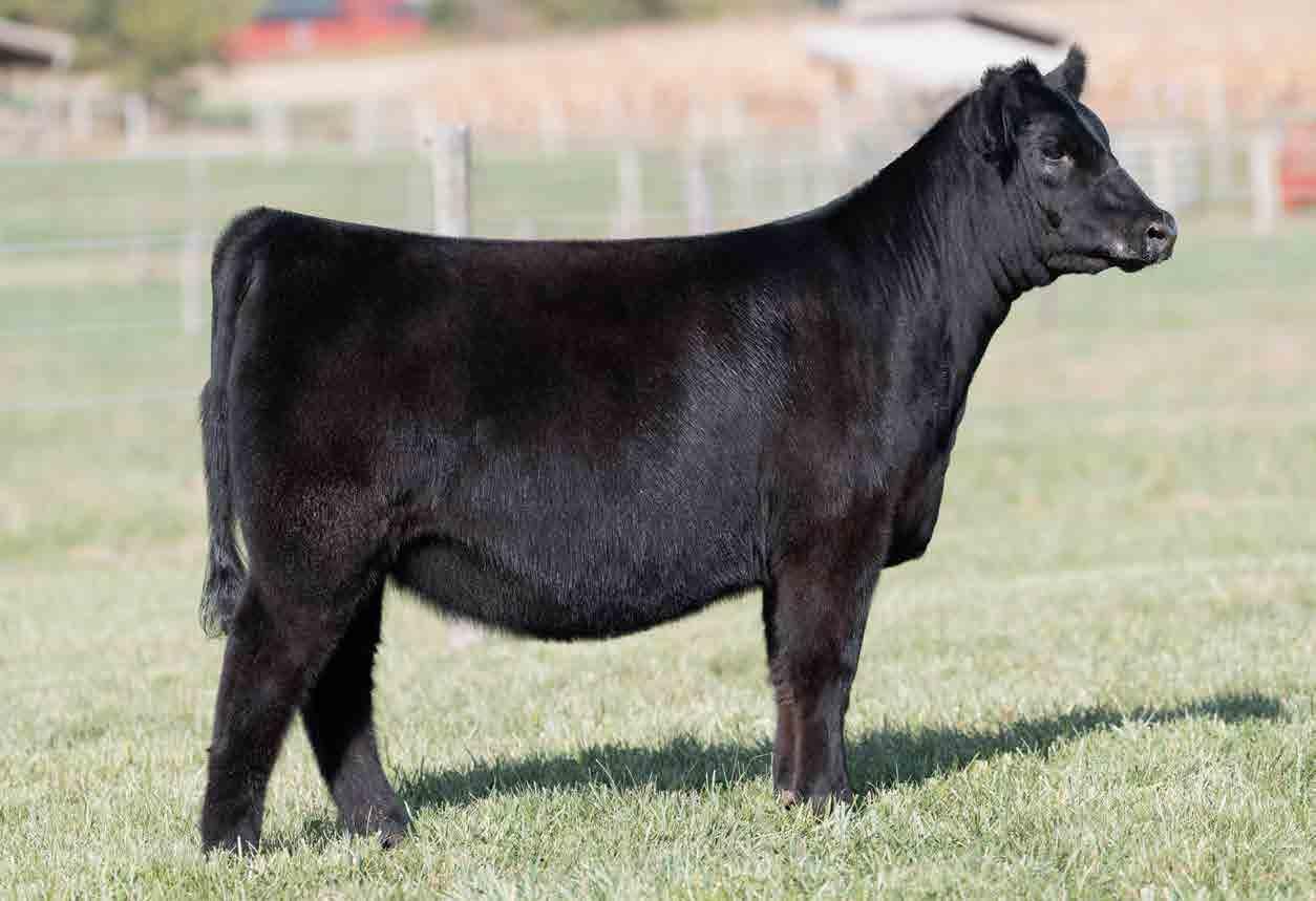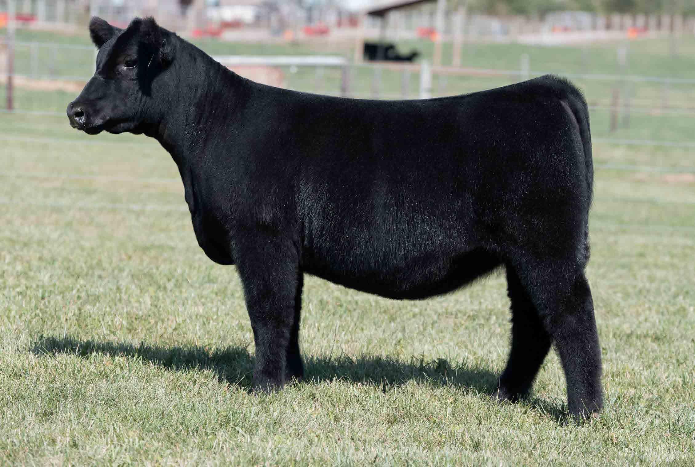Last year, there was a heifer we sent to Lucky Strike to sell that was a full sister to this female that the Cribbs family has campaigned very successfully in South Dakota, but probably not as successful as she should have been from the pictures and videos, they have sent us. We feel this Remedy daughter is built a lot like her sister out of the great SCC SCH Phyllis cow family. Her dam, SCC SCH Phyllis 934, is one of the best looking and stoutest Angus donors on our farm and you can see that in this female. This one’s feet and legs are what we strive to raise every year, and she has all the power and look to raise the right kind. Big time donor prospect here.