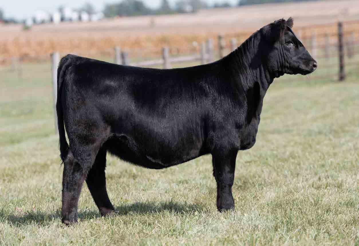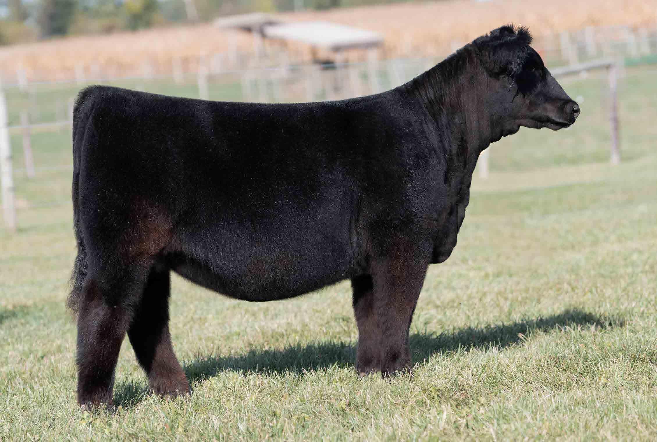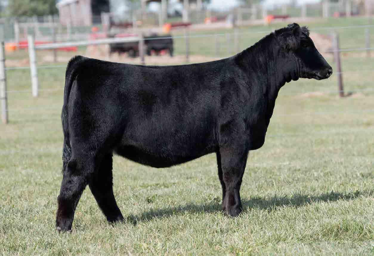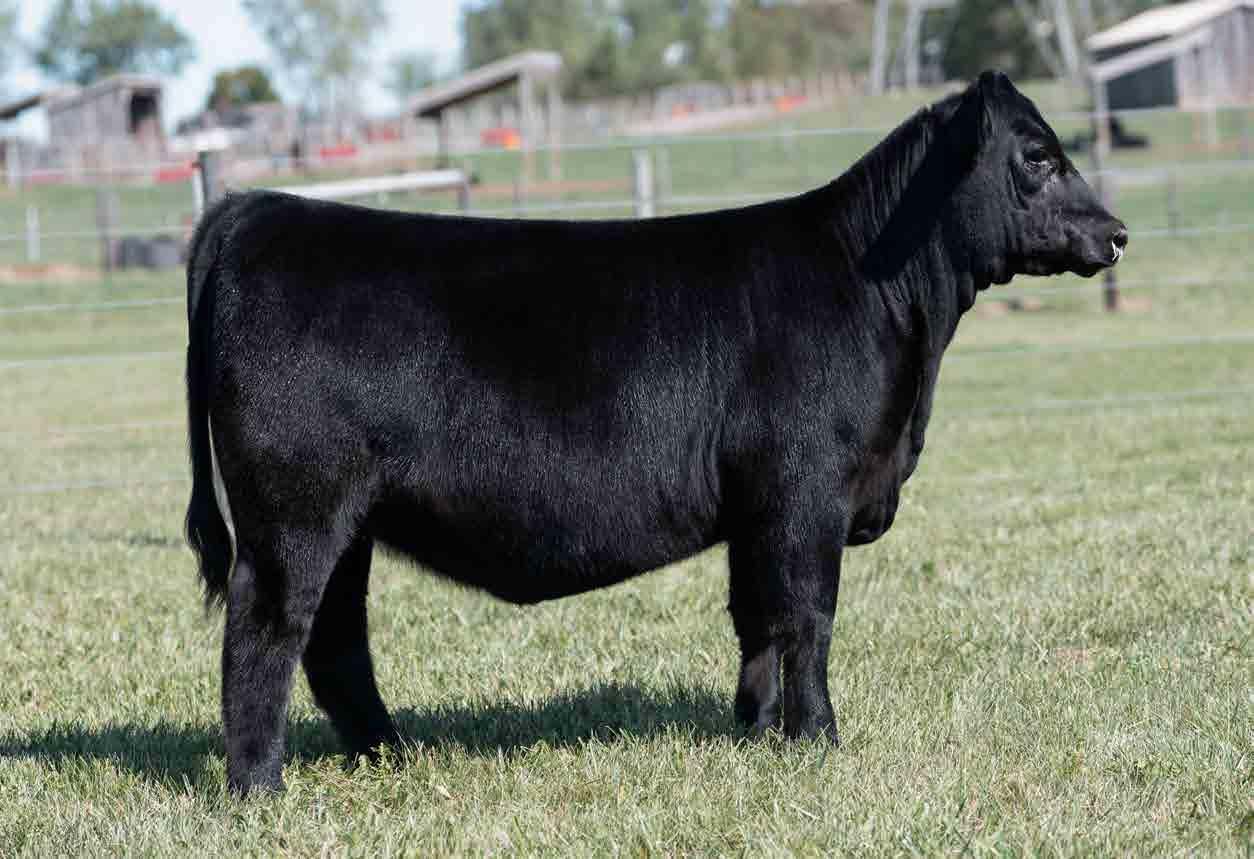 Last year, there was a heifer we sent to Lucky Strike to sell that was a full sister to this female that the Cribbs family has campaigned very successfully in South Dakota, but probably not as successful as she should have been from the pictures and videos, they have sent us. We feel this Remedy daughter is built a lot like her sister out of the great SCC SCH Phyllis cow family. Her dam, SCC SCH Phyllis 934, is one of the best looking and stoutest Angus donors on our farm and you can see that in this female. This one’s feet and legs are what we strive to raise every year, and she has all the power and look to raise the right kind. Big time donor prospect here.