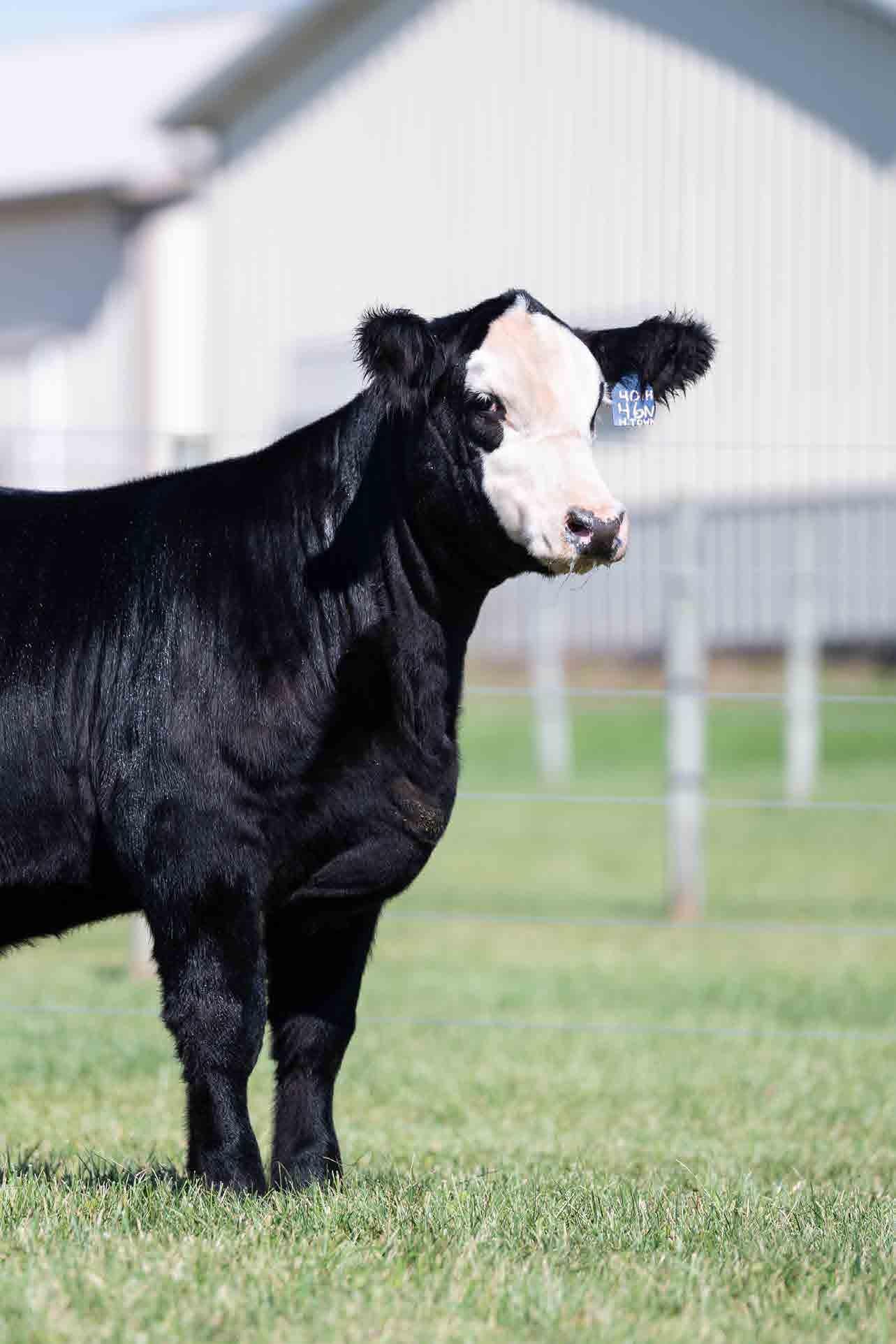 I’m Gonna Be 048H is just getting started down her path of stardom and ones built like this will help propel her. The H-Town’s in the first calf crop are selling high and are very impressive and ones built like this are the reason why. This female is one that needed a better recip, but her quality is shining through. This H-Town daughter is one good looking, long necked bovine with the right muscle and a killer look that can still get out and move.