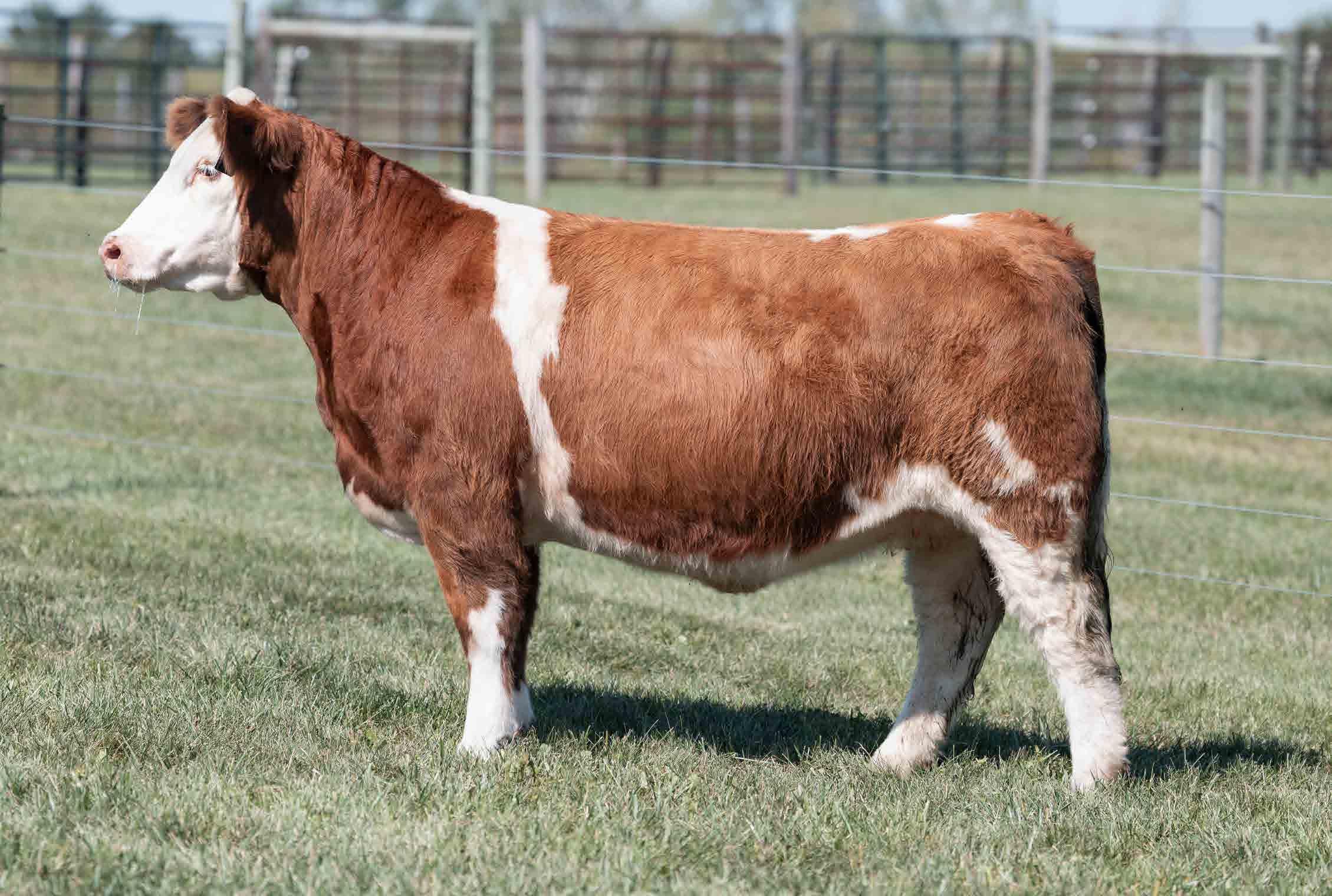 We have used a lot of Tecumseh around here and one’s built like this TJSC Knockout 121Y daughter are the reason why. This baldy female is good looking, moderate framed, and has the eye appeal it takes to raise the next generation of champions for your farm.