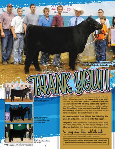 Over the past several years we have met numerous people in the cattle industry. All have been great, but one is extra special to our family. Three years ago we met Cory Thomsen. The advice and friendship that Cory has shared with our family is above and beyond what most people offer their customers these days, and for that we thank him. His confidence in our program and especially Mason has been refreshing. With people like Cory in the cattle business, the cattle market will stay strong and successful for years to come! We also wish to thank Steve Robinson, Fred DeRouchey, Riley Laber, Bob Stoltz and the entire crew at BPF for their support. A big thanks to Brian Goettemoeller, Dillon Durham, Kendall Bremer, Keith Bremer, Jake St. Amant, Cody Green and Tyler Pendergraft for your talent and time helping us get Anita prepared at the numerous shows.