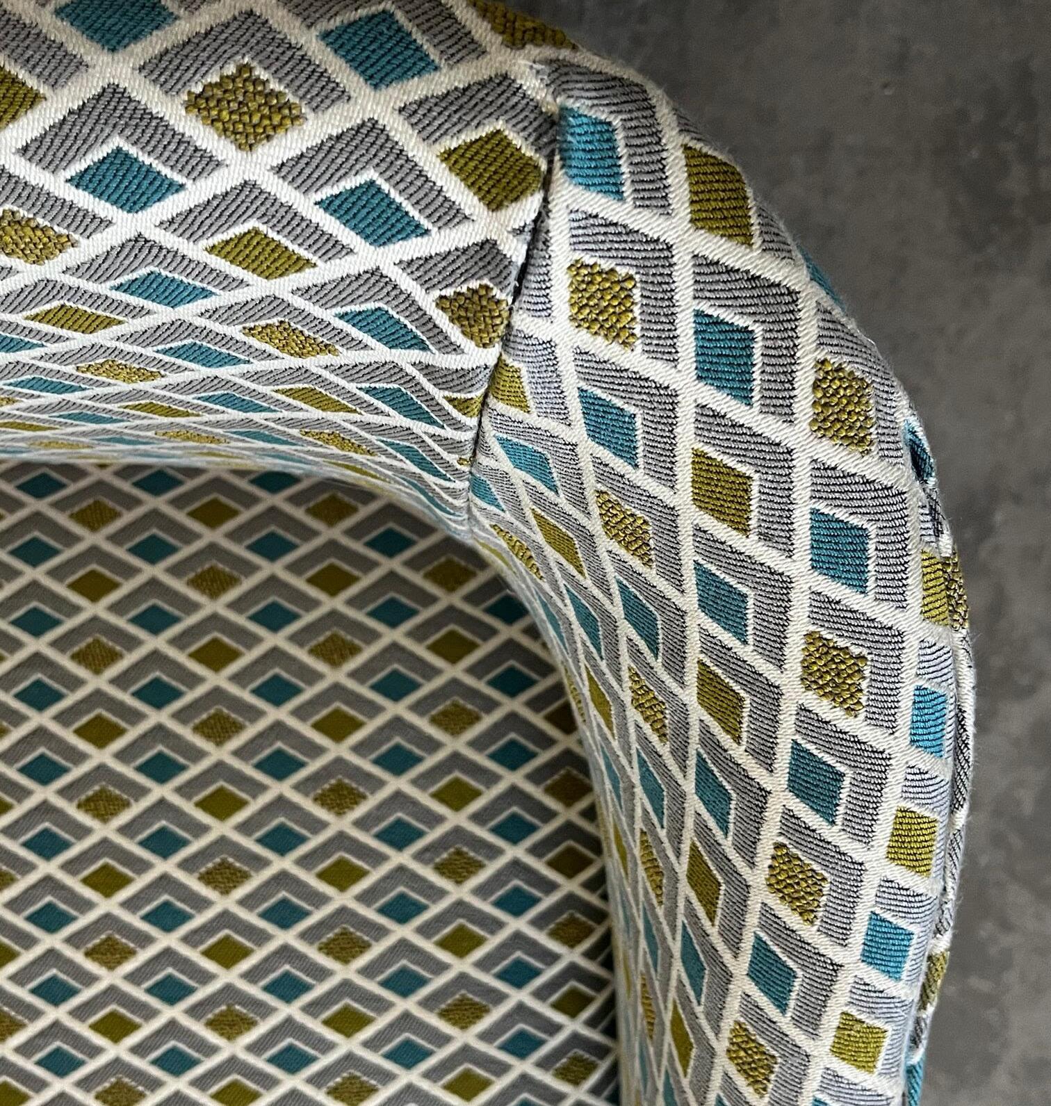 Uno degli elementi essenziali è costituito dall’enfasi posta sulle geometrie. La collezione propone una serie di design audaci e simmetrici, caratterizzati da linee eleganti, triangoli, zigzag e un motivo a labirinto che evoca grattacieli imponenti e paesaggi futuristici. Queste fantasie adornano i tessuti di ricchi colori quali il giallo dorato, il blu turchese e il nero che dona una sensazione di splendore e modernità in cui riecheggia un’affascinante utopia urbana.