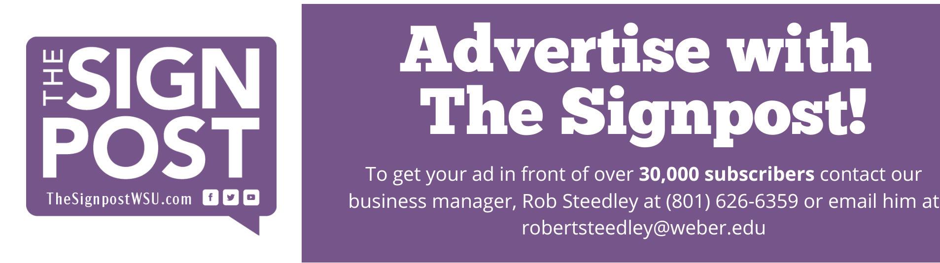 The Signpost is a student publication, written, edited and drafted by Weber State University students. Student fees fund the printing of this publication. Opinions or positions voiced are not necessarily endorsed by the university. The Signpost reserves the right to edit for reasons of space and libel and to refuse to print any letters. Letters to the editor should be submitted online to thesignpost@weber.edu and write “Letter to the Editor” in the subject line. Letters should not exceed 350 words.