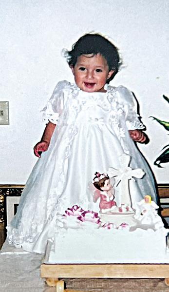 IZQUIERDA: Nelly Hernandez a la edad de 2, después de su bautismo católico. ARRIBA A LA DERECHA: Nelly Hernandez y sus 4 hermanos en su segundo cumpleaños. ABAJO A LA DERECHA: Los padres de Nelly Hernandez, Victor Hernandez y Nelly Tejada.