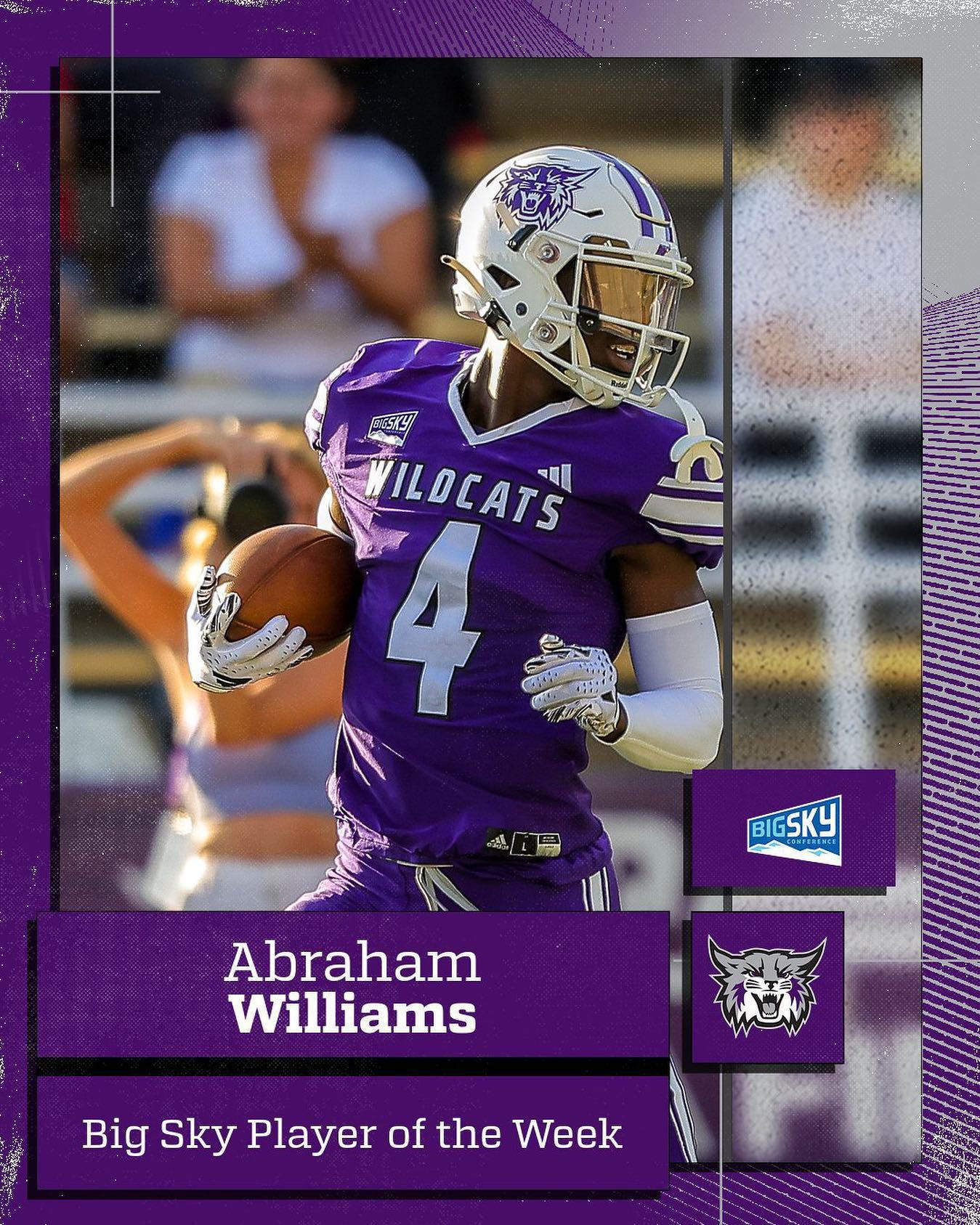 Tras una victoria de 35-10 contra Central Washington University que daba comienzo a la temporada de fútbol, el defensa lateral de Weber State University, Abraham Williams, se aseguró el título de jugador de la semana de Big Sky.