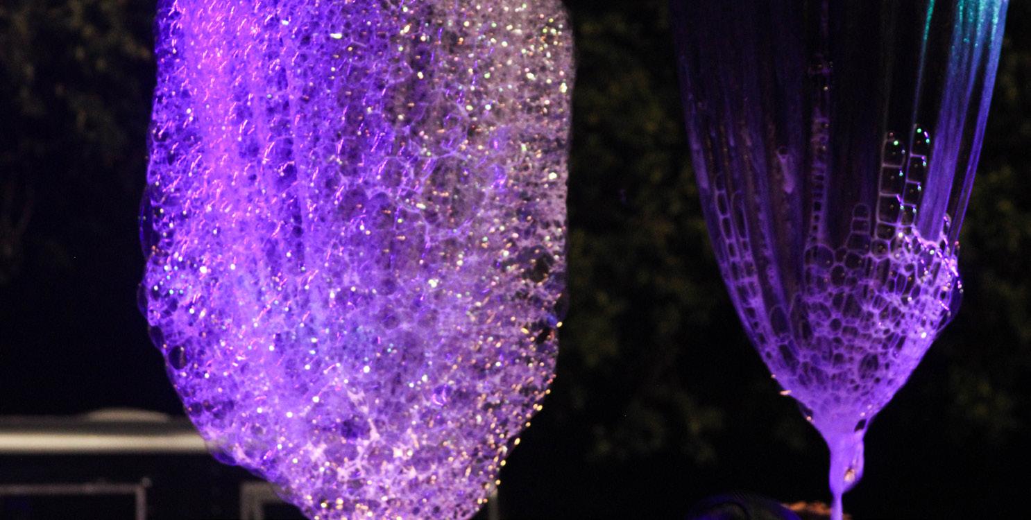 El pozo de espuma estaba lleno de gente debajo de luces estroboscópicas, cubiertos en burbujas, salpicando mientras bailan y socializan con otros estudiantes en el evento.