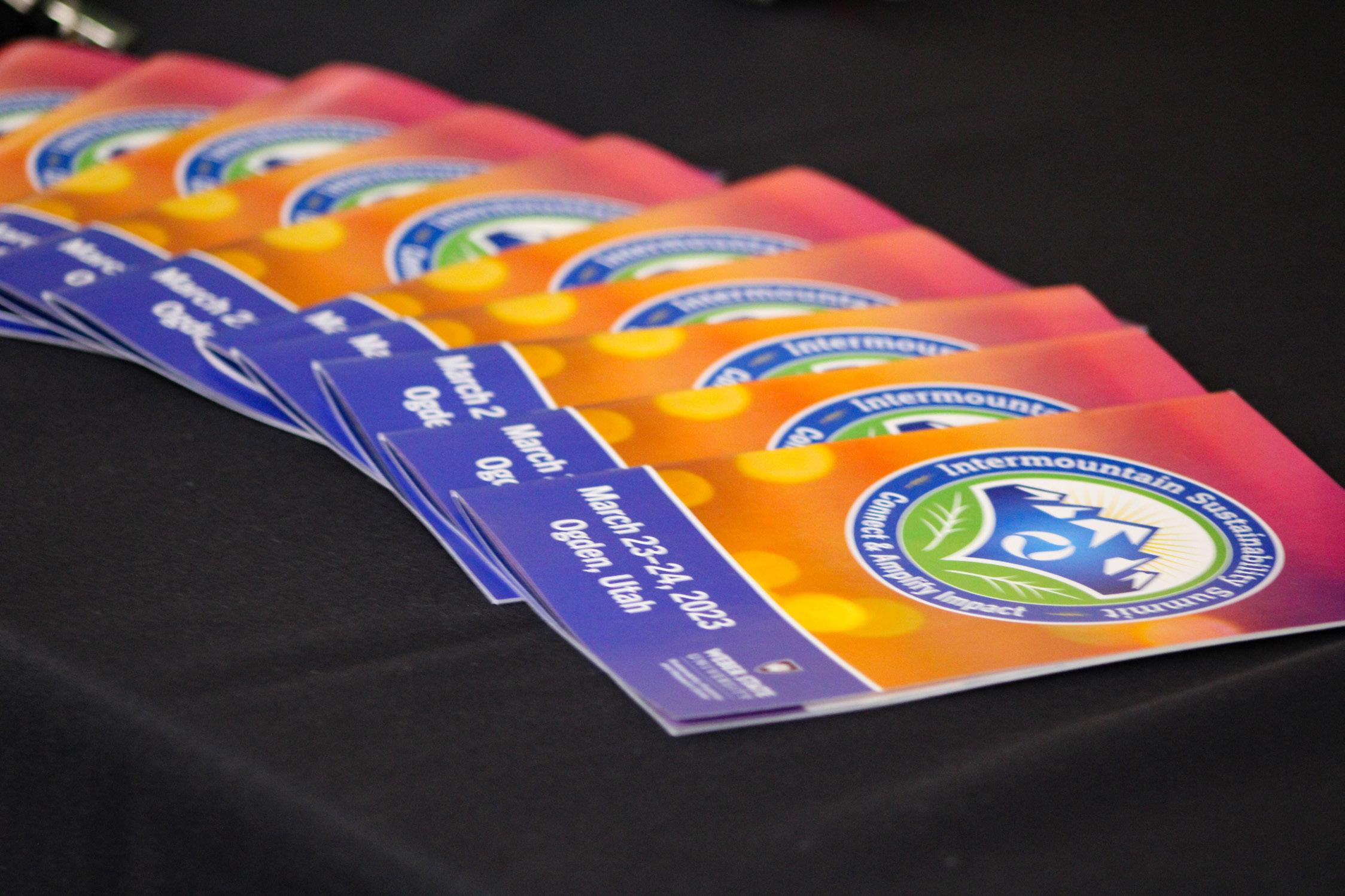 Folletos que contienen más información sobre la Cumbre de Sostenibilidad Intermountain para los asistientes.