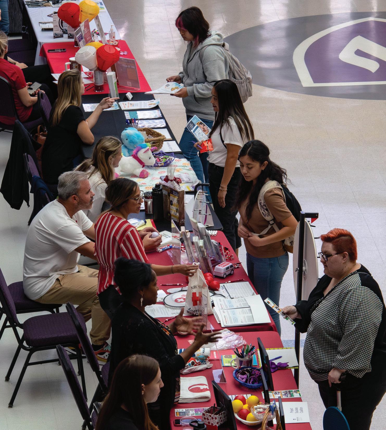 ABOVE: A group of students gather around the Transportation Security Administration booth to discover their services and benefits.