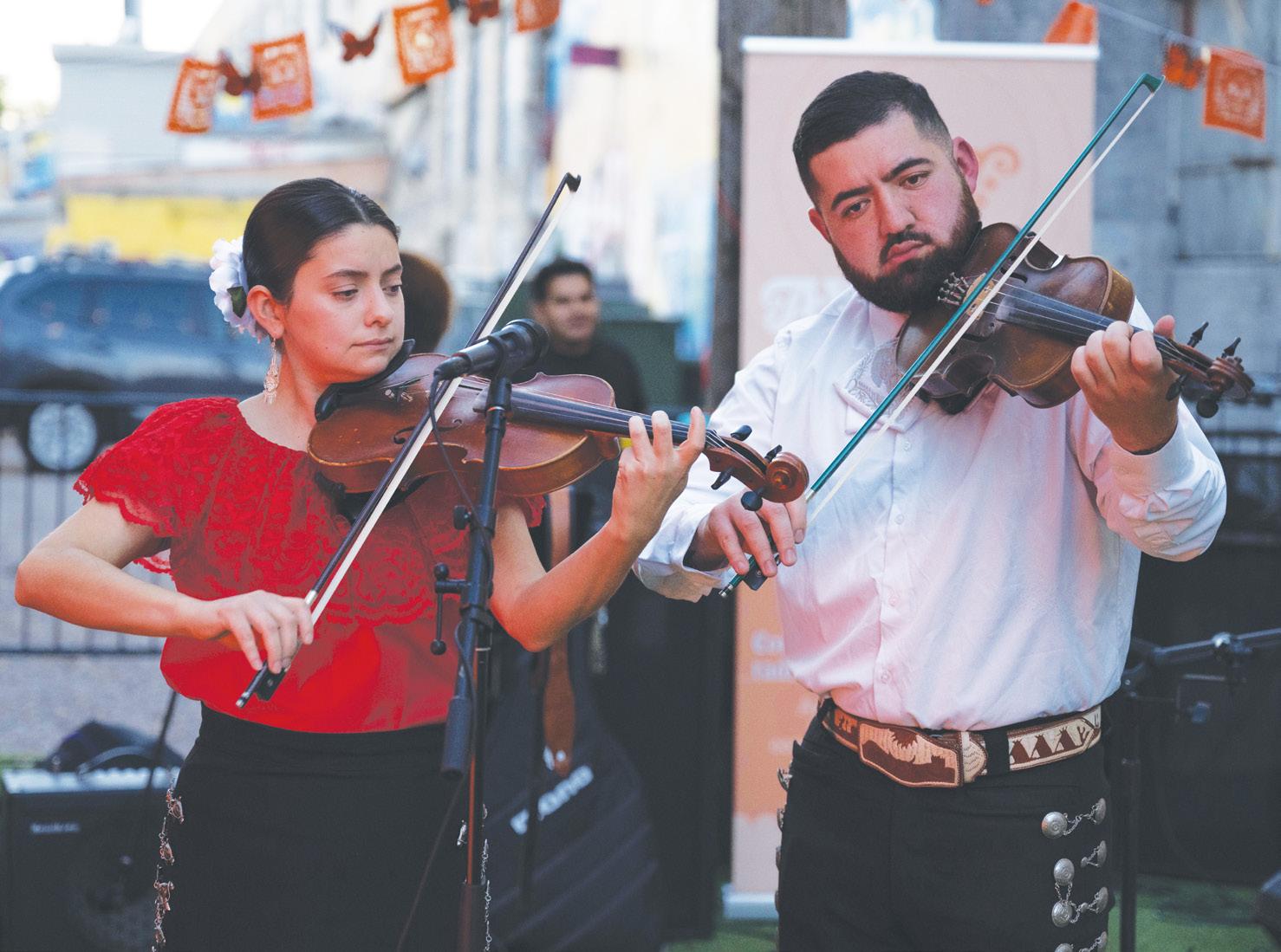 ARRIBA A LA IZQUIERDA: Samuel Castillo (Derecha) y Karlysue Pereyra (Izquierda) ambos tocan el violin para la banda. Pero Pereyra también provee las vocales.