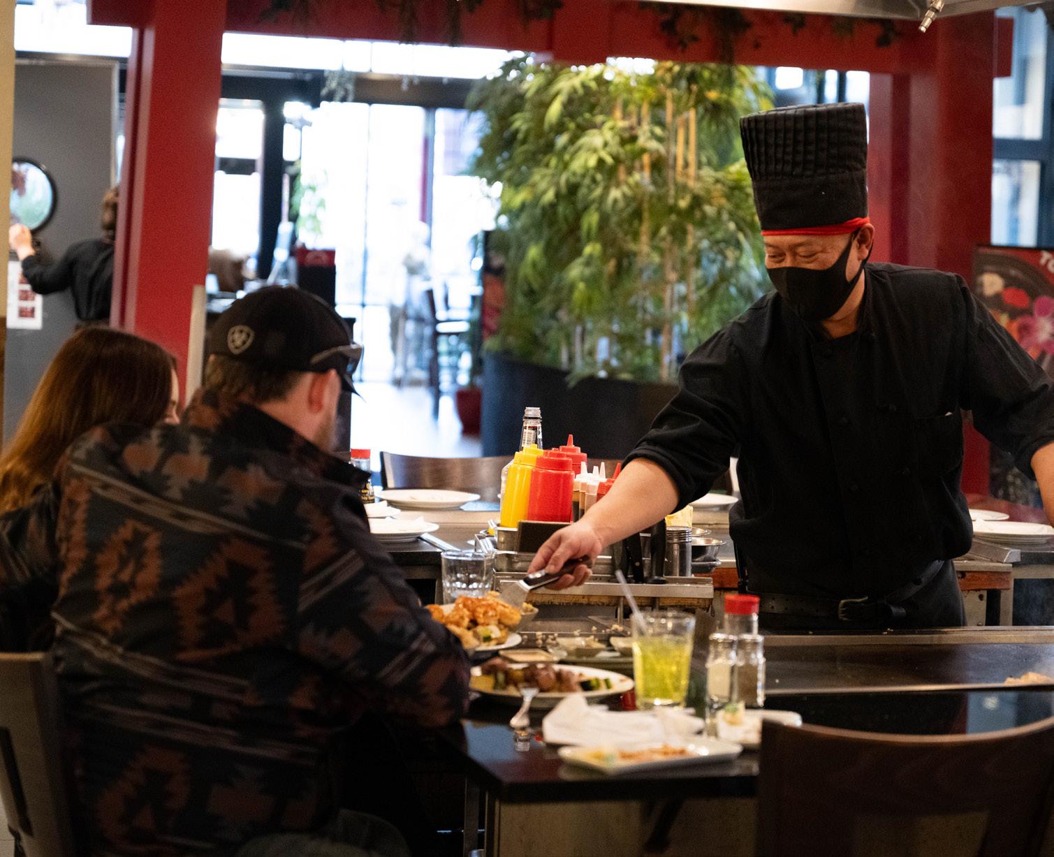 “The ratio we probably do about 15-20% sushi, and the rest is teppanyak i… we have regulars that come in for the sushi. And for us to compete with Tona (Tona Sushi Bar and Grill) … we feel blessed to be able to compete with them,” Yu said.