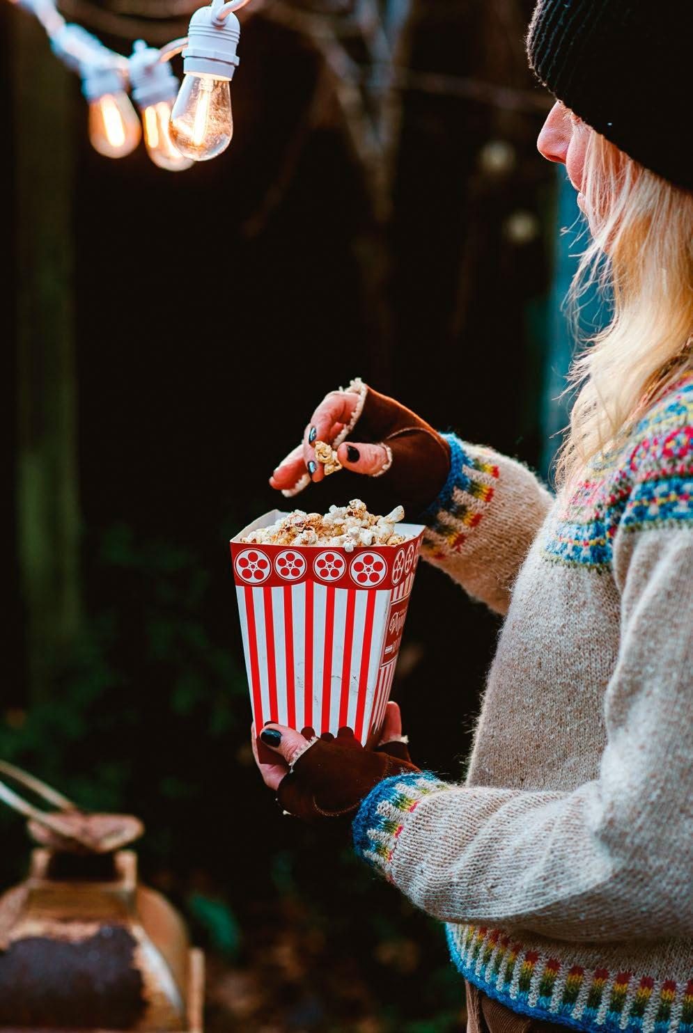 Warm corn popped over the fire – who needs a movie when you can watch those mesmerising flames
