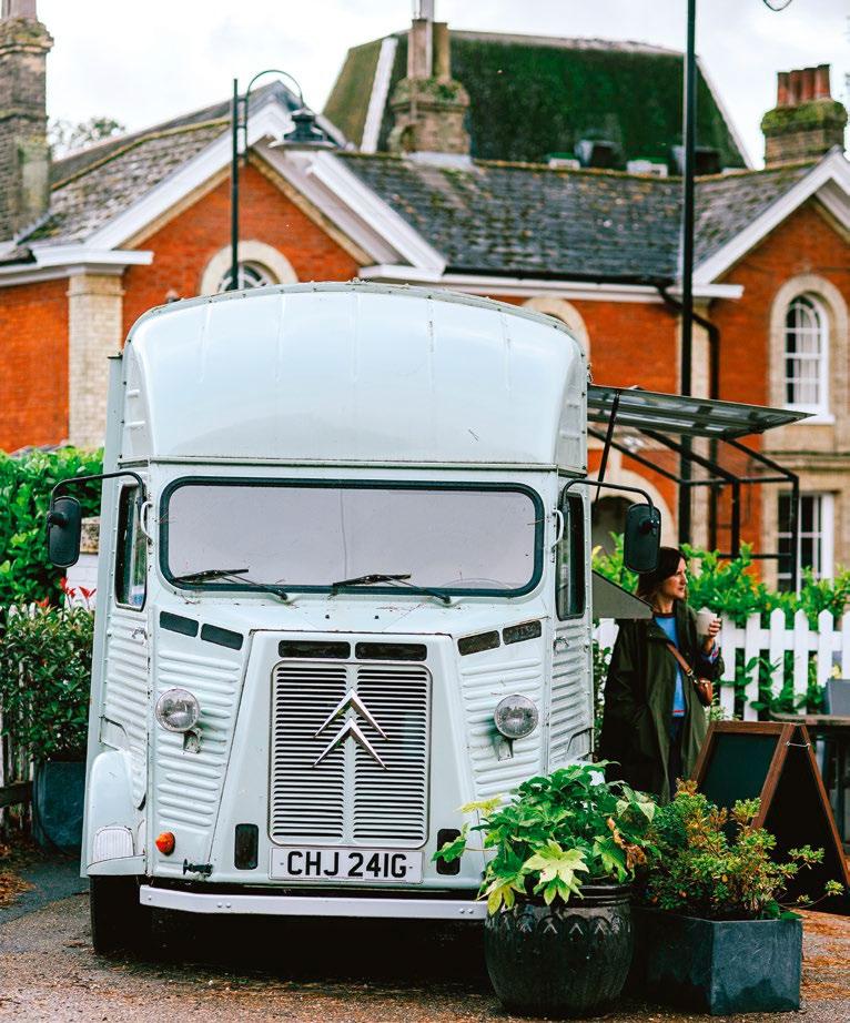 Clockwise from right: Heidi, ‘the station wagon’, serves refreshments outside the salon where Kate works; Kate’s beautiful home; Old Knobbley, an 800-yearold English Oak in nearby Furze Hill Woods. “It’s a much-loved landmark, and kids love to climb it –as do adults!” laughs Kate