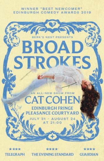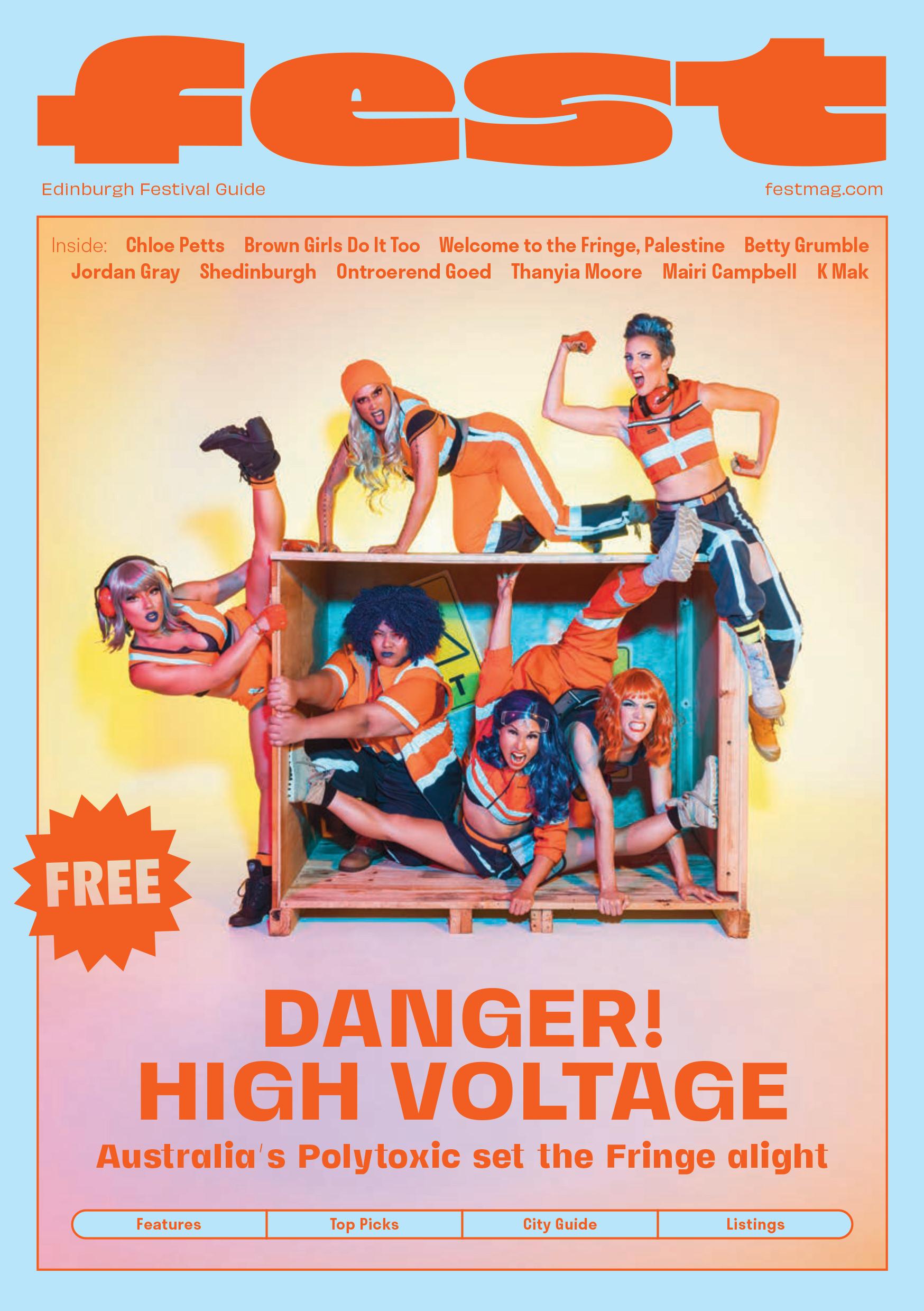With this firmly in mind, Fest’s Preview issue includes many fierce, formidable women – Jordan Gray, Thanyia Moore, Betty Grumble, Cat Cohen – all of whom return to the Fringe with shows that delve into everything from grief and personal growth to climate collapse and death threats, with plenty of humour and heart in tow. We’ve also got Rubina Pabani and Poppy Jay, hosts of the hit podcast Brown Girls Do It Too, former Best Newcomer award-winner