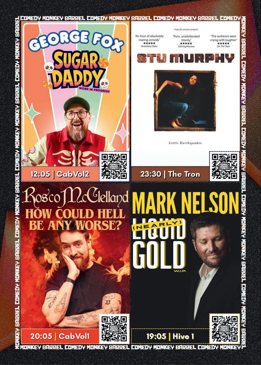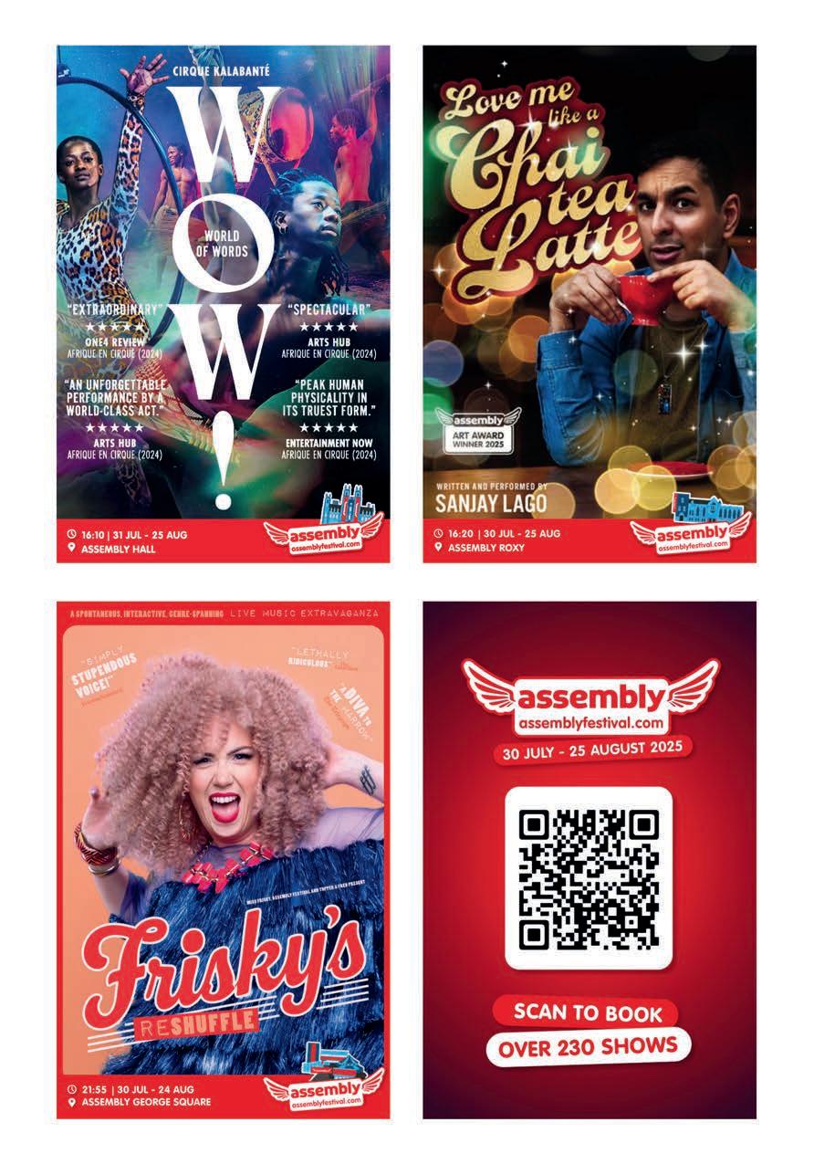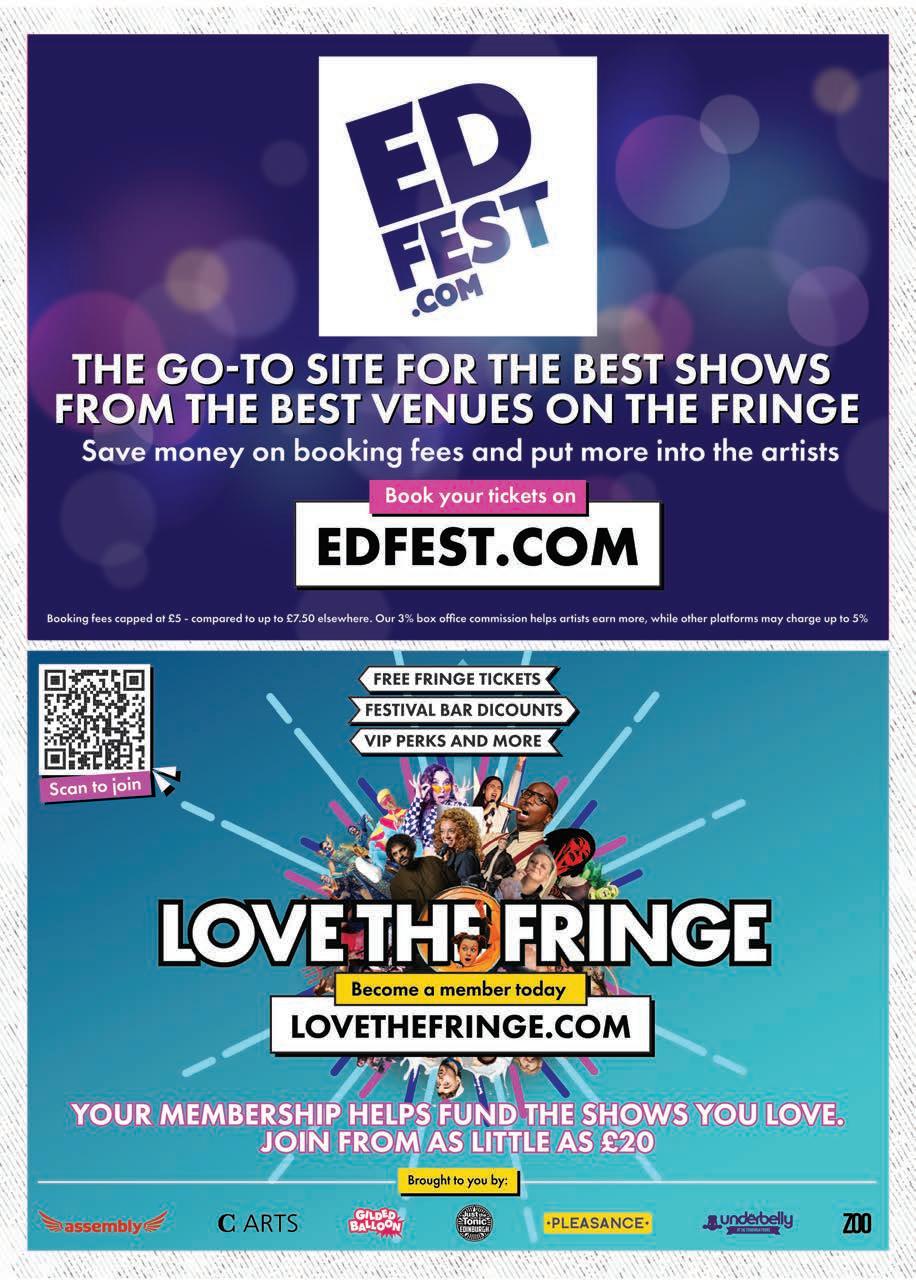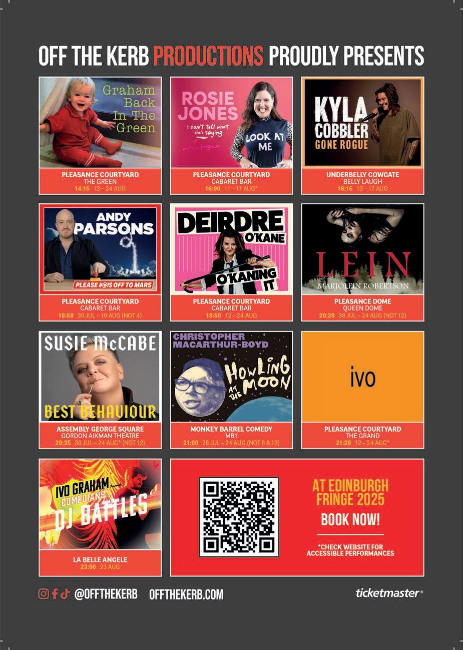 Published by Radge Media C.I.C, M9 Codebase, Argyle House, 3 Lady Lawson Street, Edinburgh, Scotland, EH3 9DR. Every effort has been made to check the accuracy of the information in this magazine, but we cannot accept liability for information which is inaccurate. Show times and prices are subject to changes – always check with the venue. All rights reserved. No part of this publication may be reproduced in whole or in part without the explicit permission of the publisher. The views and opinions expressed within this publication do not necessarily represent the views or opinions of the printer or the publisher. Printed by Micropress Printers Ltd, Southwold