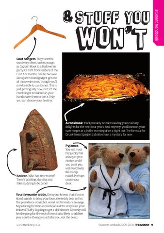 Your favourite teddy. Everyone knows that it’s emotional suicide to bring your favourite teddy bear to Uni. The prevalence of alcohol, vomit and immature teenage boys during freshers week means at the very least your beloved ‘Fluffy’ is going to get a sick shower. Not only will he/she pong for the rest of term it also likely to add ten years on the therapy couch (for you, not the bear). www.theskinny.co.uk