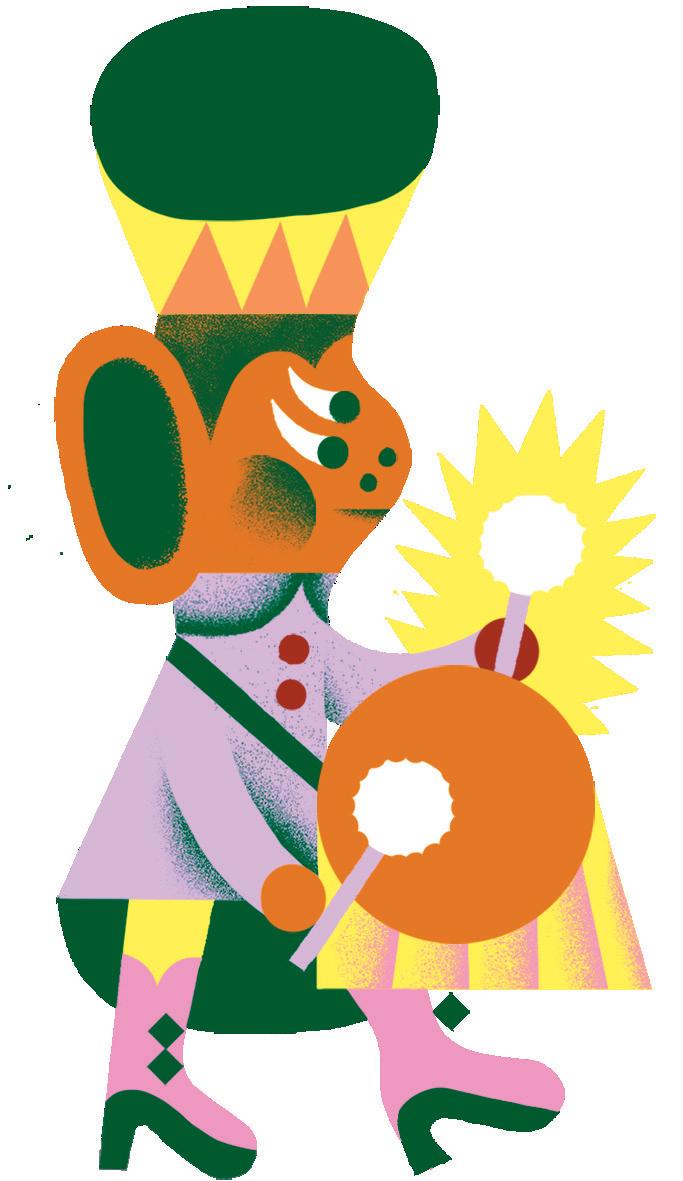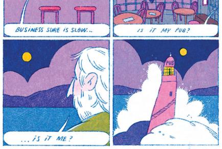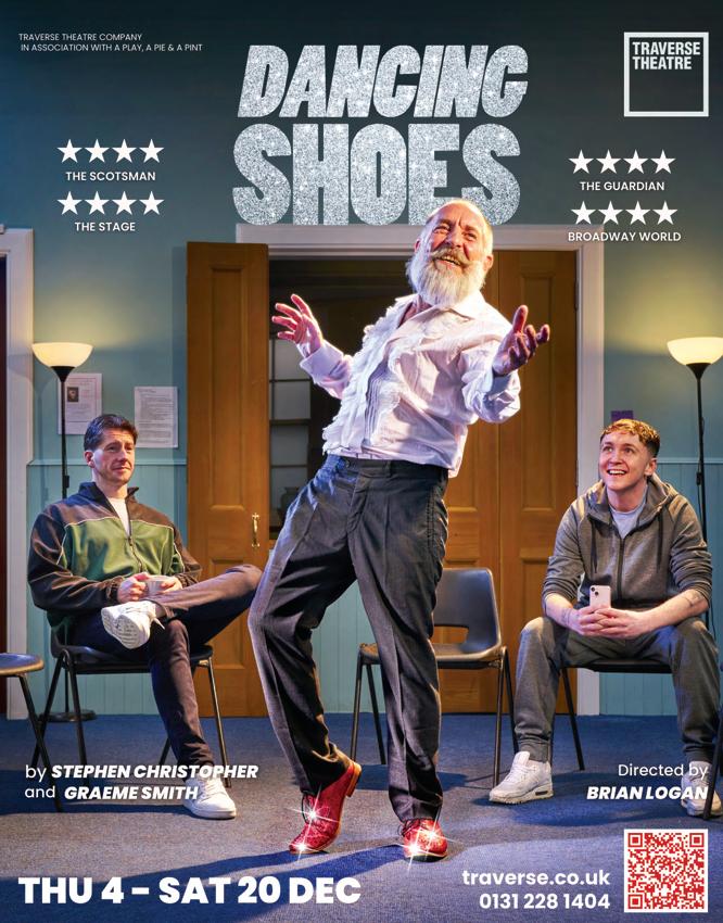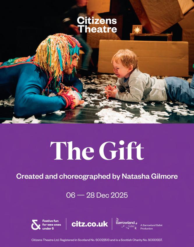 Our centre spread is a sheet of wrapping paper to pull out and use, hopefully once again located on the correct pages to actually be useful. This year it’s a charming design by Agnes Xantippa Boman. Christmas continues with some words with the director and writer of this year’s Tron panto, Sally Reid and Johnny McKnight respectively, reflecting on the theatre’s history of staging anarchic, self-aware pantomime.