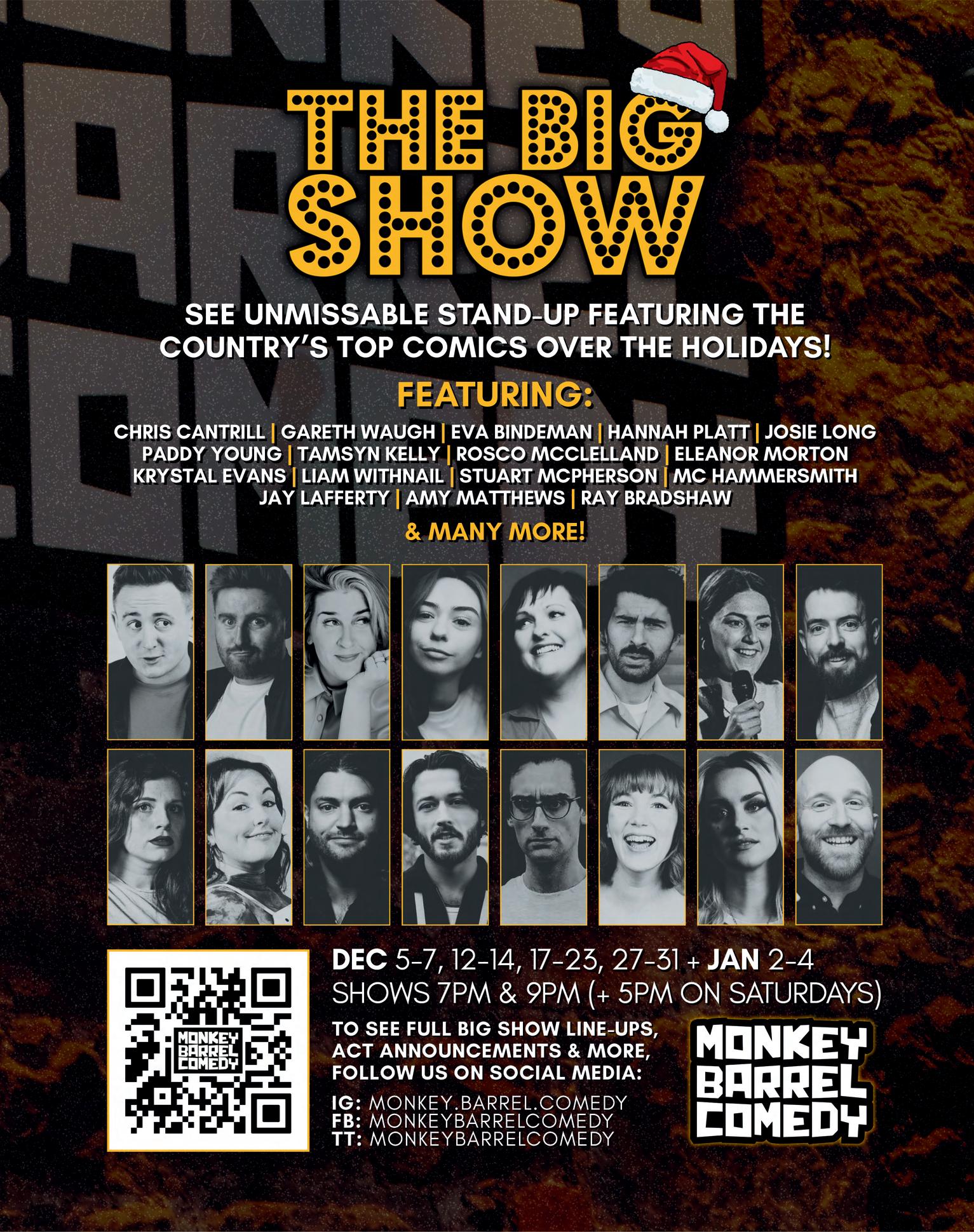 SATURDAYS MONKEY BARREL COMEDY’S BIG SATURDAY SHOW, 17:00/19:00/21:00 Monkey Barrel’s flagship night of premier stand-up comedy.