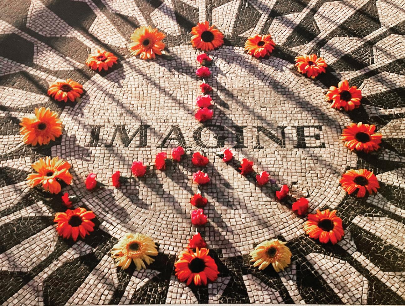 Page 5: Imagine image from Strawberry Fields in NYC’s Central Park inspires family counseling clients in Bob Kristy’s office.