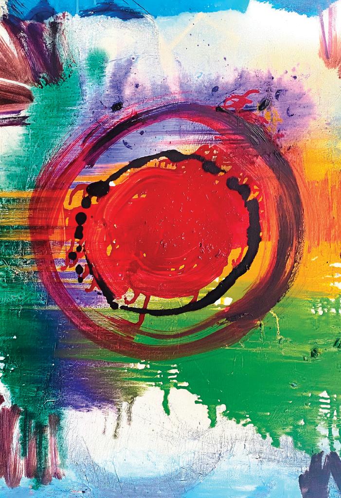Page 26: Artwork symbolizing the circle of giving created and donated by Rosalind Rosen for The Sky Center’s 2025 Valentine Annual Appeal. The painting now adorns The Sky Center’s office wall.
