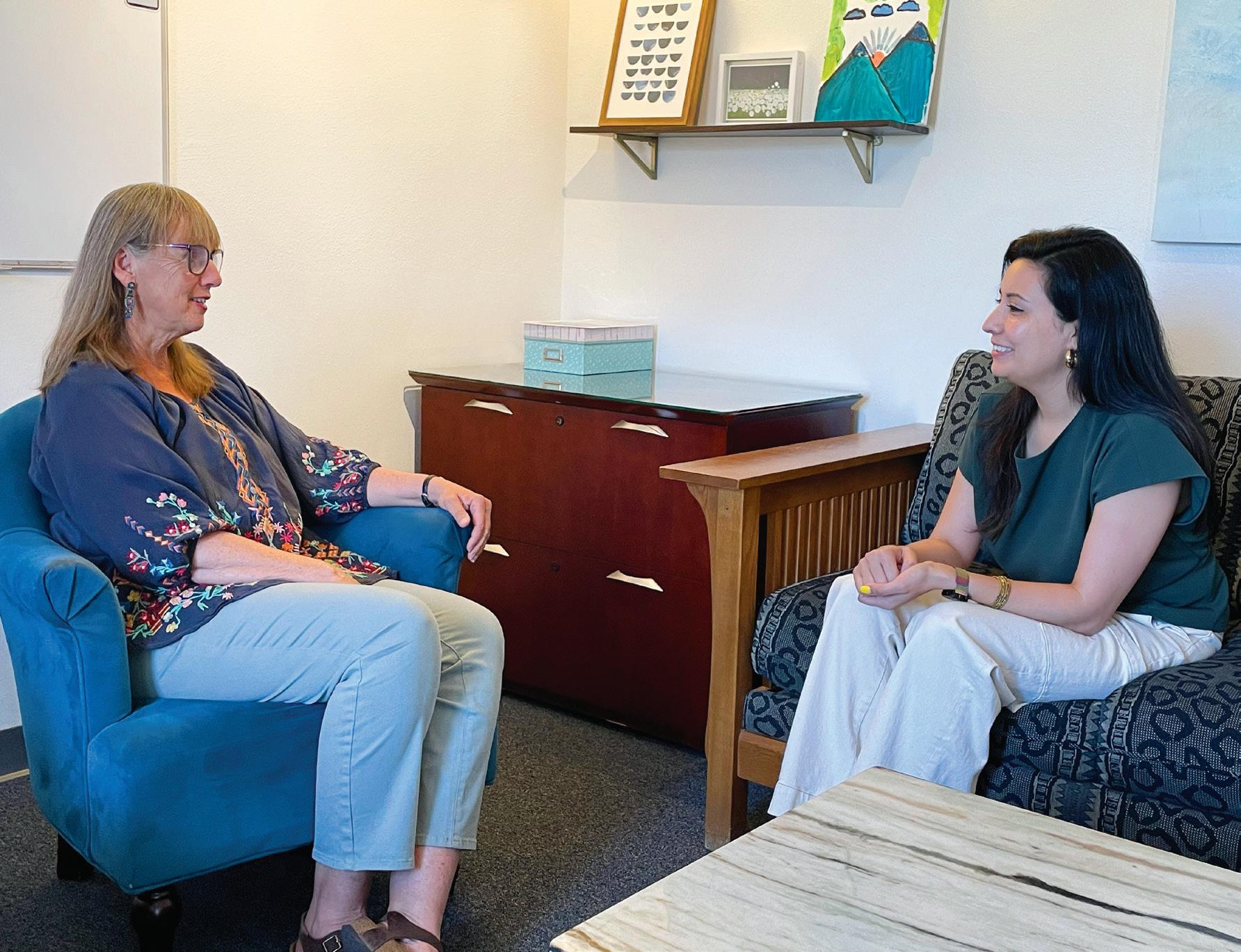 Page 22: Our dynamic duo in the front office Paloma Sandoval, Office Manager and Interpreter (seated) and Valerie C., Office Assistant and Interpreter. Paloma is also a trained CONNECT Navigator. Photo: Annai Burrola.