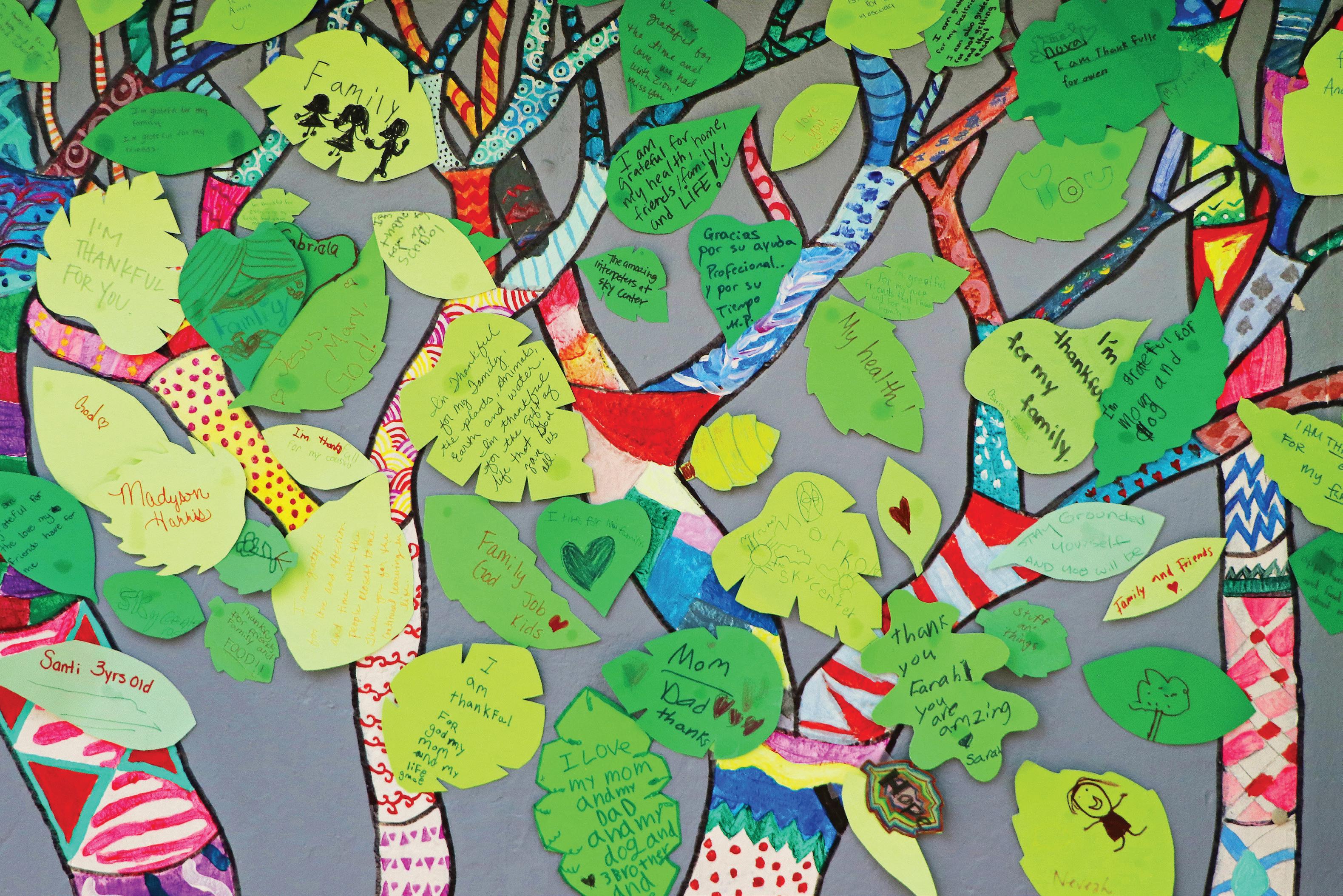 Cover Image: The Gratitude Forest in the Lobby of The Sky Center. Youth design leaves expressing what they are thankful for in their own lives.