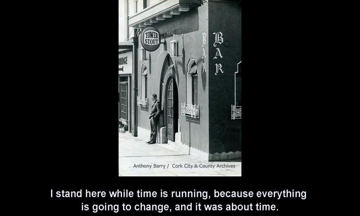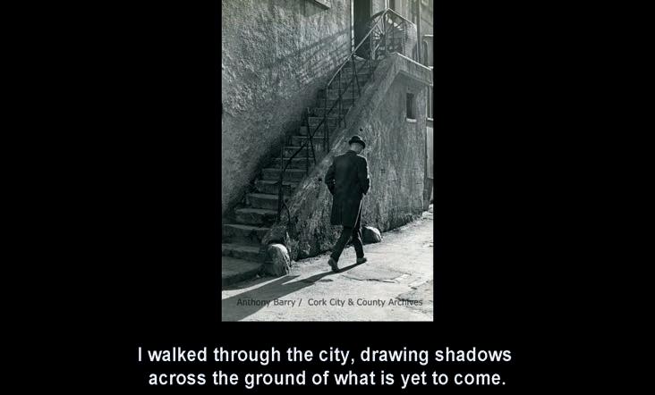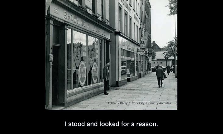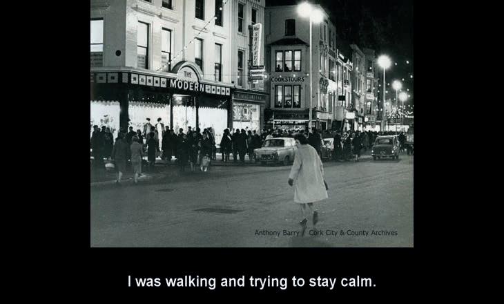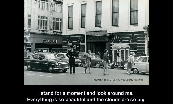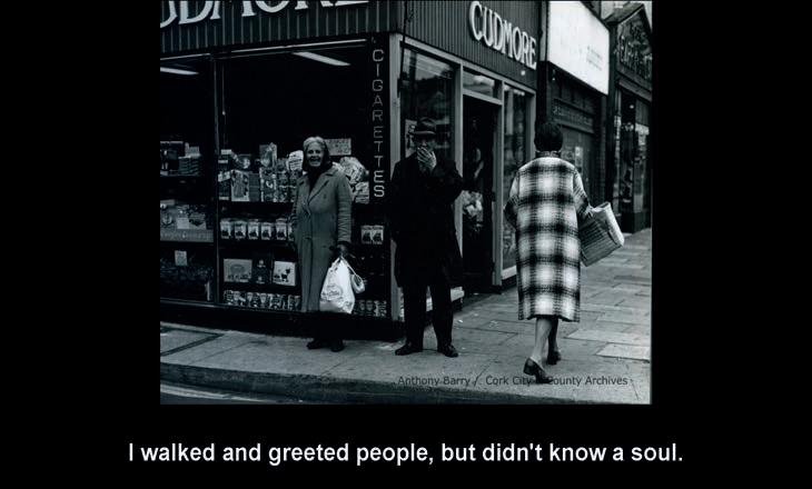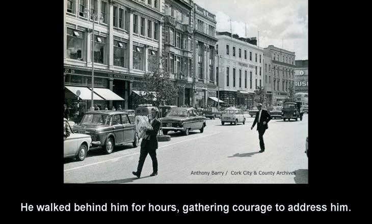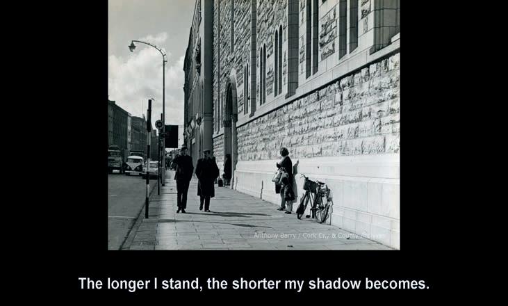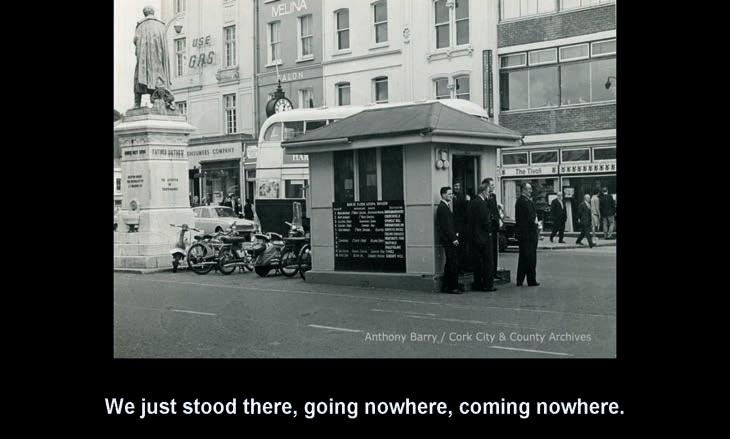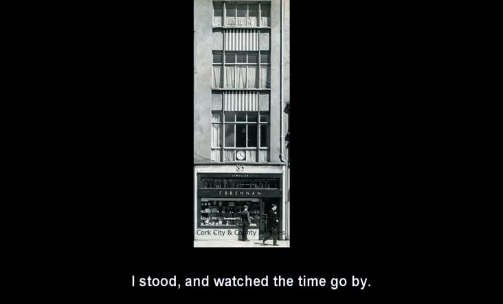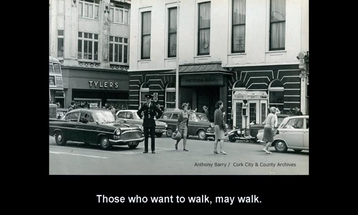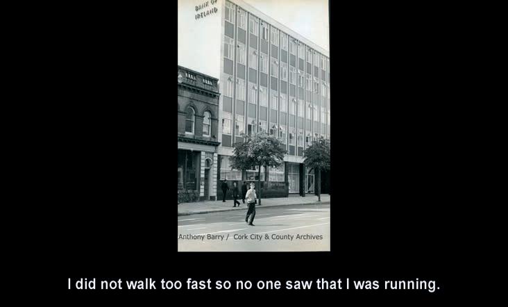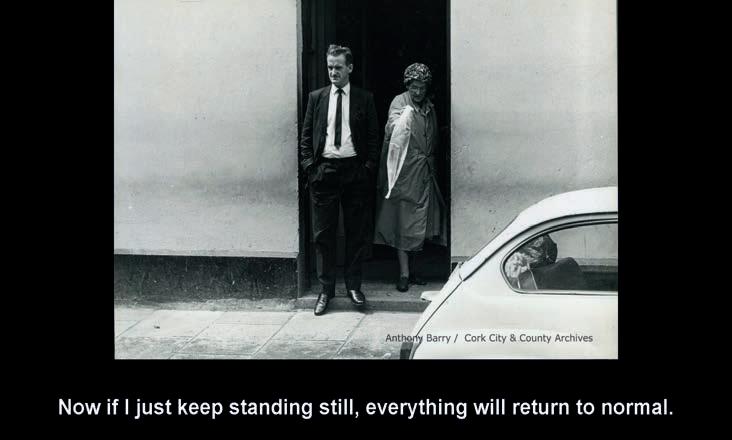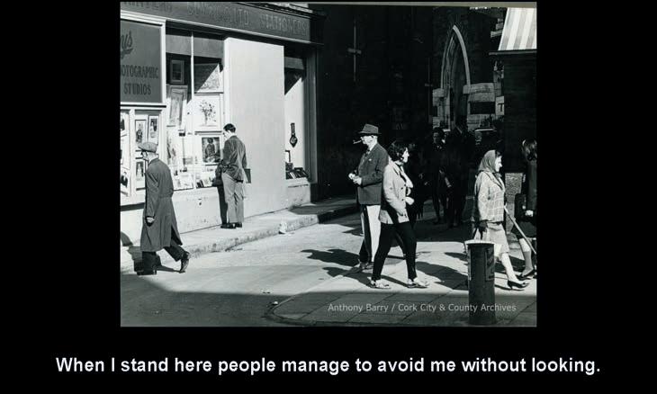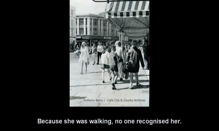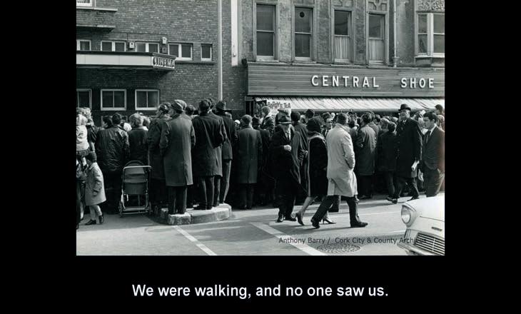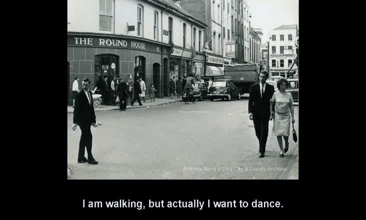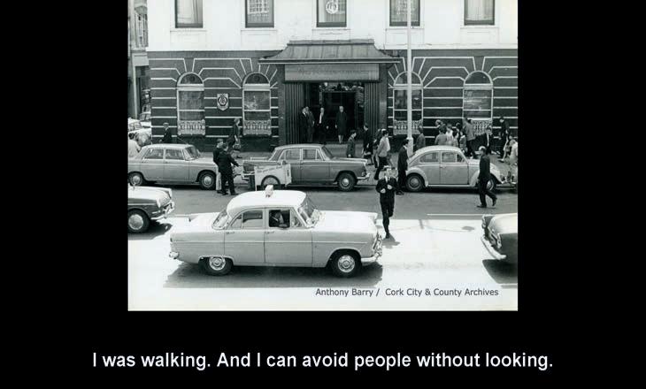 With the diptych ‘Walking / Standing’ he offers an outsider’s view of the collective memory of the city of Cork. The past that everyone thinks they already know is given a new, unpredictable charge through his alien gaze in which he turns anonymous passers-by into the protagonists of their own story. Through texts he gives the anonymous characters in the images a personality and a face. By choosing a different angle in looking at archive materials he wants to offer the viewer a sense of historical sensation, a feeling of brief and direct contact with that distant past.
