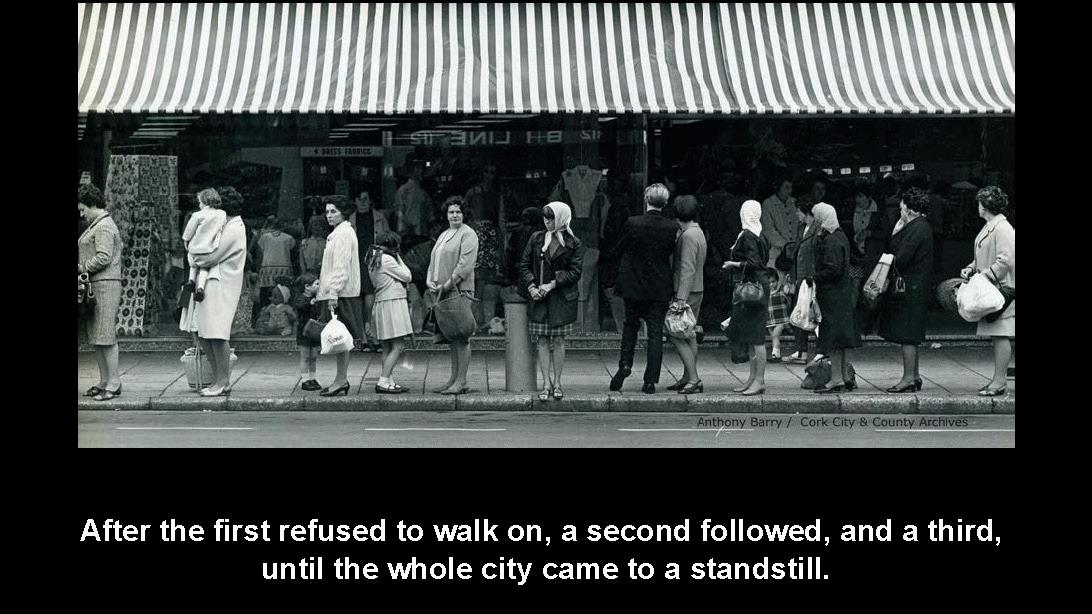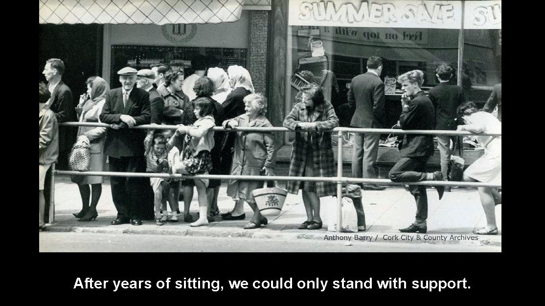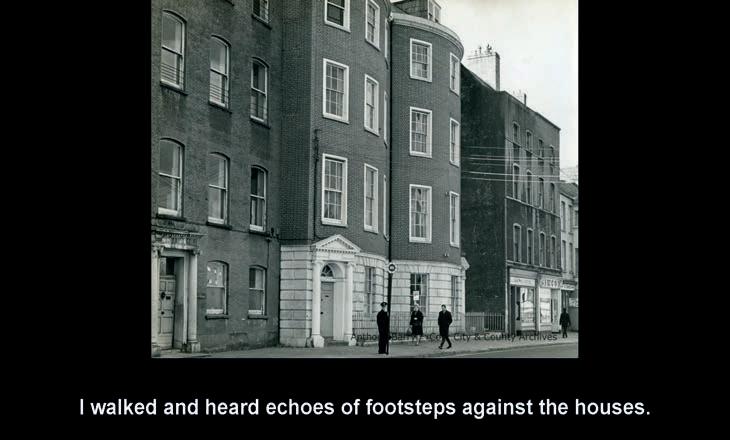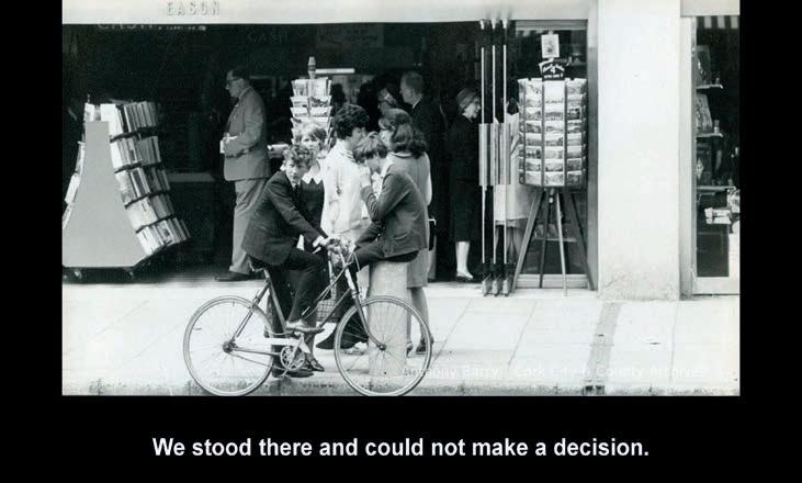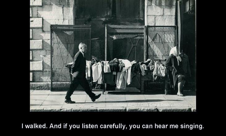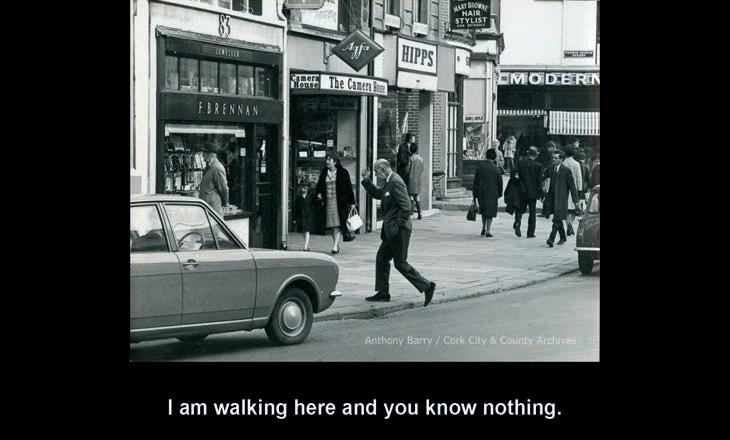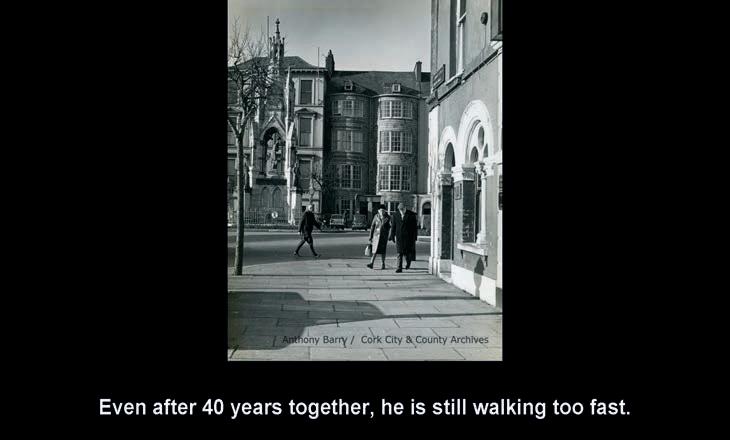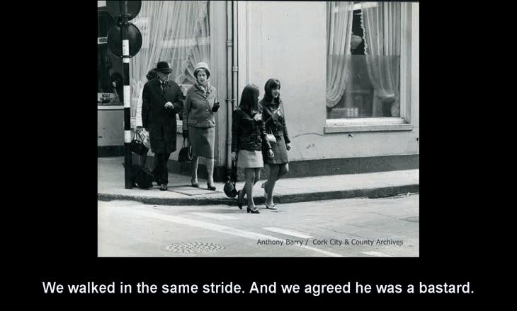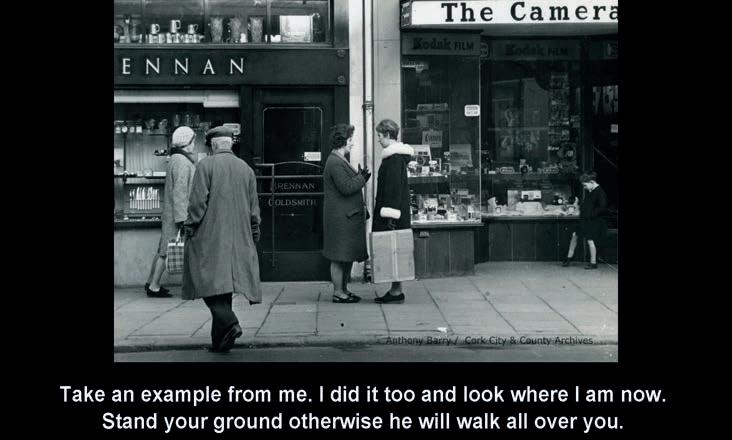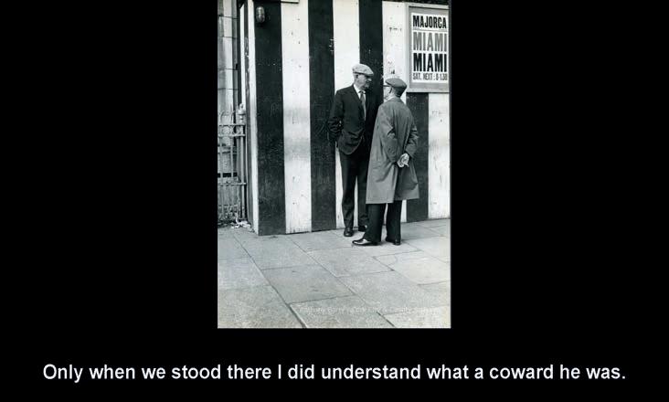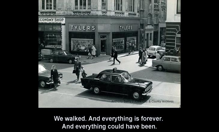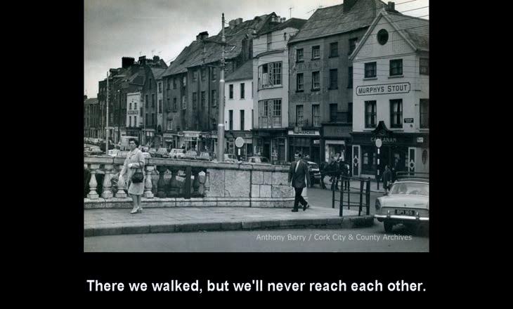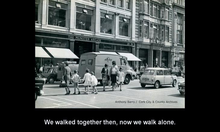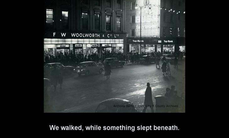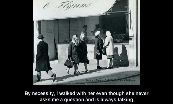 With the diptych ‘Walking / Standing’ he offers an outsider’s view of the collective memory of the city of Cork. The past that everyone thinks they already know is given a new, unpredictable charge through his alien gaze in which he turns anonymous passers-by into the protagonists of their own story. Through texts he gives the anonymous characters in the images a personality and a face. By choosing a different angle in looking at archive materials he wants to offer the viewer a sense of historical sensation, a feeling of brief and direct contact with that distant past.