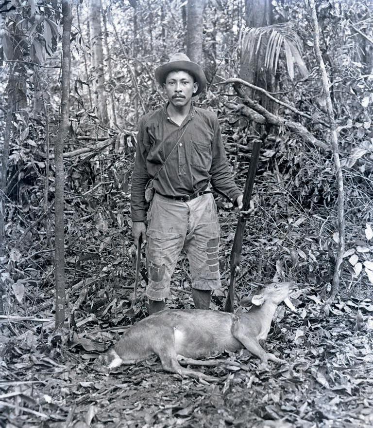 William Farr is a lover of tales of exploration. At sea, in his sparse spare time, he reads the travelogues in the ship’s library. The tough explorer had hero status at the time and was a popular and attractive role model of masculinity. Together with other male crew members, William, inspired by his heroes, set off into the wilderness at every spare hour. They put on tropical helmets and let locals sail them through the jungle for little money. They camp in tents and fish in the river. A native man shoots a doe for dinner.