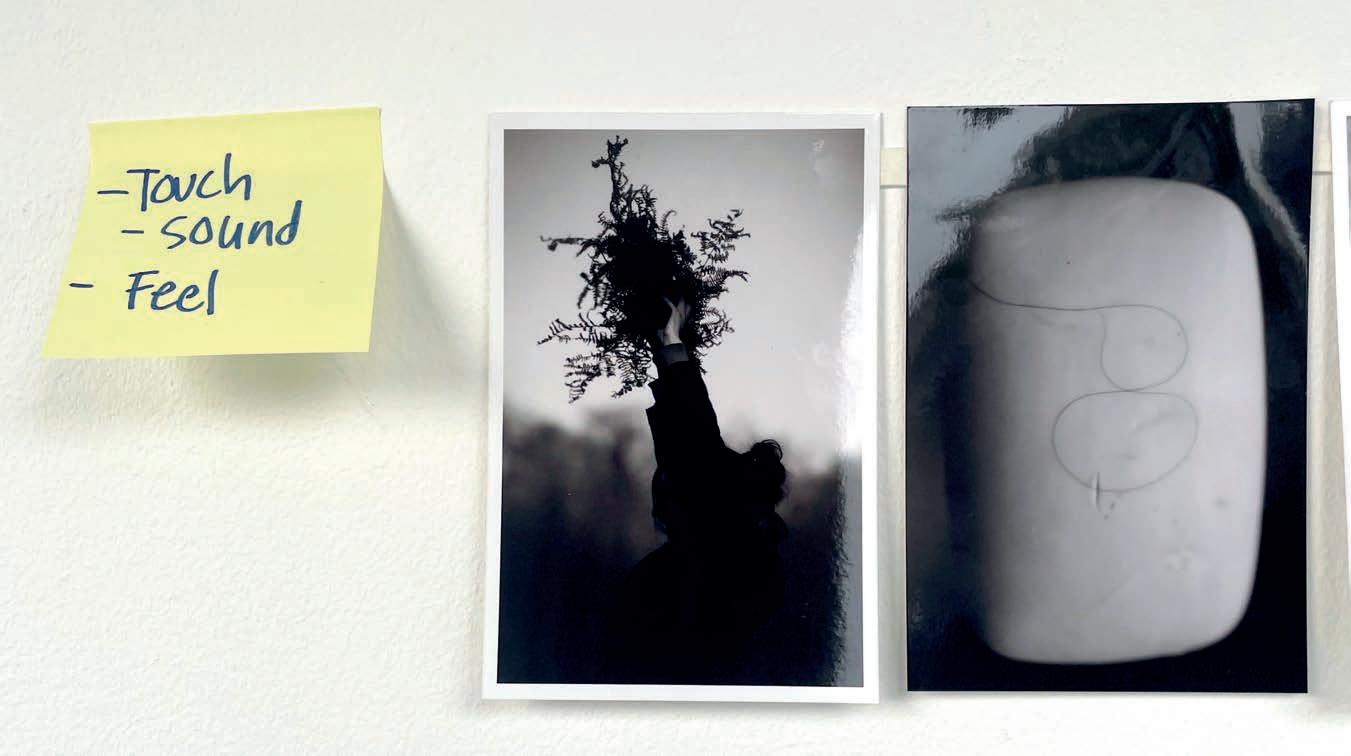 A few days earlier, I had placed a row of images in my office, alternating between those with dark, strong contrasts and those with light, subtle contrasts. This was a playful process, engaging with the aesthetic qualities of the images. Taking a break from the computer screen, I allowed myself to immerse in the images without specific intentions—a momentary respite from thinking and planning.