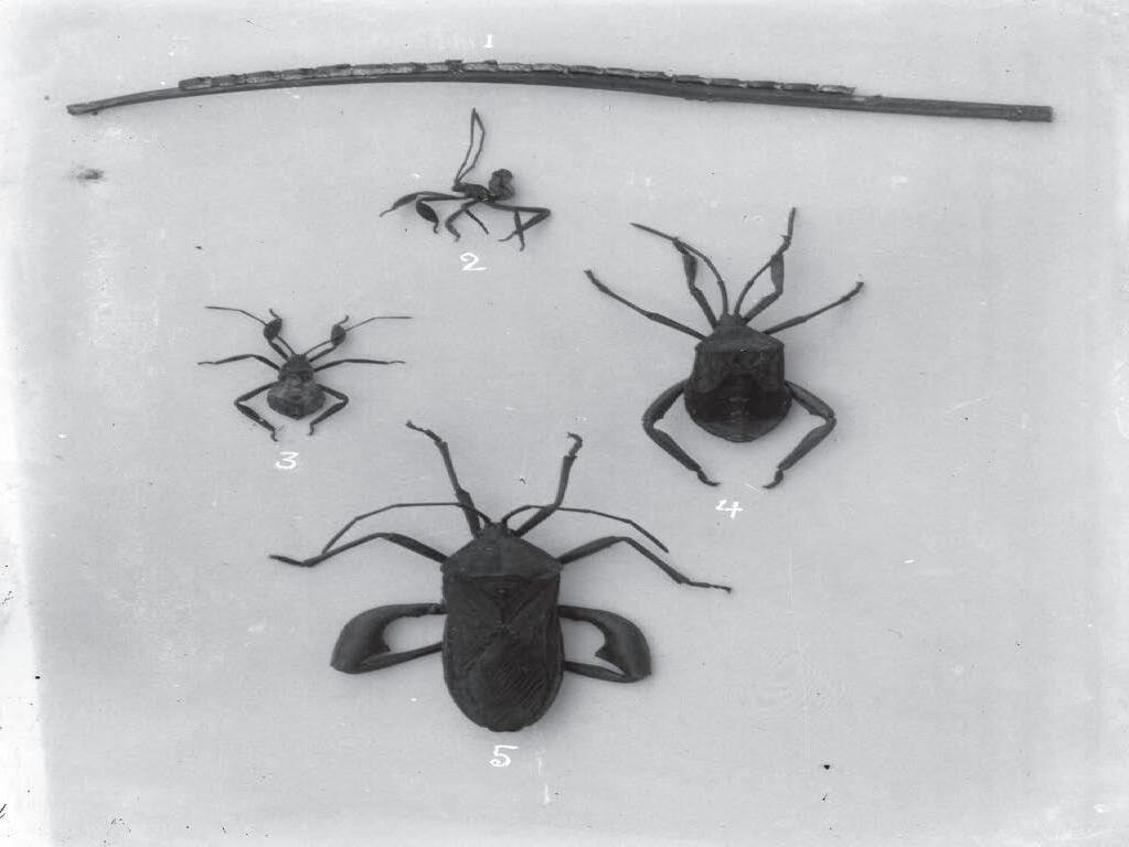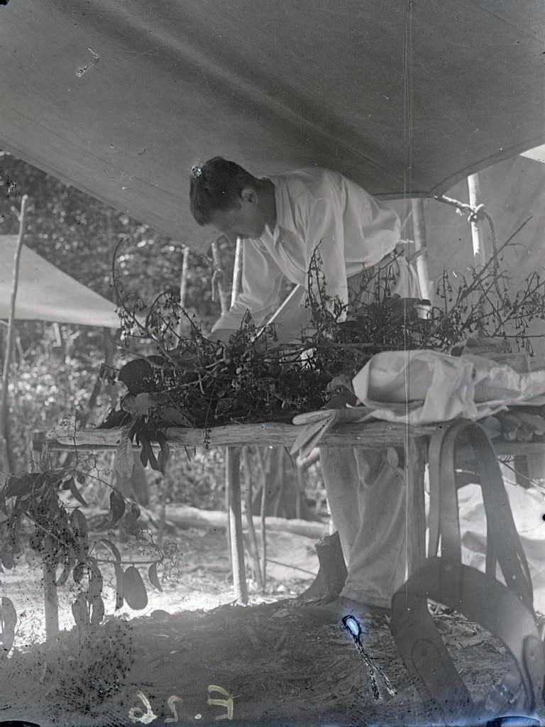 When his ship is in a strange port, William Farr and some other nature lovers head into the rainforest in his spare time. There, he takes photographs of the exotic flora and fauna. Photos of animals and plants unknown in Ireland: a frog, a flower, spiders, caterpillars, flies and a giant beetle. Under a canopy of tent canvas, he determines the plants he has collected.