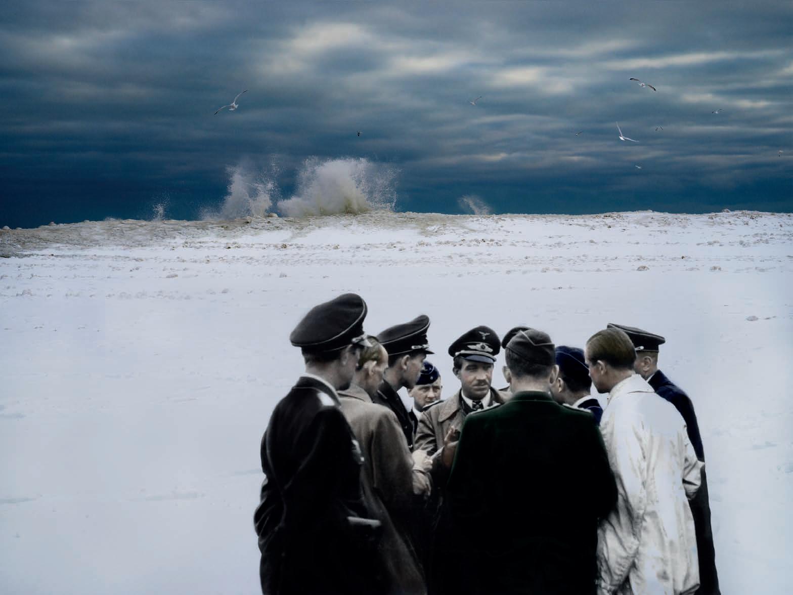 I photographed these locations with reverence depicting them as the monumental places they once were. In the archives I came across images so striking I knew I needed to use them in some way. It has, for decades now, been part of contemporary documentary practice to integrate archival materials into a project that addresses the often fraught and blurred lines of fact and fiction. I have in turn taken a very complicated and convoluted part of history and expanded our understanding of it by compositing historical images and my own photographs. With this body of work I was at once creating a visual archive of these historical locales as they exist now, altered by time, and I was also recontextualising archival images,changing how we understand them in the context of time, geography and the records about von Braun’s life. I am drawn to the final product of these composites for their ambiguity and potential to take on new and unexpected meanings. For example, by removing a figure from its original context and placing it into a different landscape I merge the two places— Germany and the United States—and the two different timelines to create a new representation through a contemporary lens.