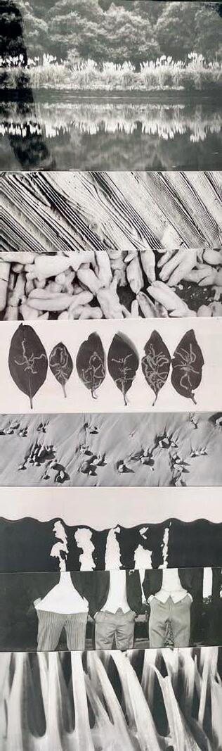 Abutterfly sits still on a leaf. A salamander climbs a branch. A man climbs a tree via a rope ladder. The images are in diaposition on sheets of glass. Black is white and white is black and together they tell a story. But which story? Slowly, I am discovering that you can always give new meaning to images as knowledge of the context changes.